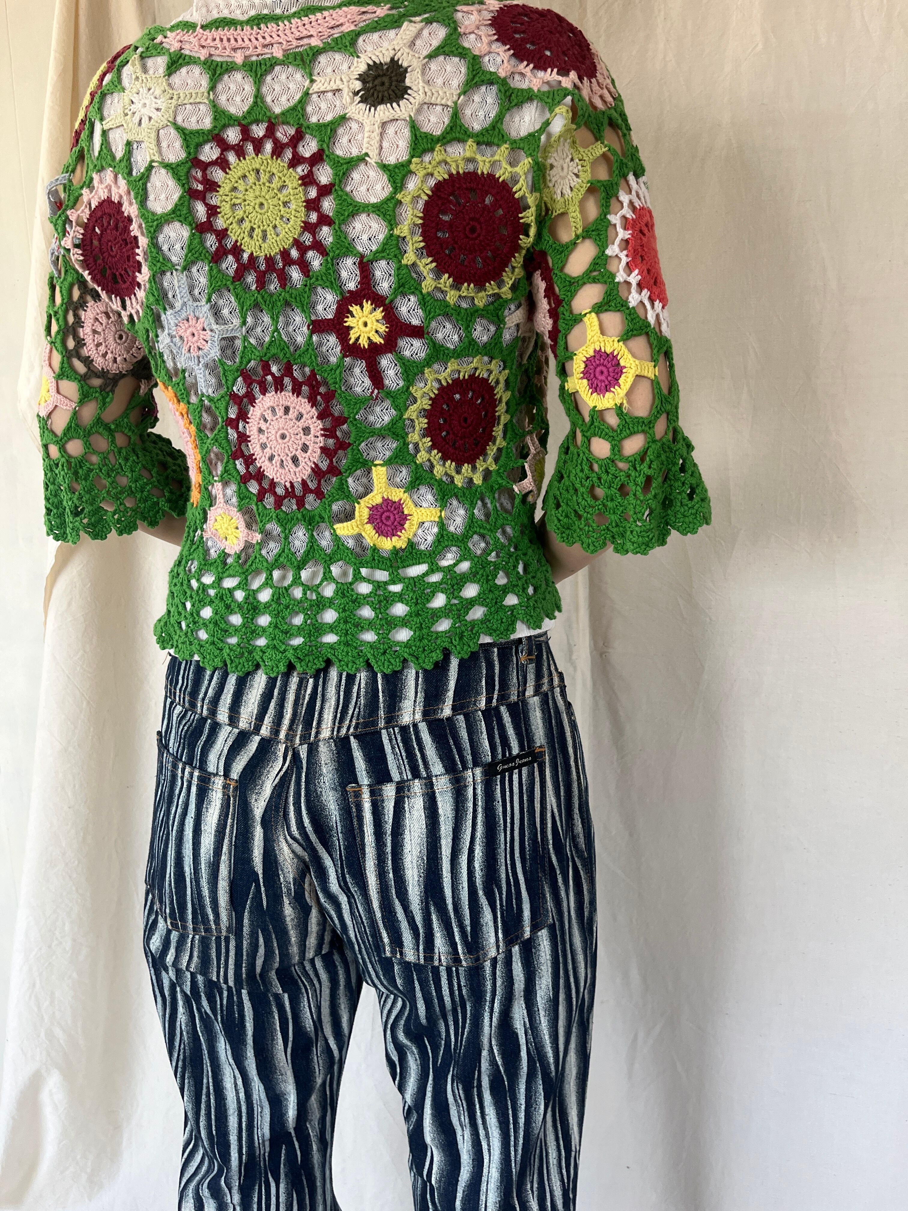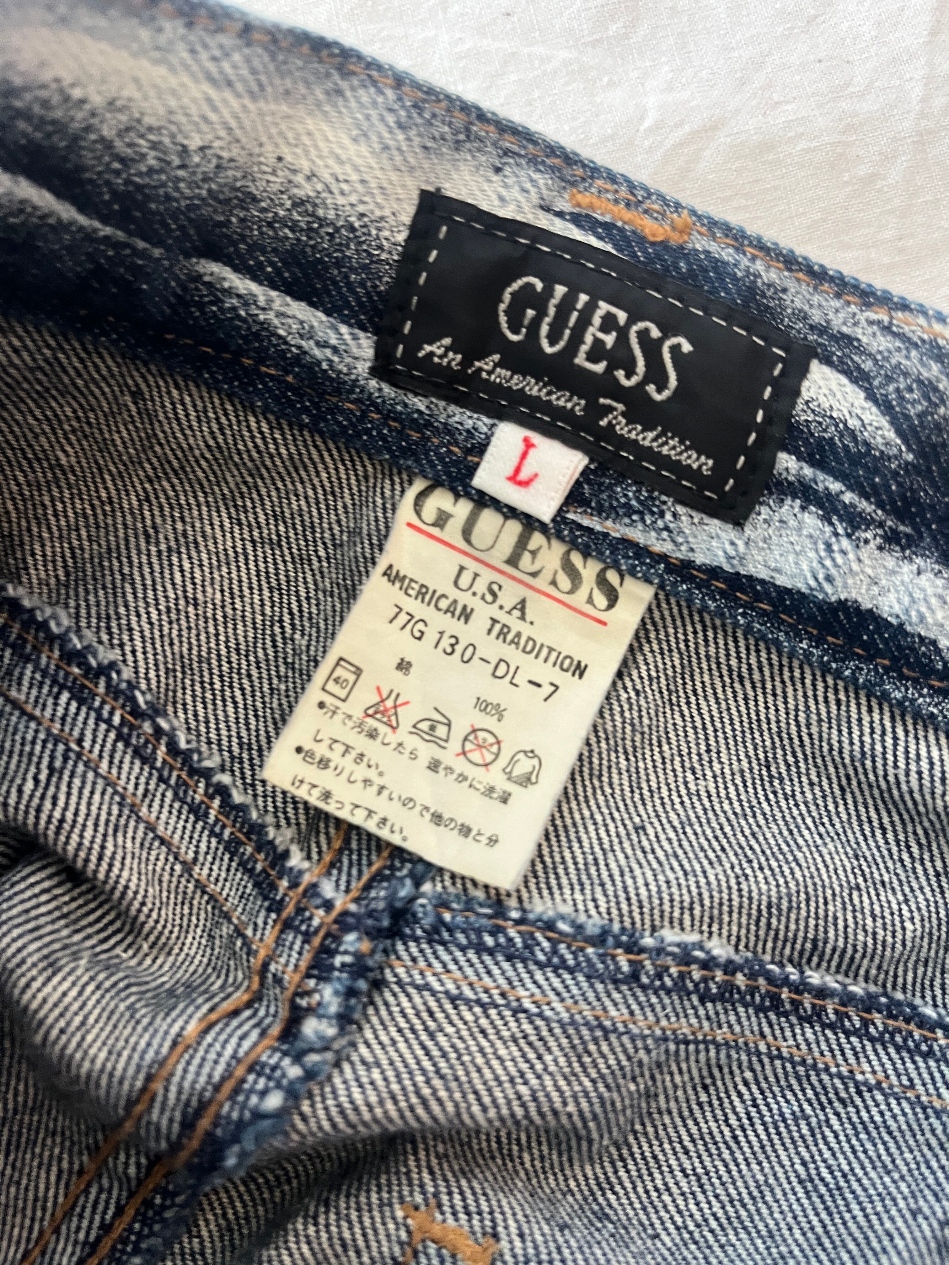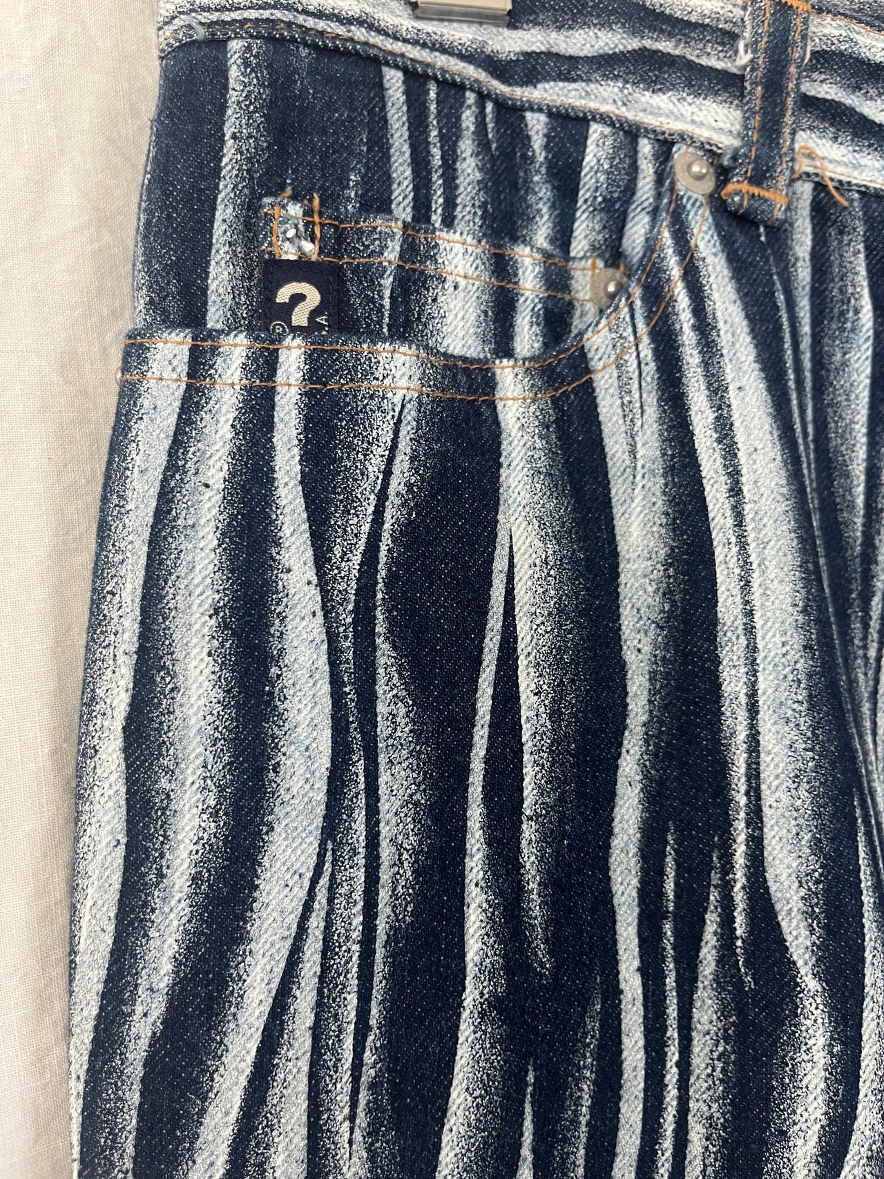 インディゴカラーのデニムにホワイトの筋がびっしりペイントされたエッジの効いたデザイン✩
