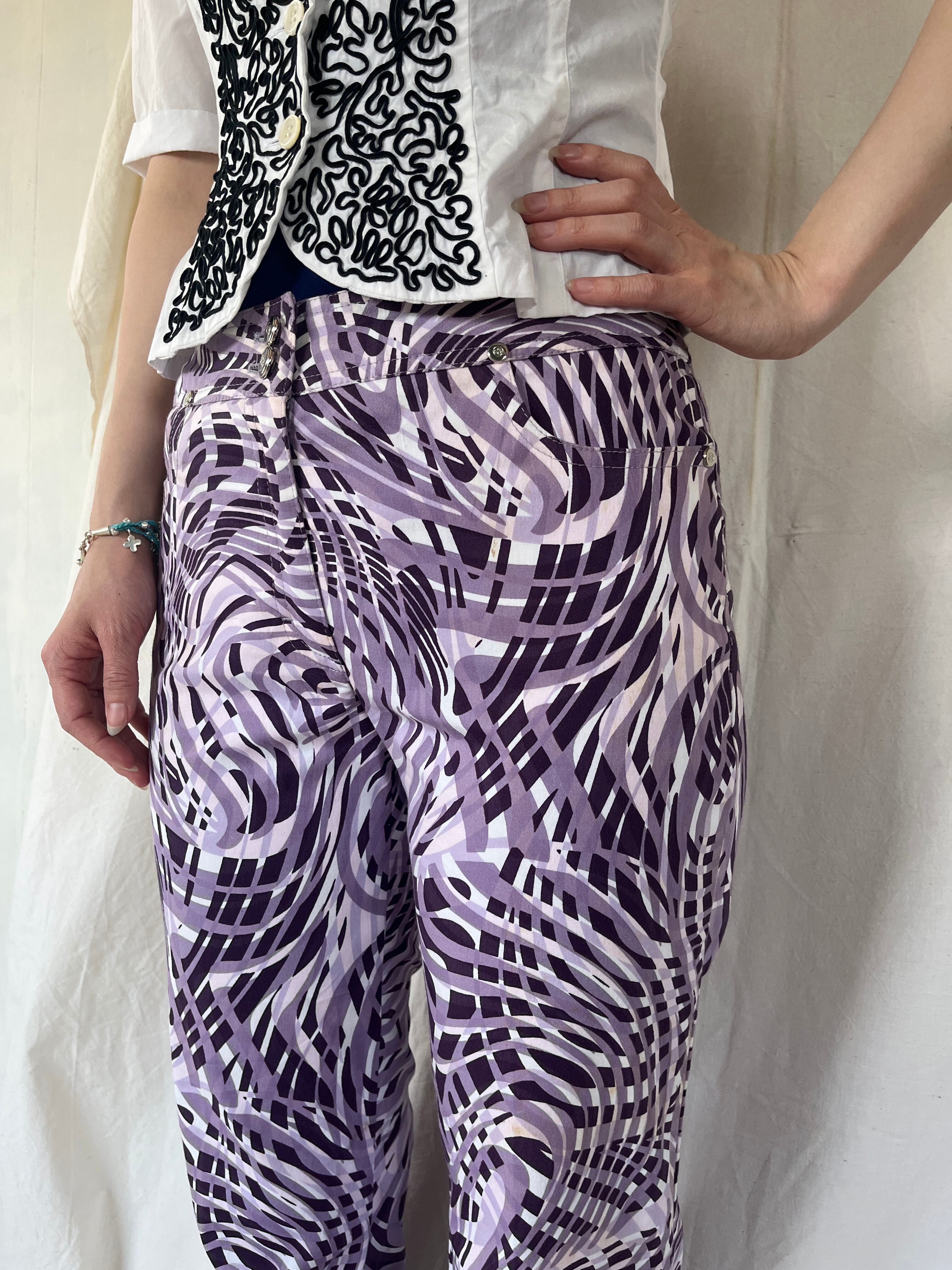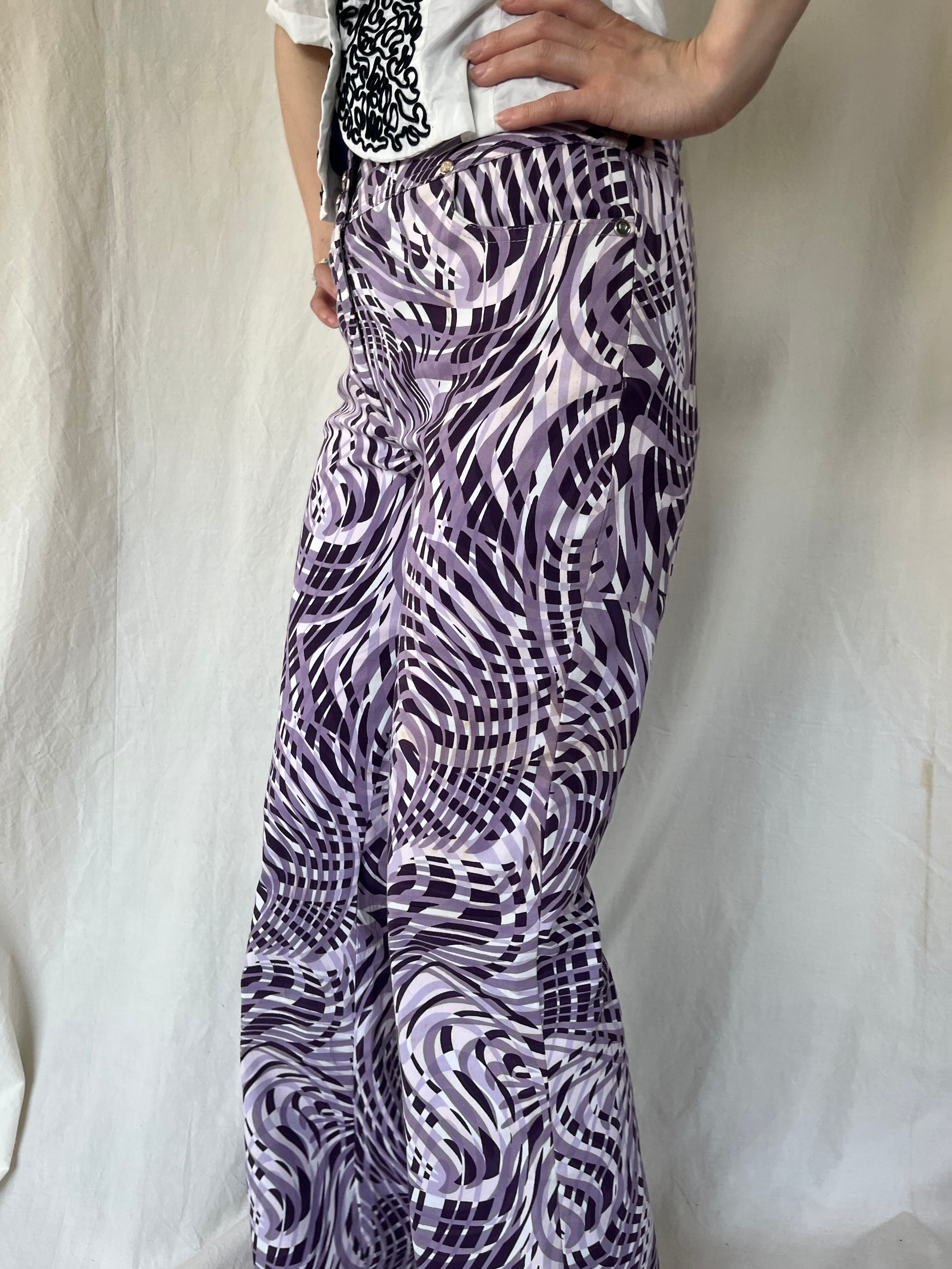 ドイツに拠点を置くハイファッションブランドエスカーダの総柄フレアパンツ。