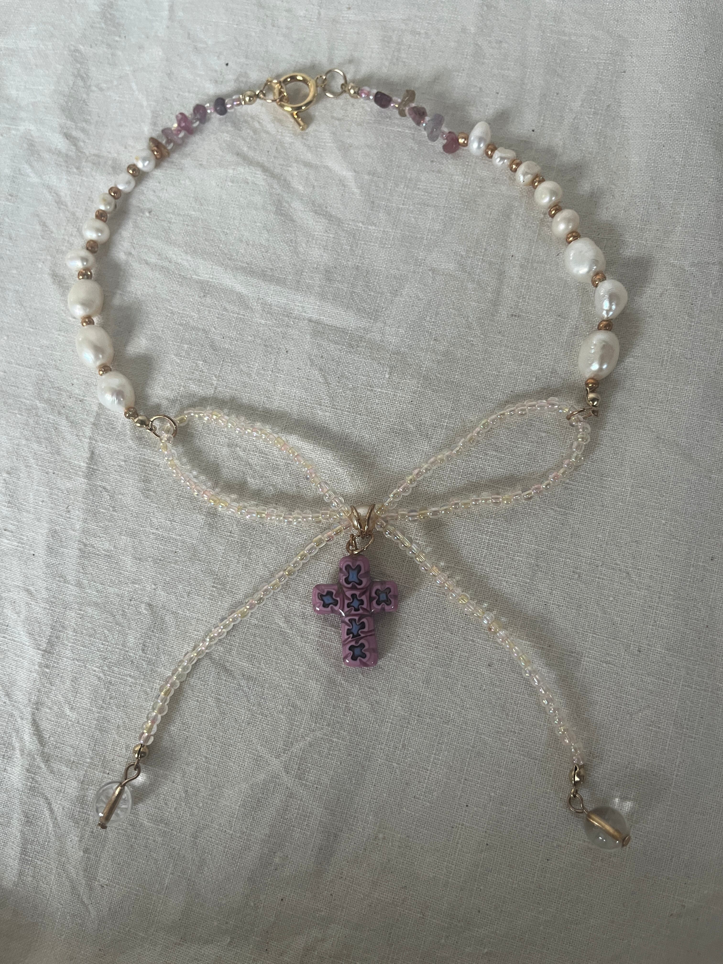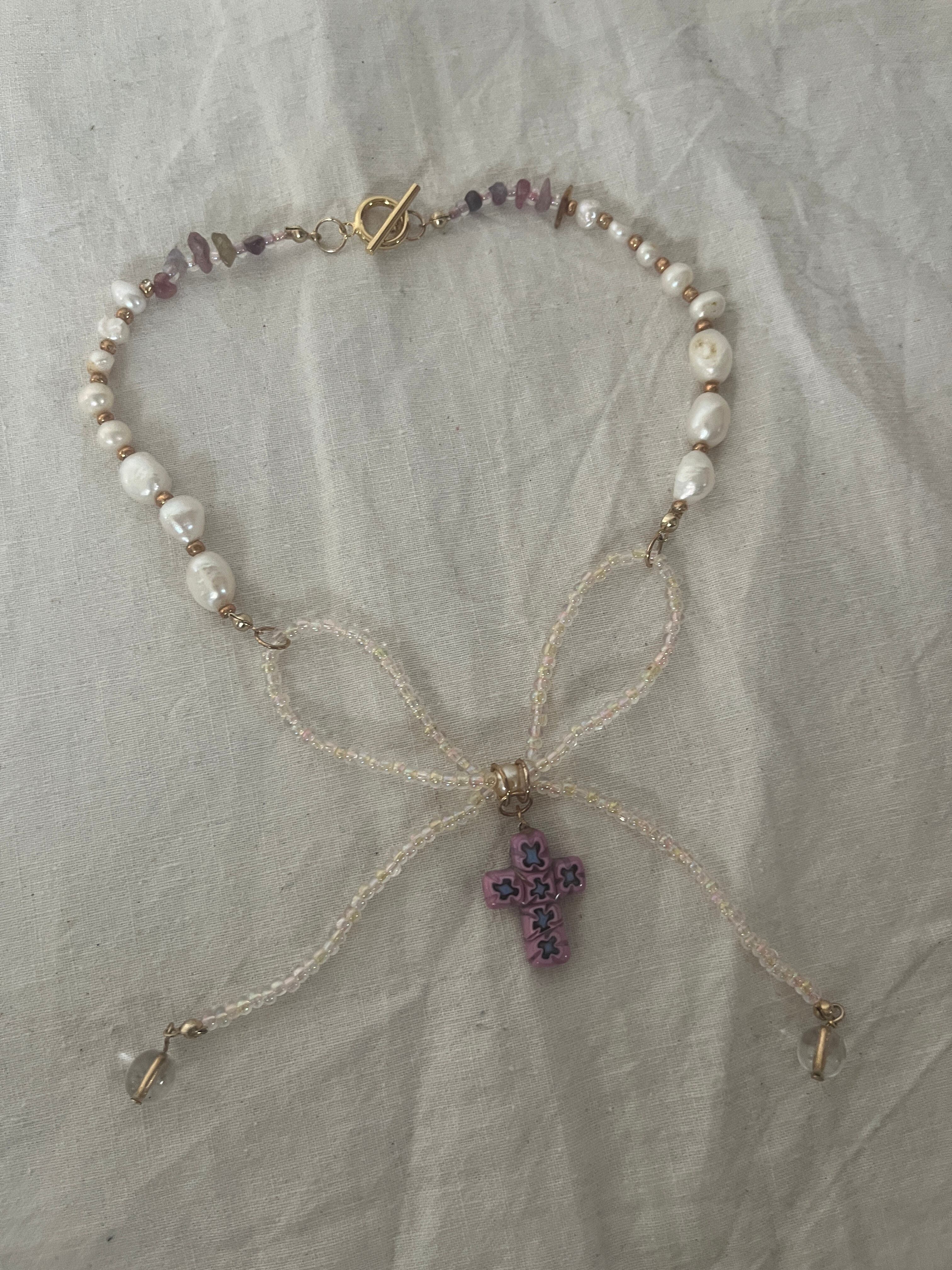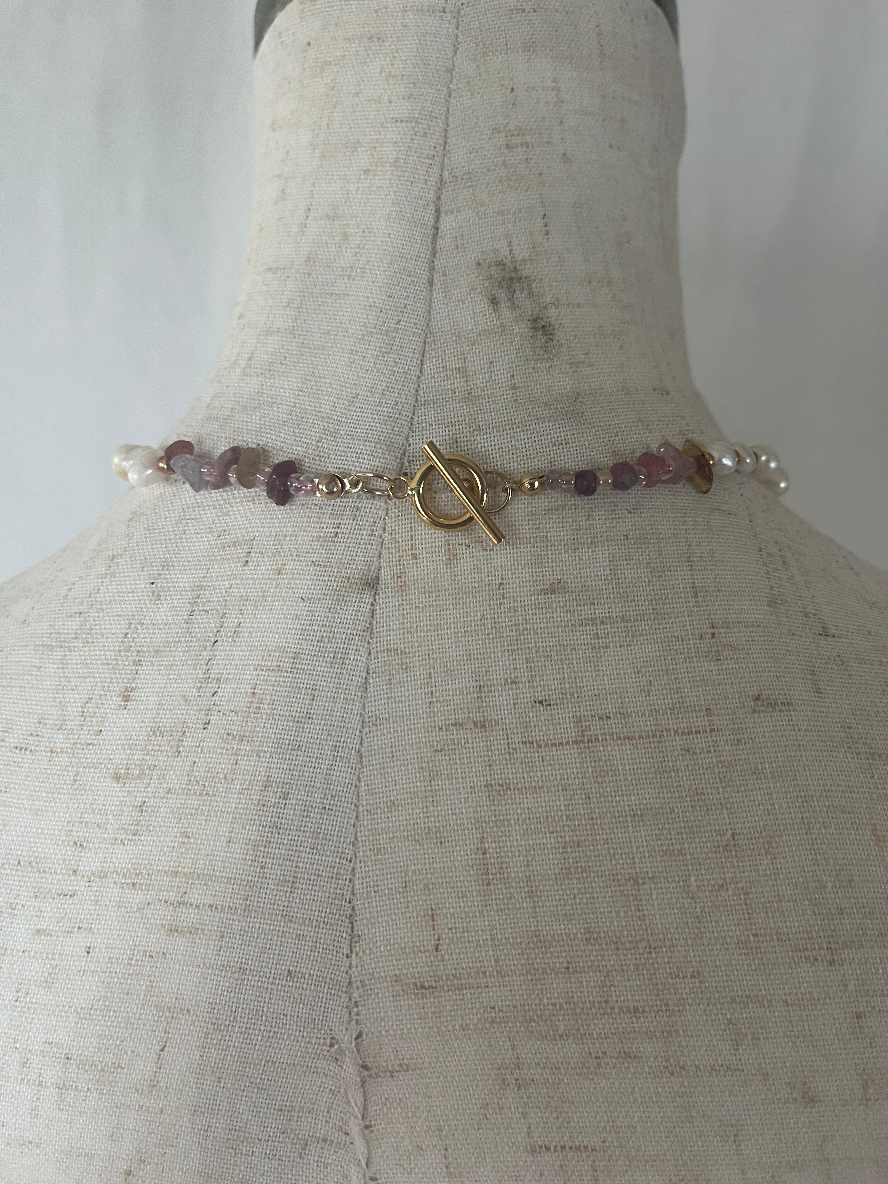 淡水パール、さざれ石(トルマリン)、チェコビーズ、アクリルビーズ等