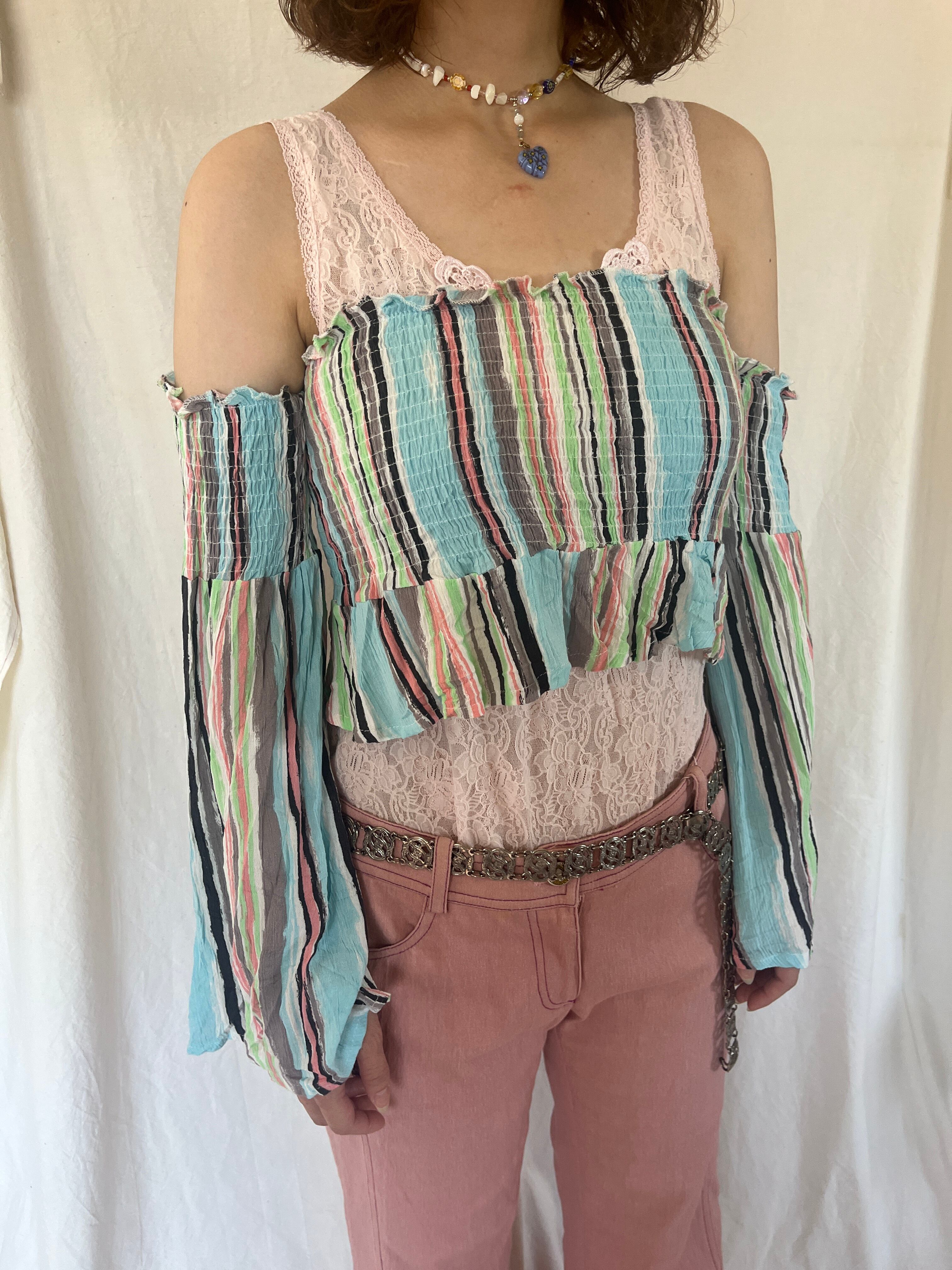 ストレッチ素材ですが、ぴたっとしすぎない程よいサイズ感なので、ベストの様に上に重ねて着ていただくのも良いと思います◎