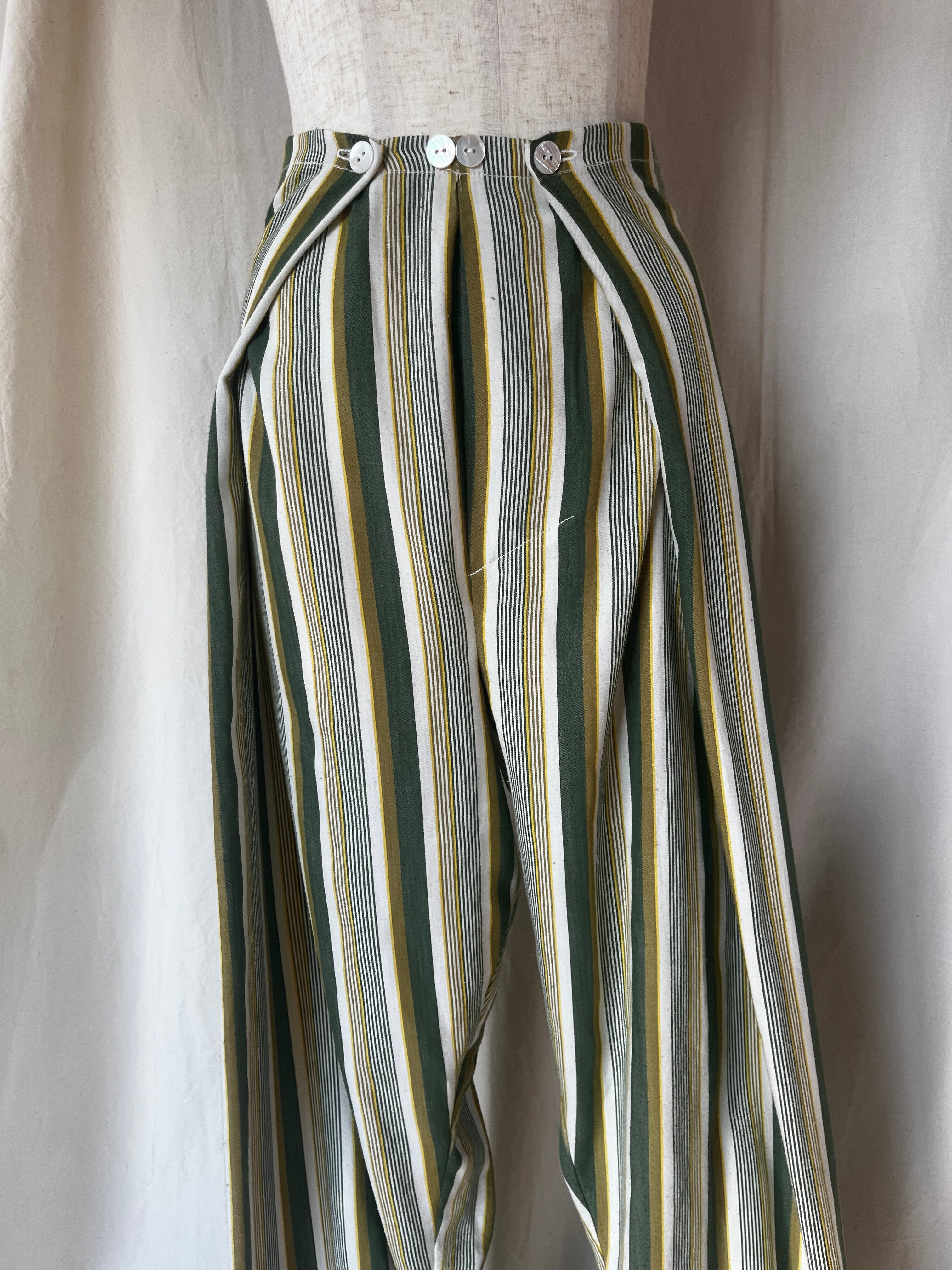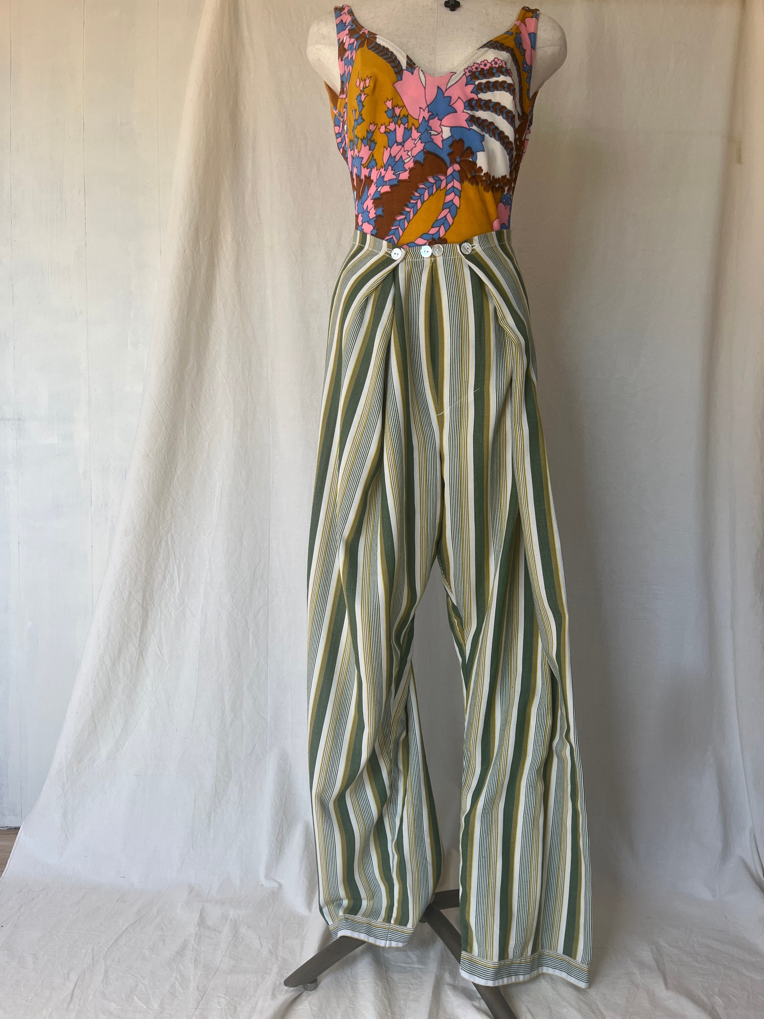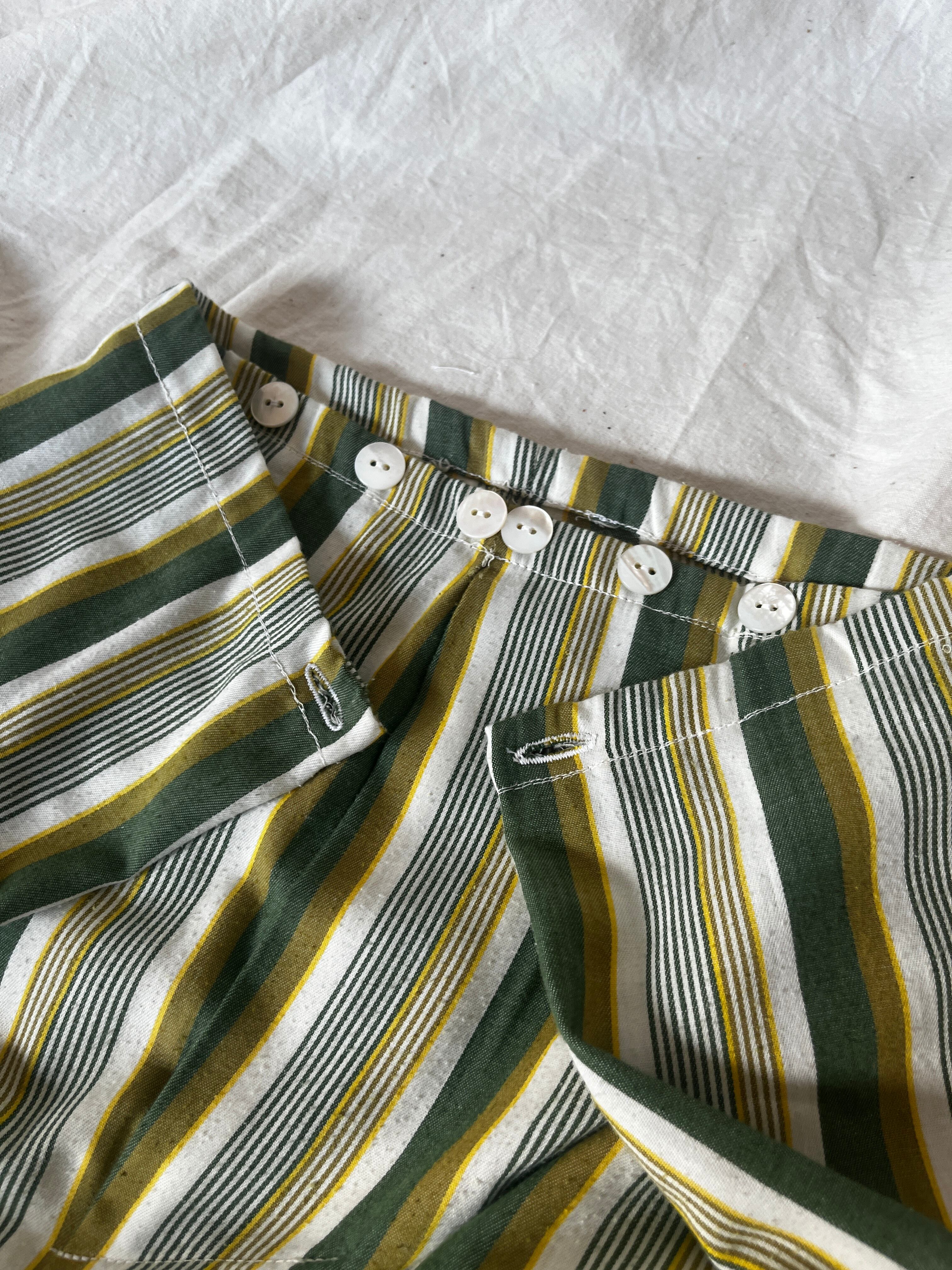 ウエストはゴムを抜いてボタンで留められる様にリメイクしています。