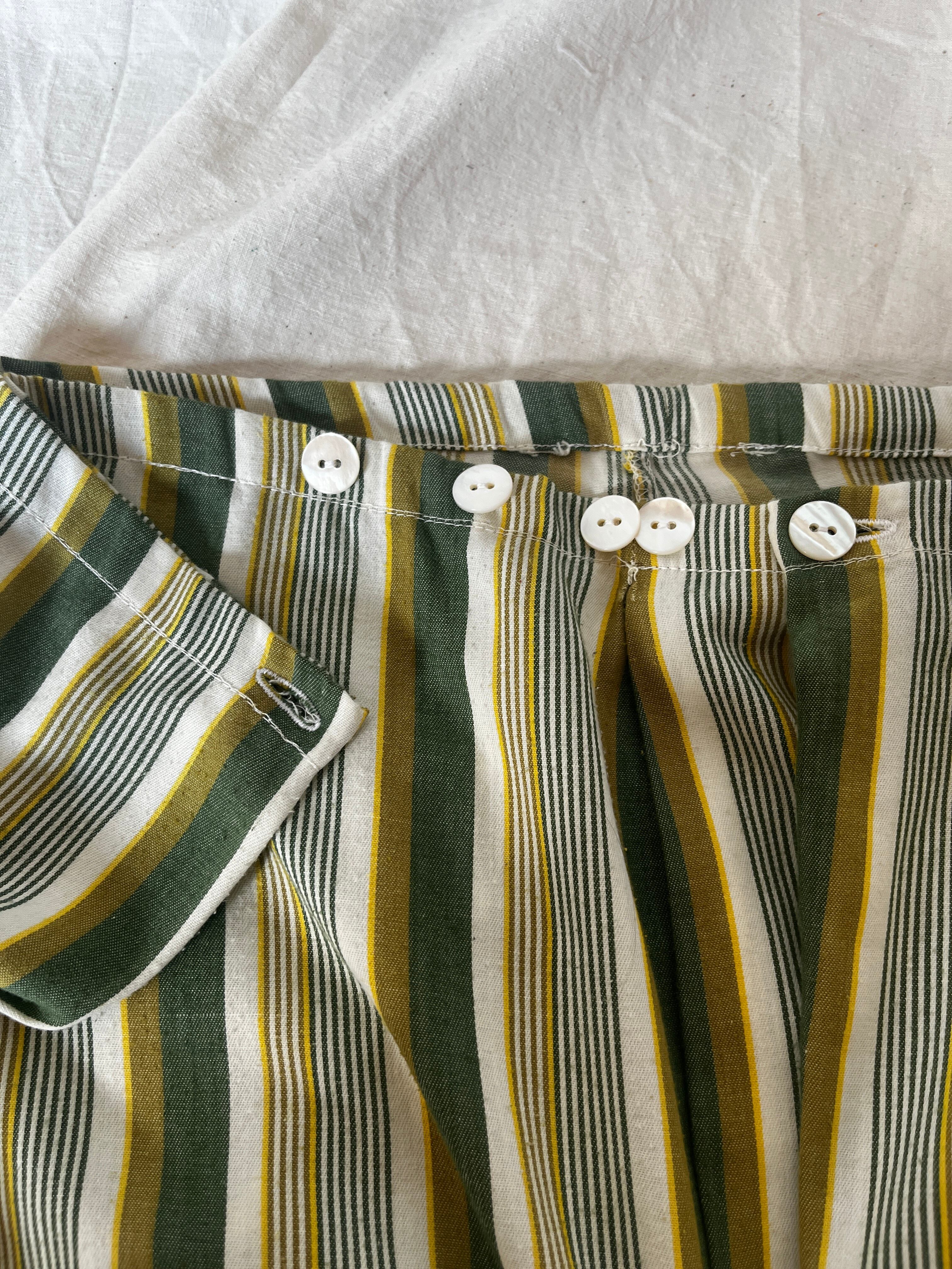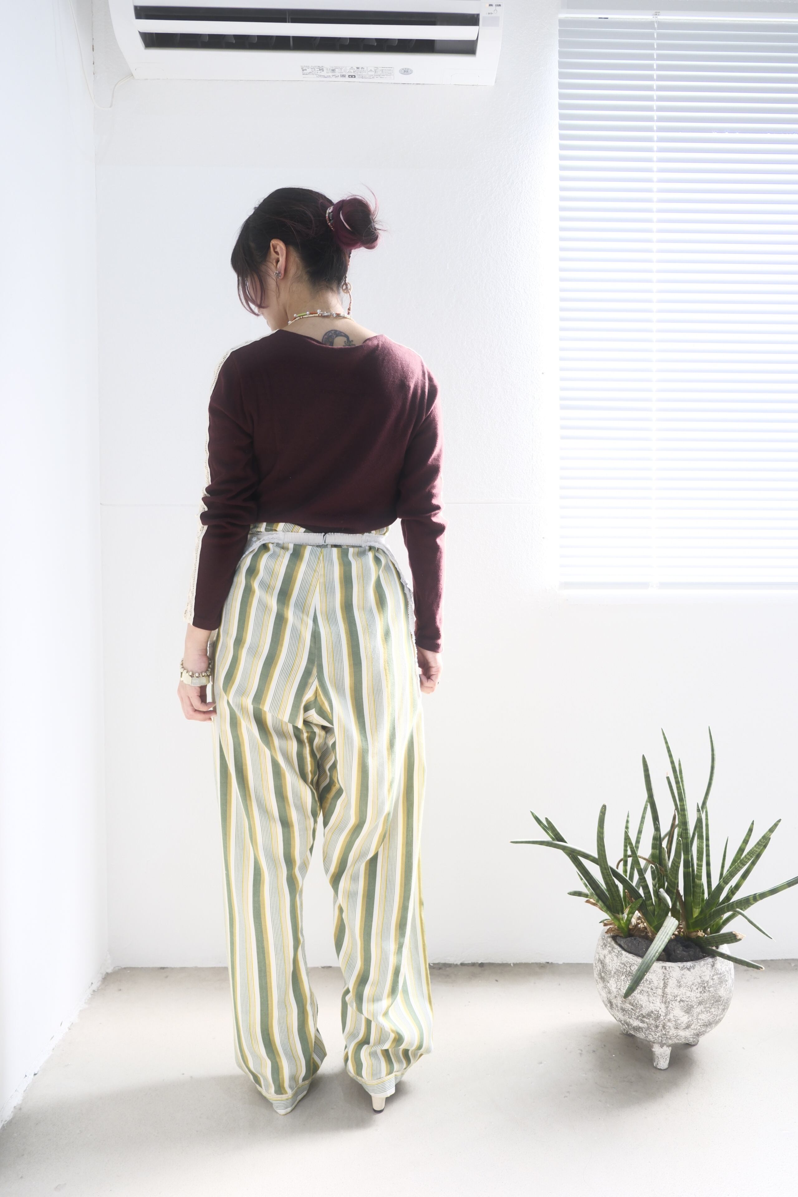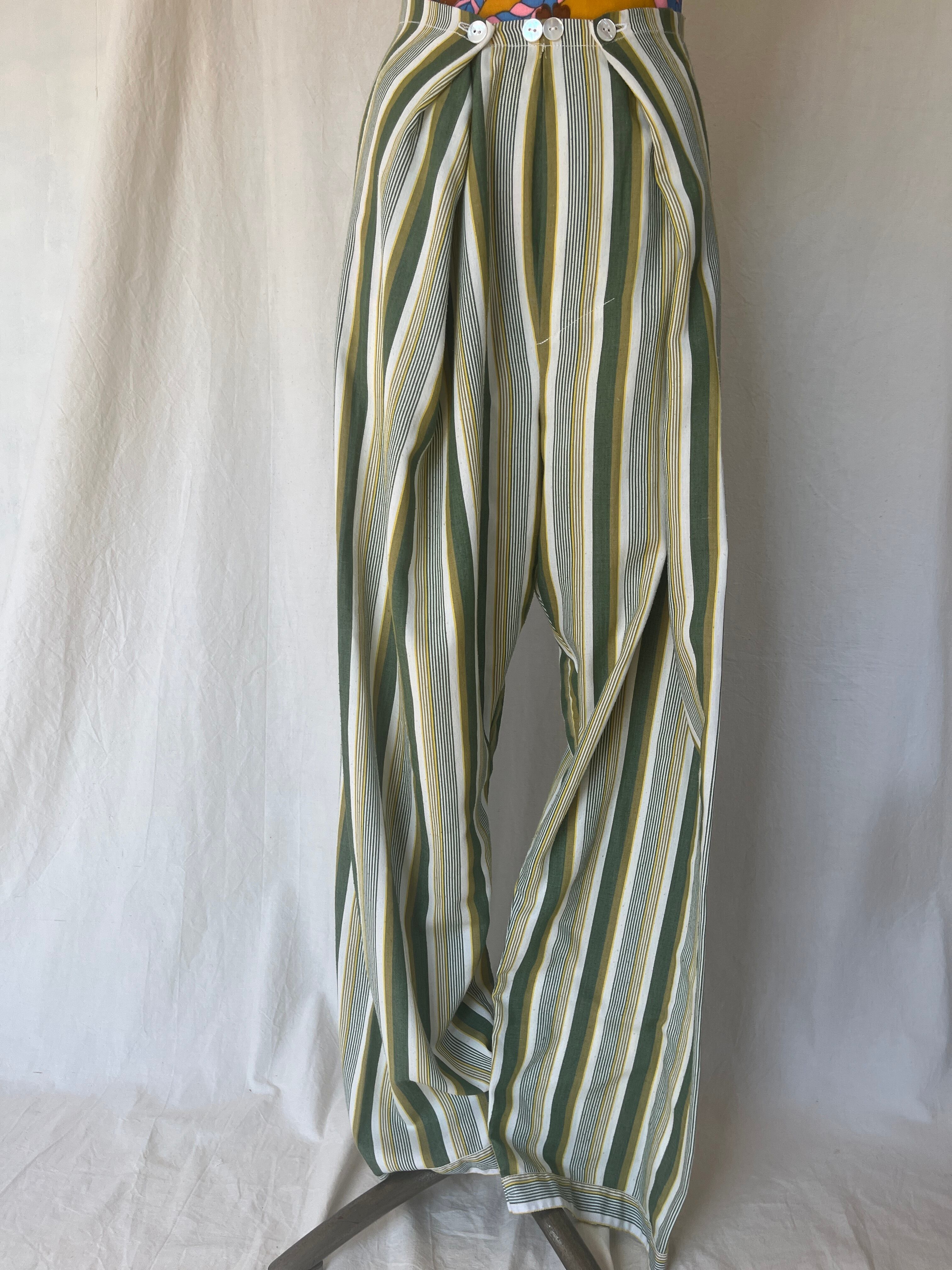 ウエストはゴムを抜いてボタンで留められる様にリメイクしています。