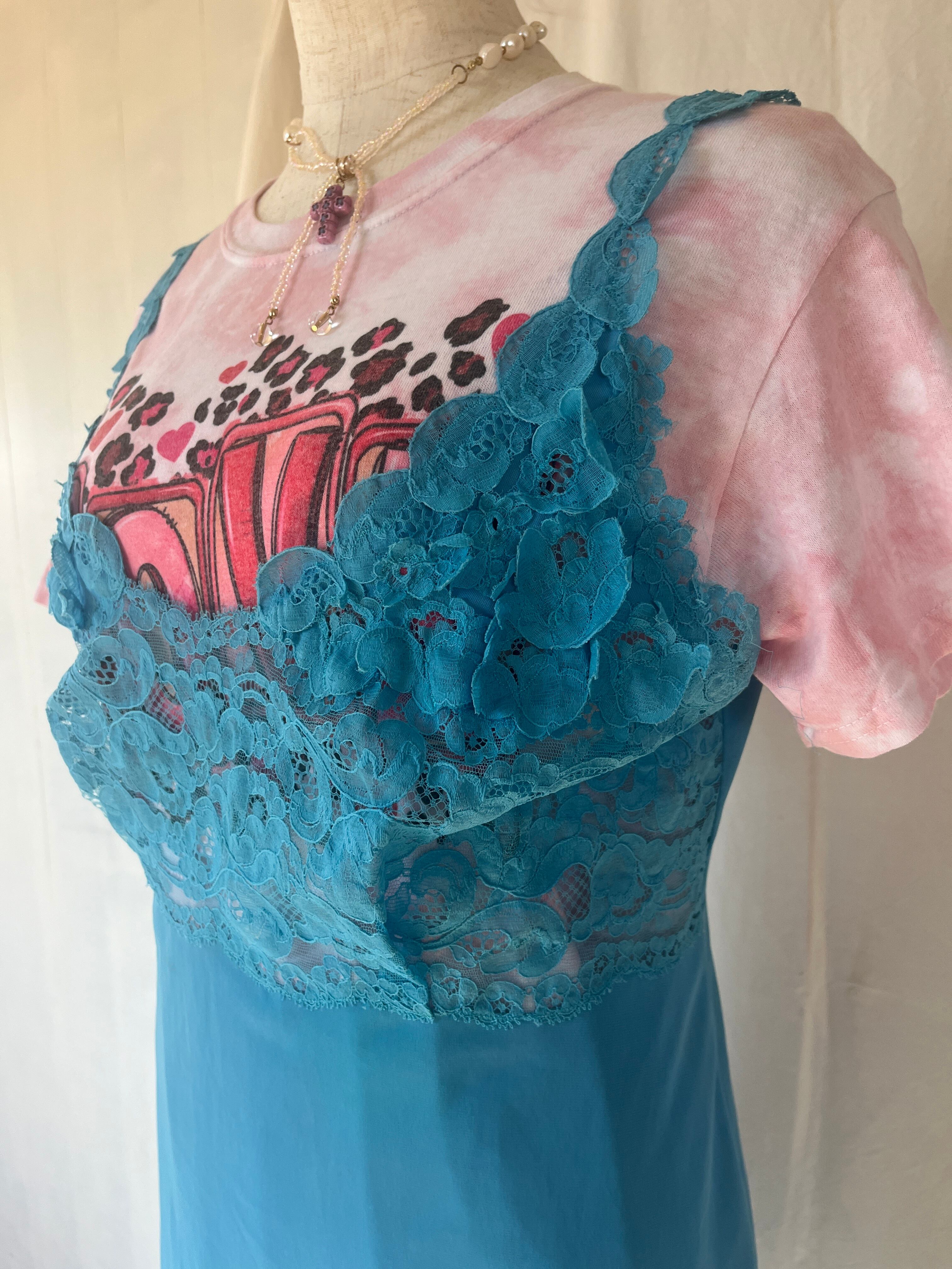 ヨーロッパで買い付けたブルーのスリップドレスです。