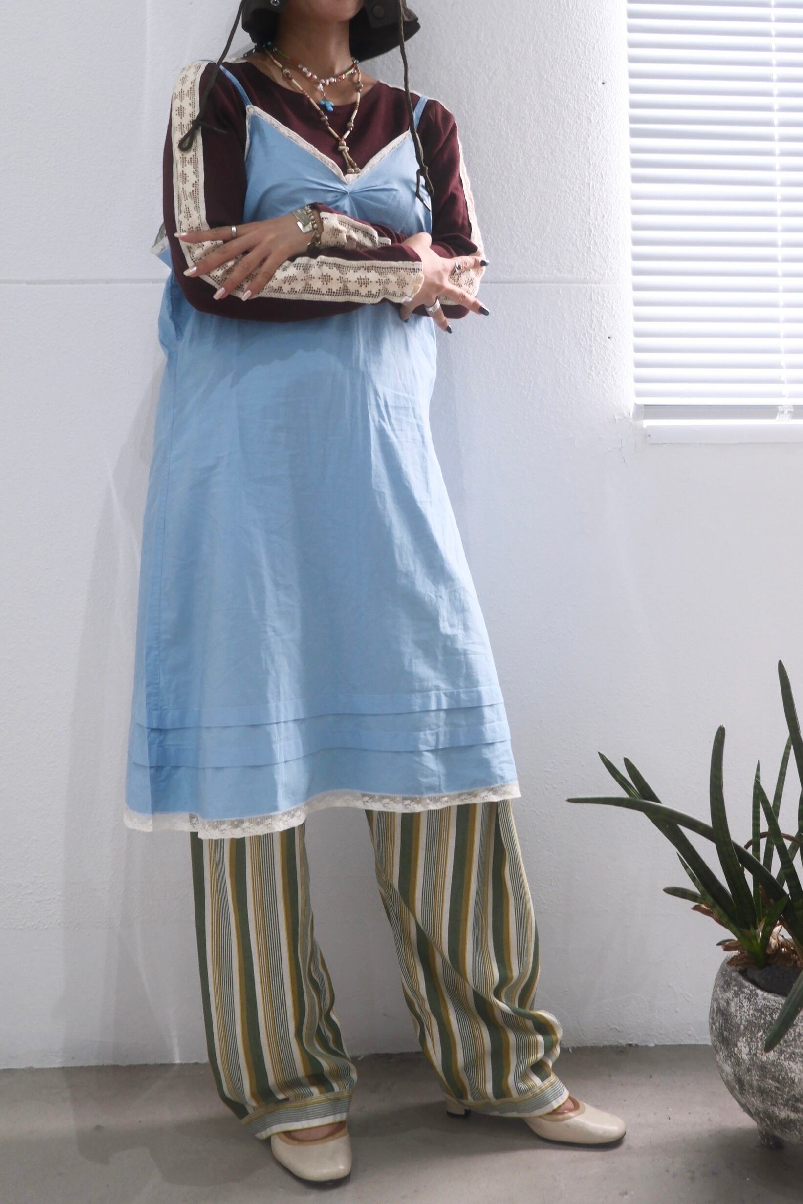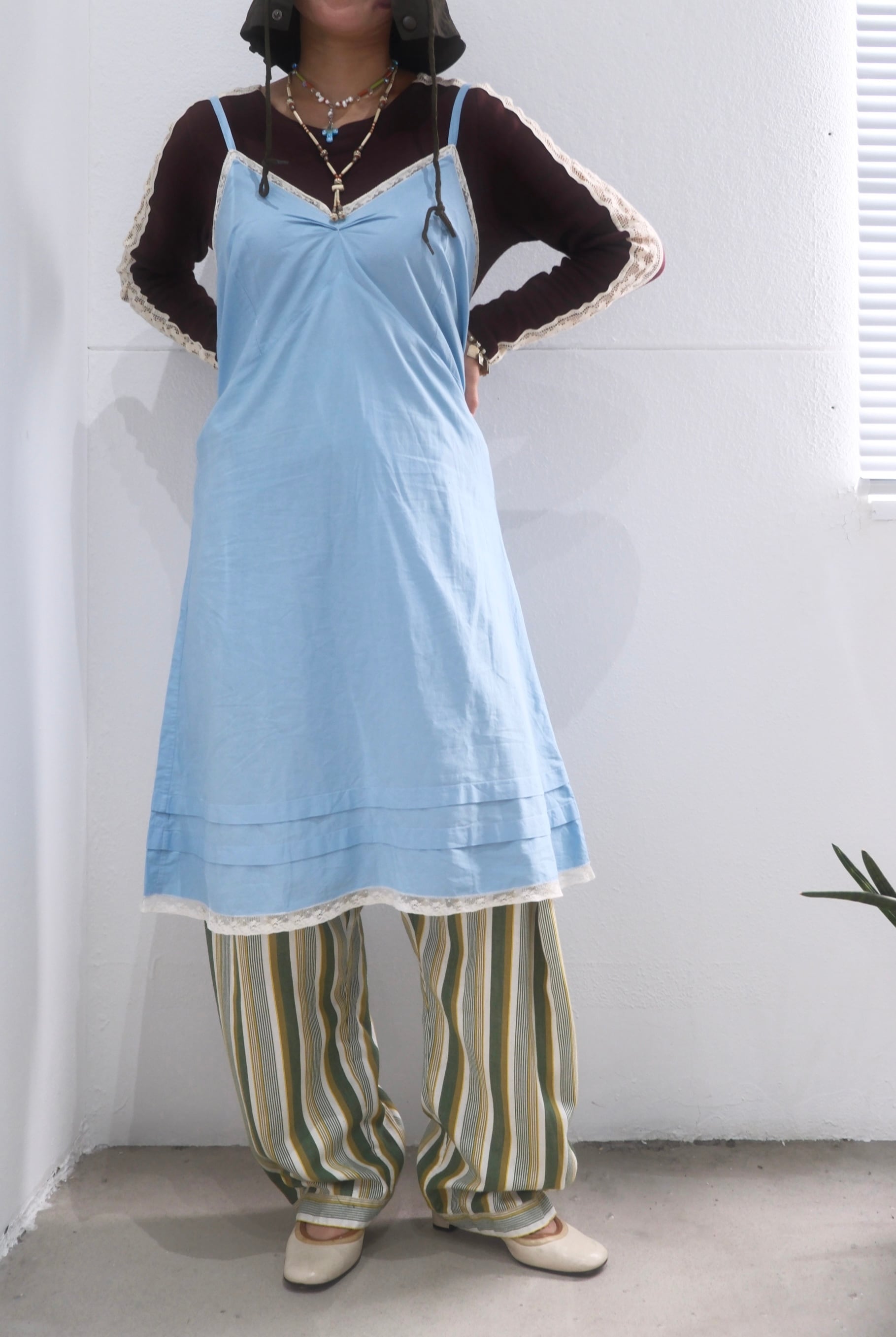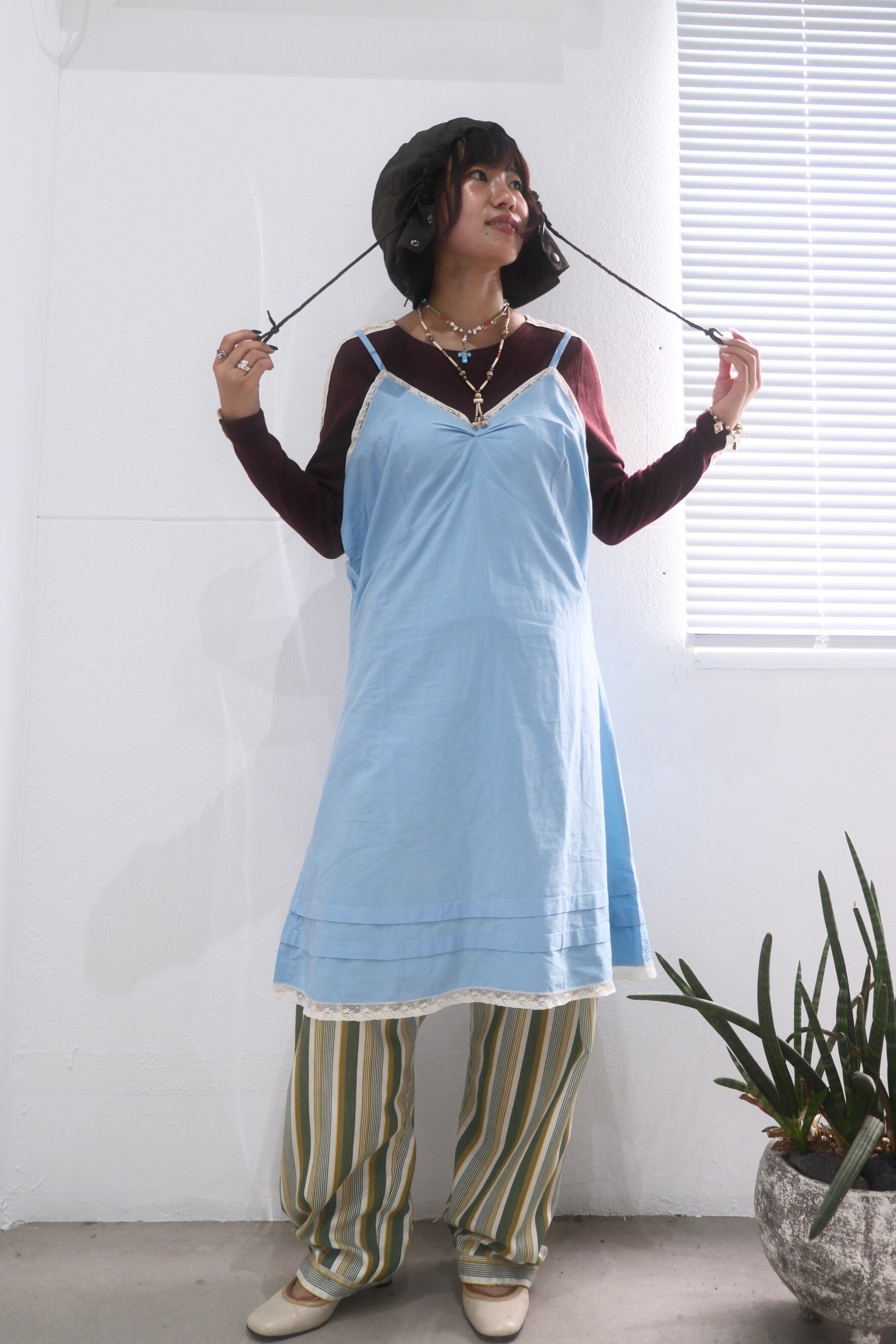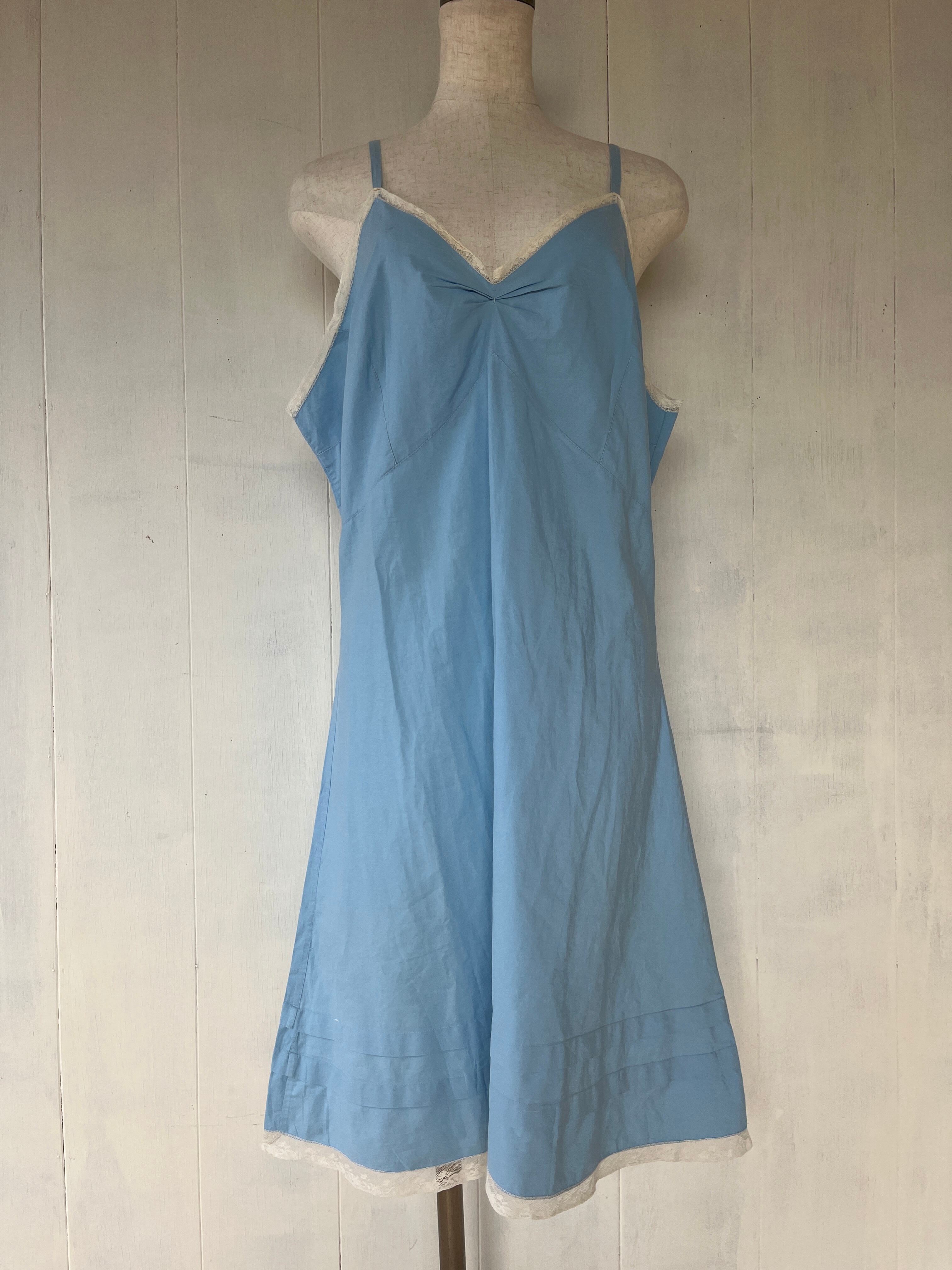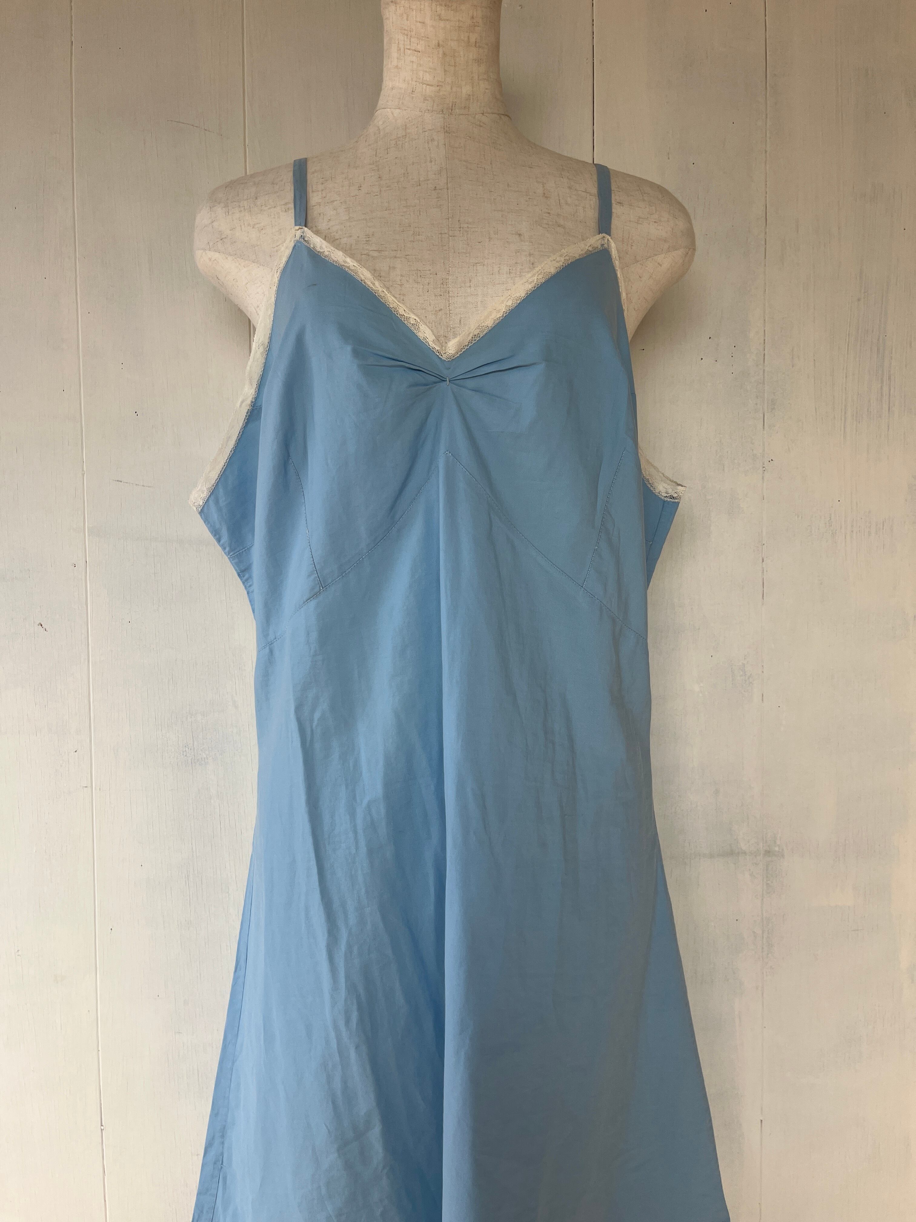 ブルーのコットンキャミソールワンピース。