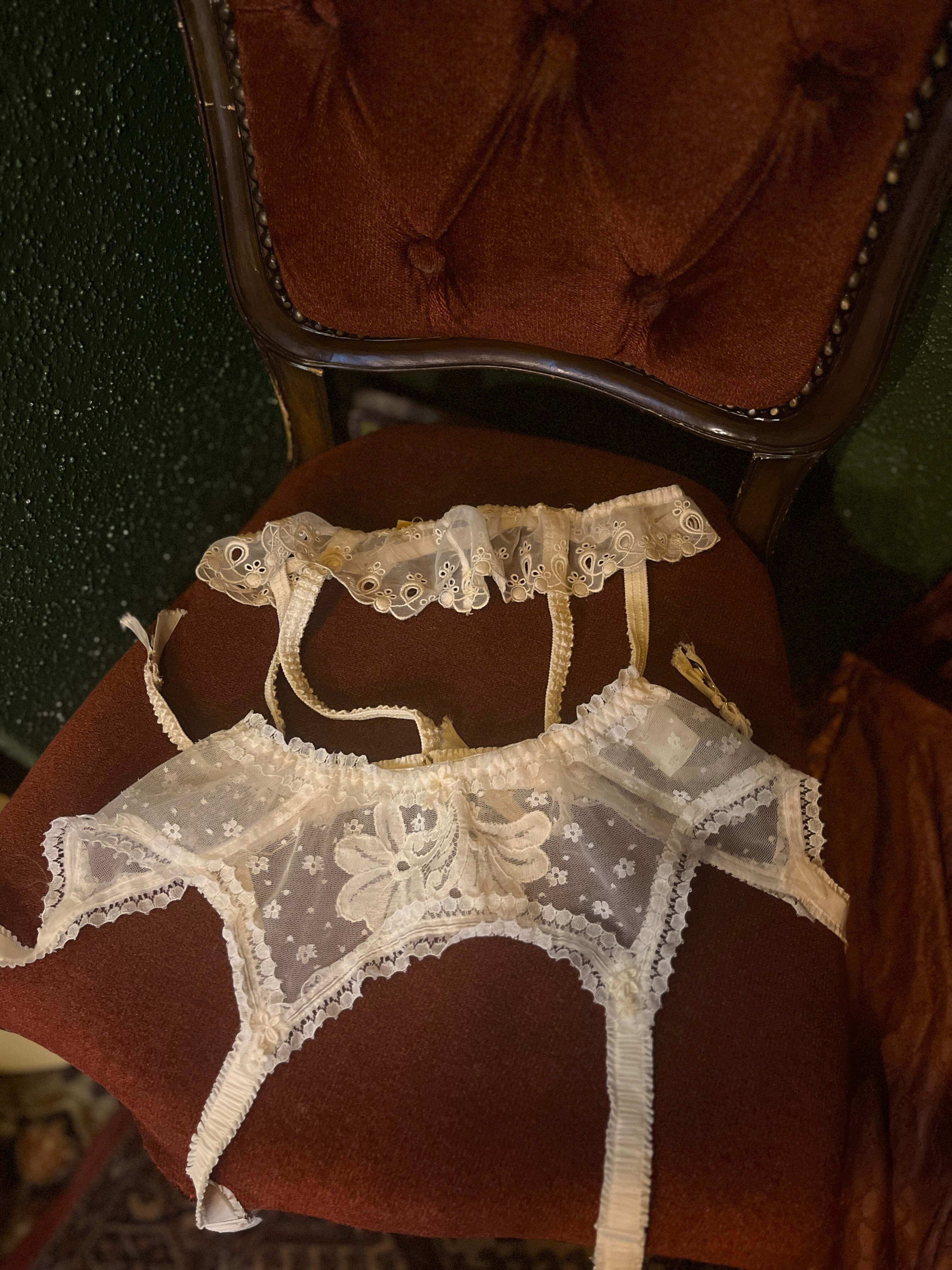 ヨーロッパで買い付けたヴィンテージのガーターベルト。