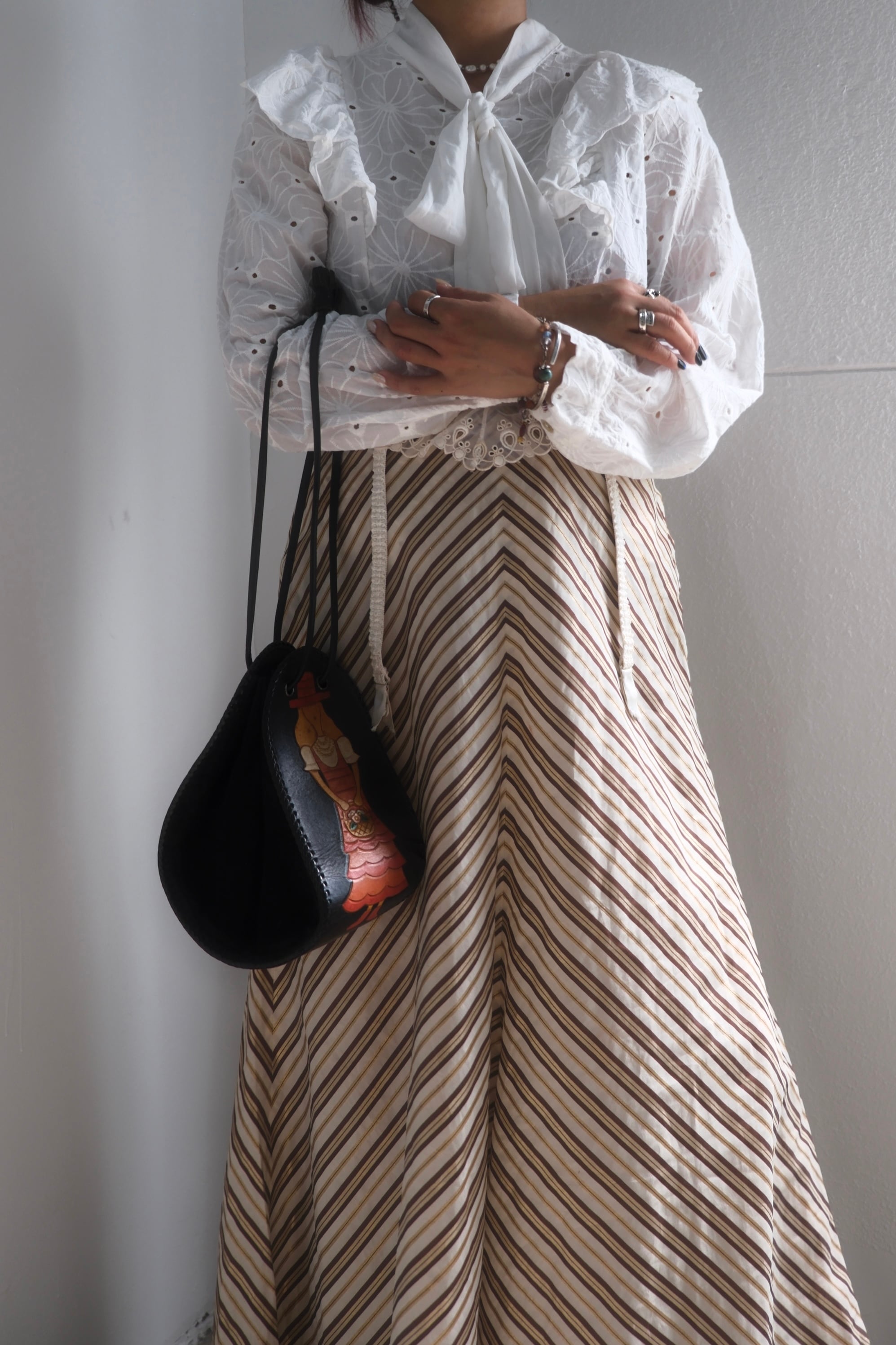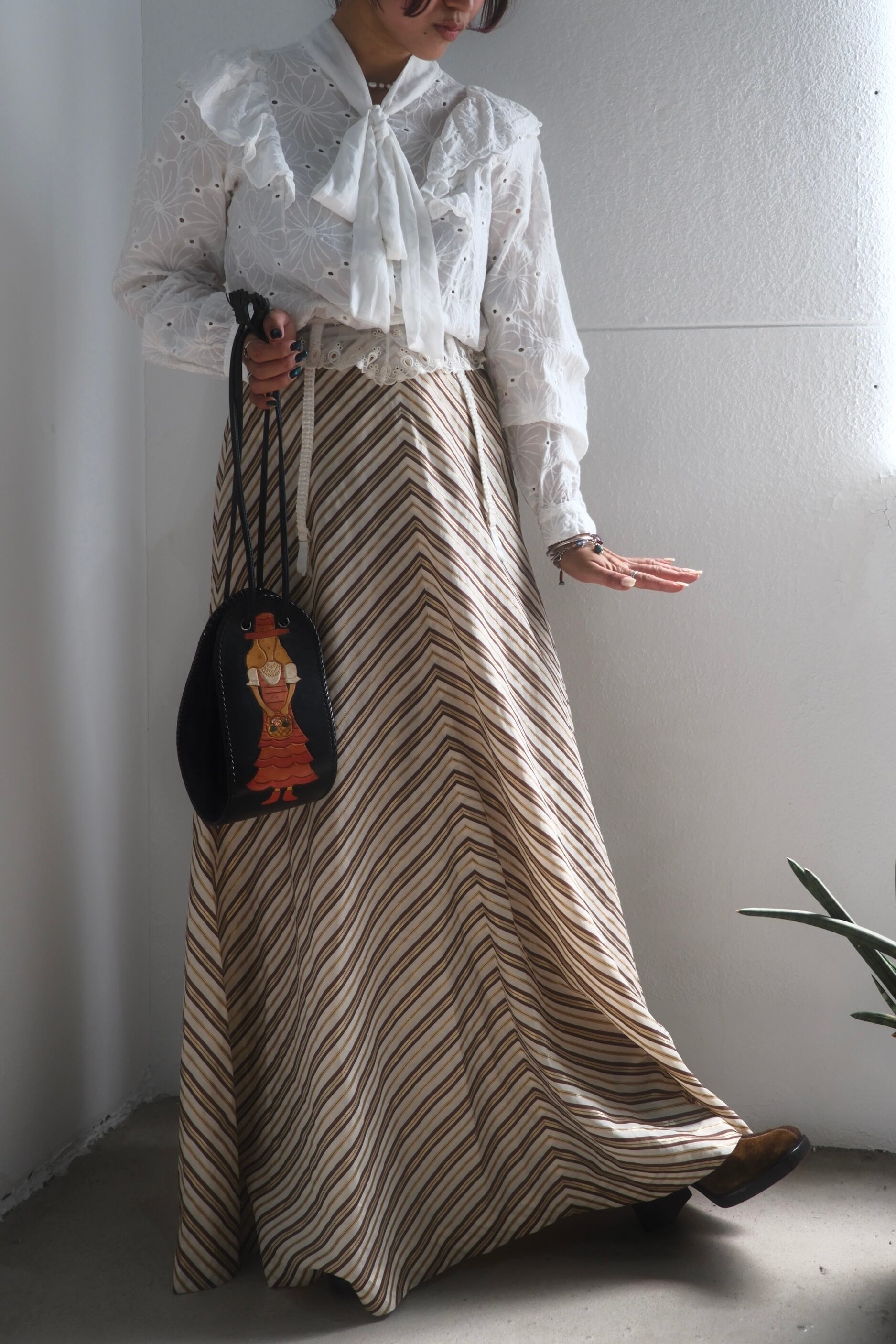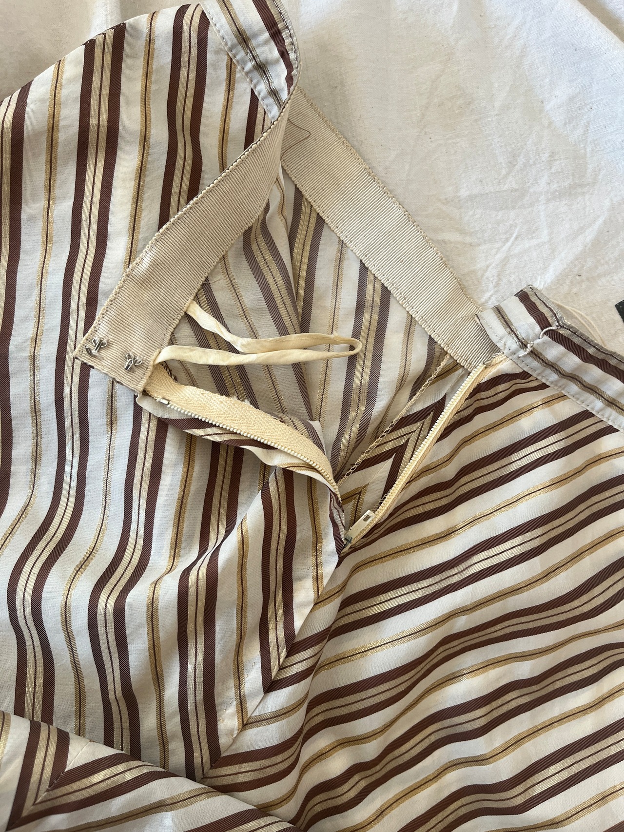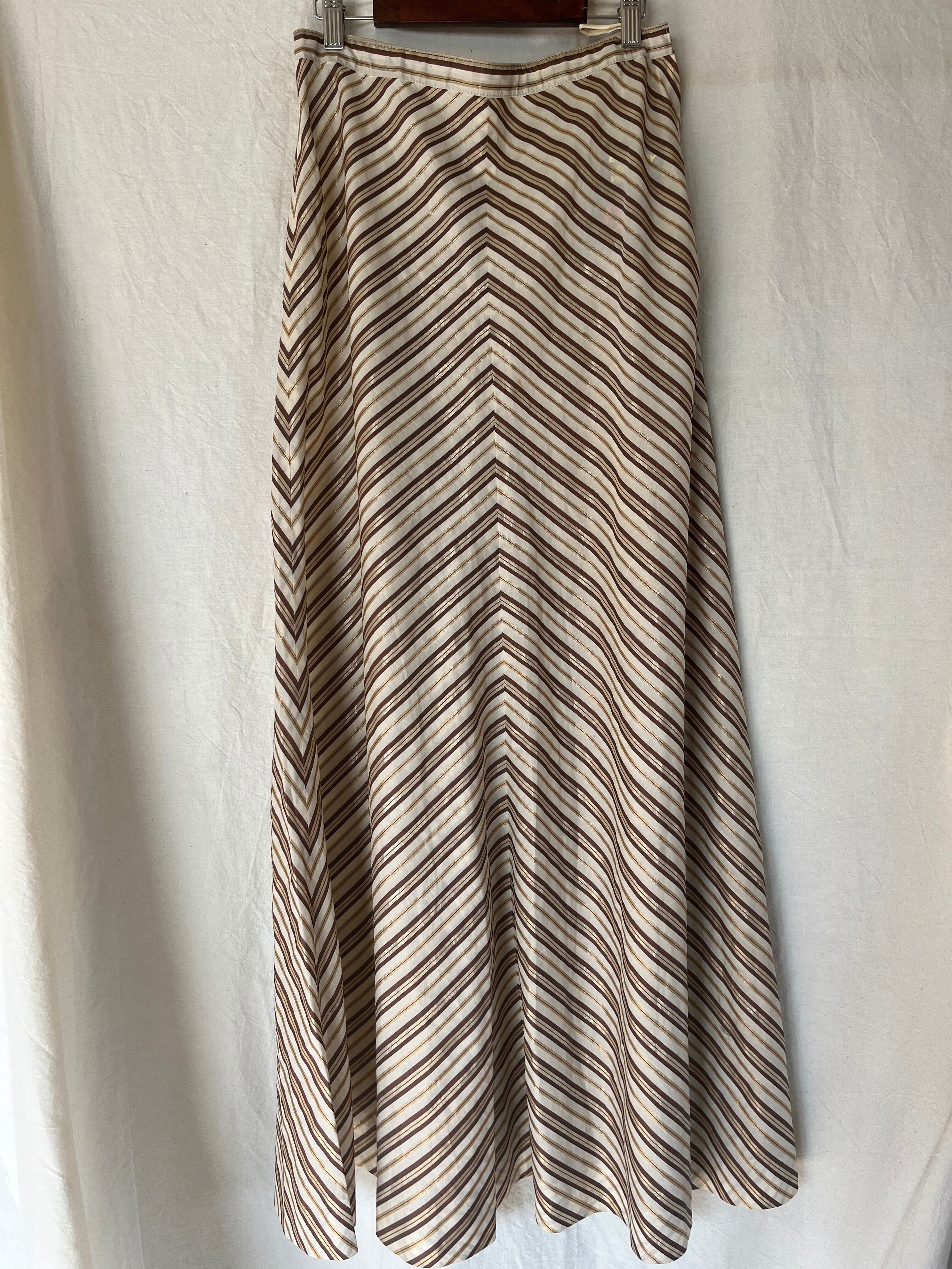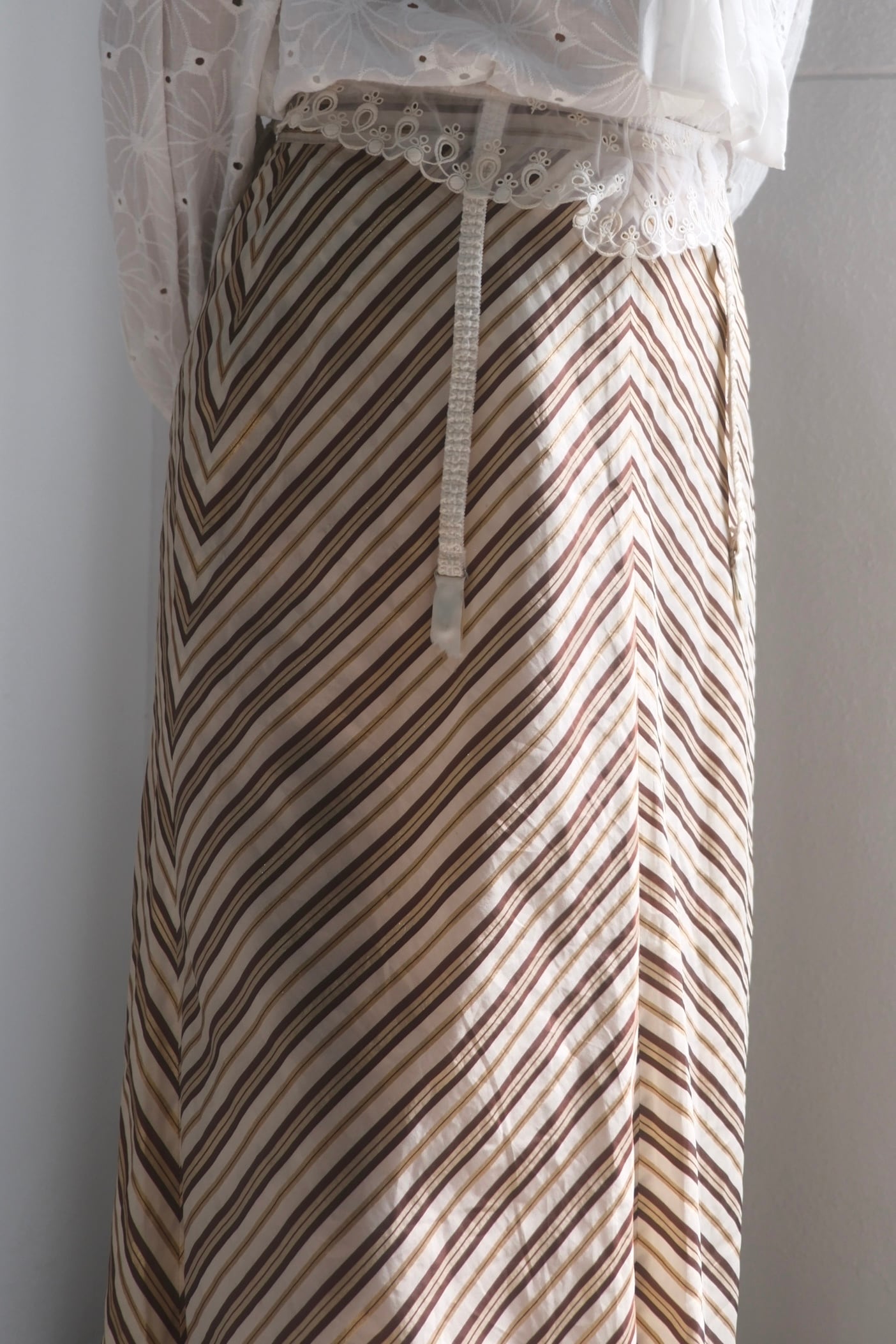 ブラウン×ゴールドのストライプ柄マキシスカート。