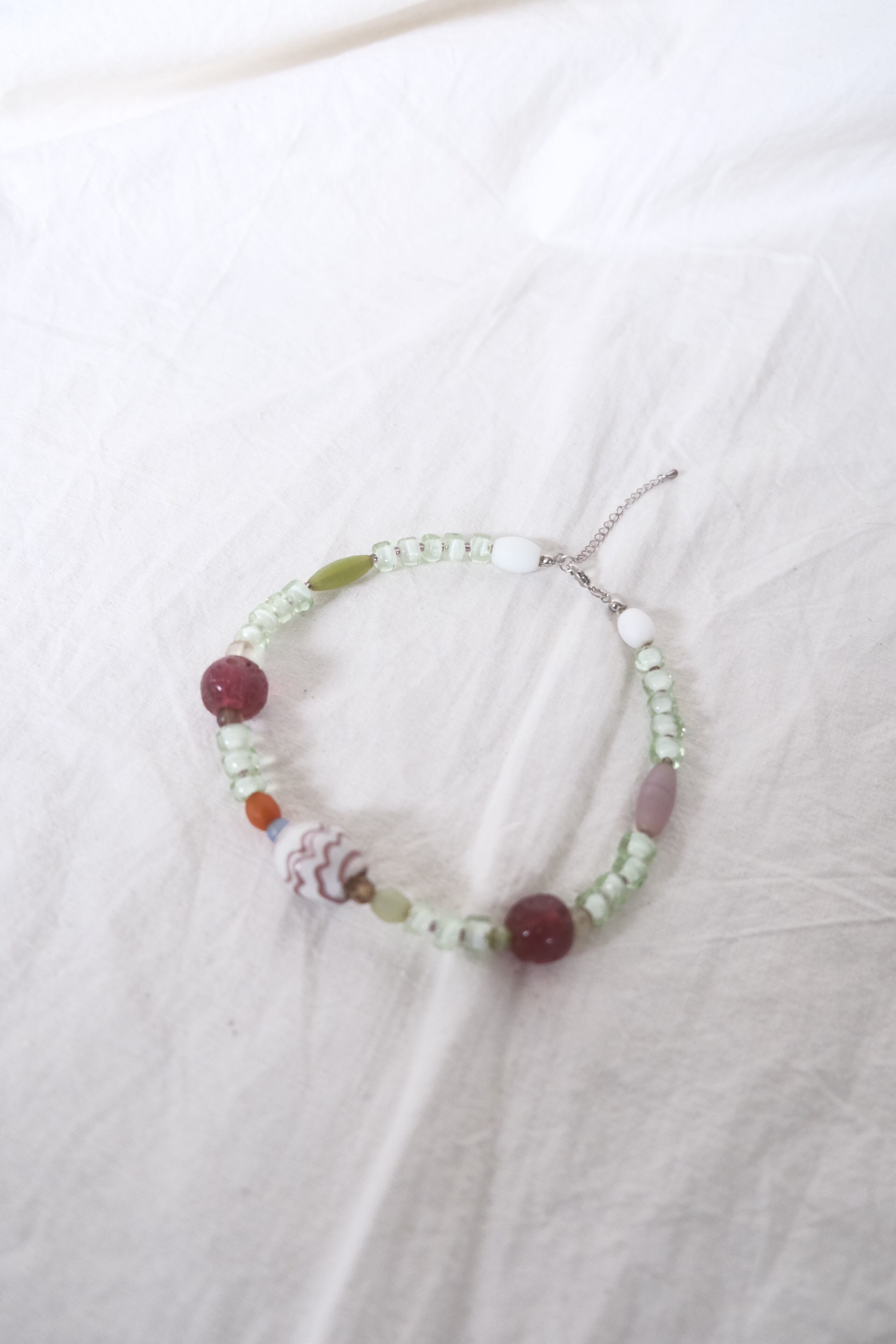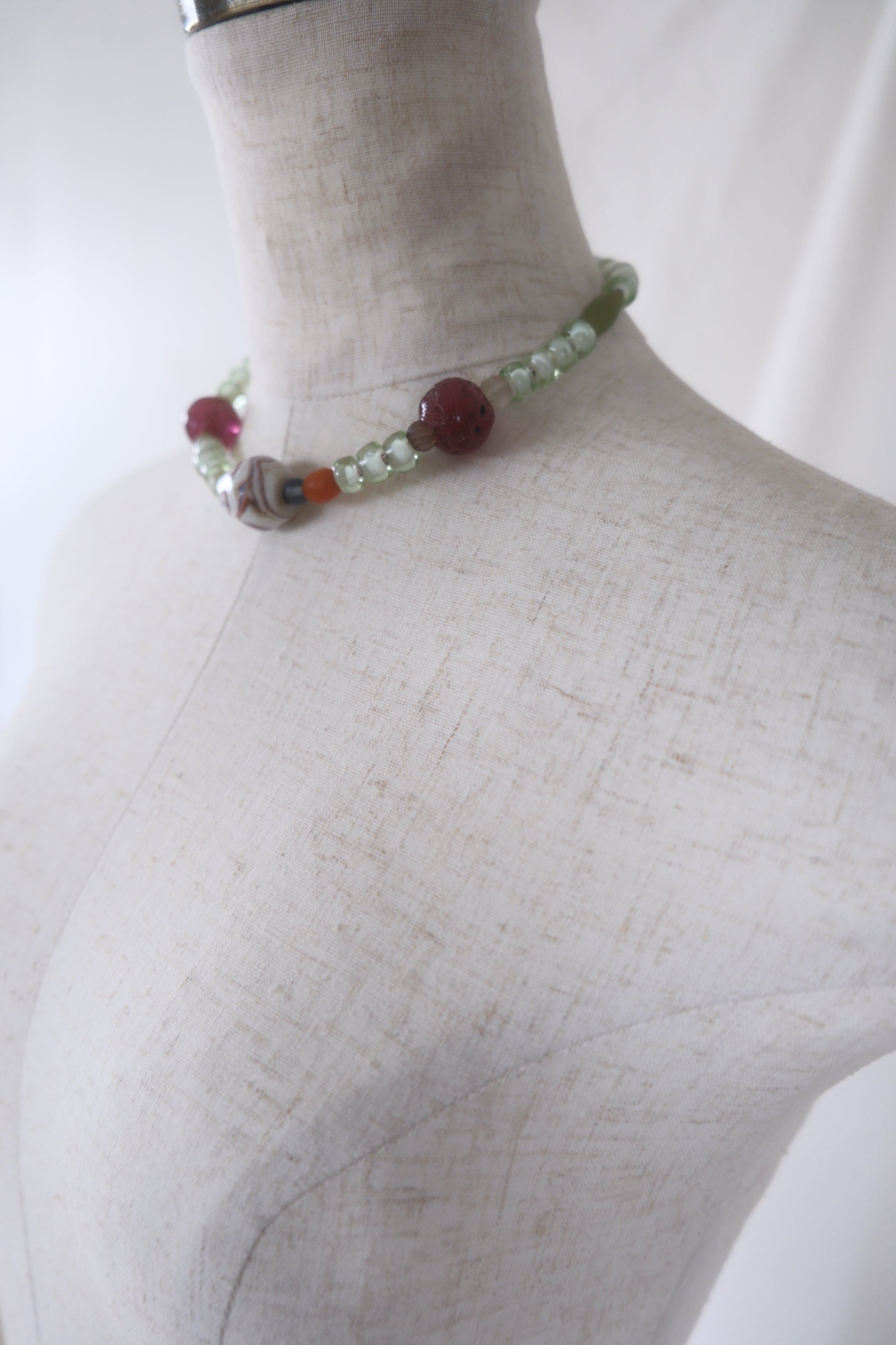 タイ、チェンマイの旅で出会った古いグラスビーズでネックレスをつくりました。