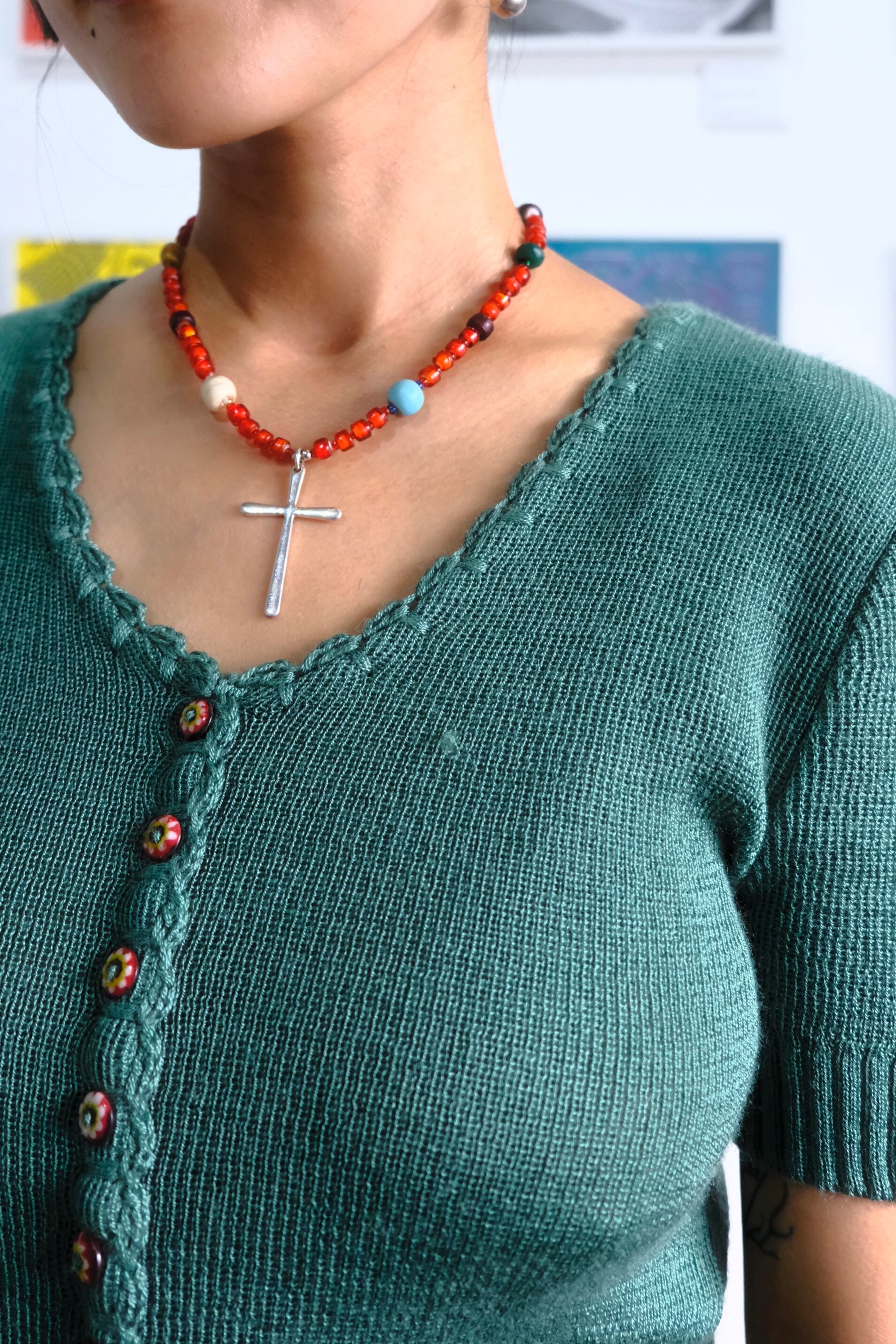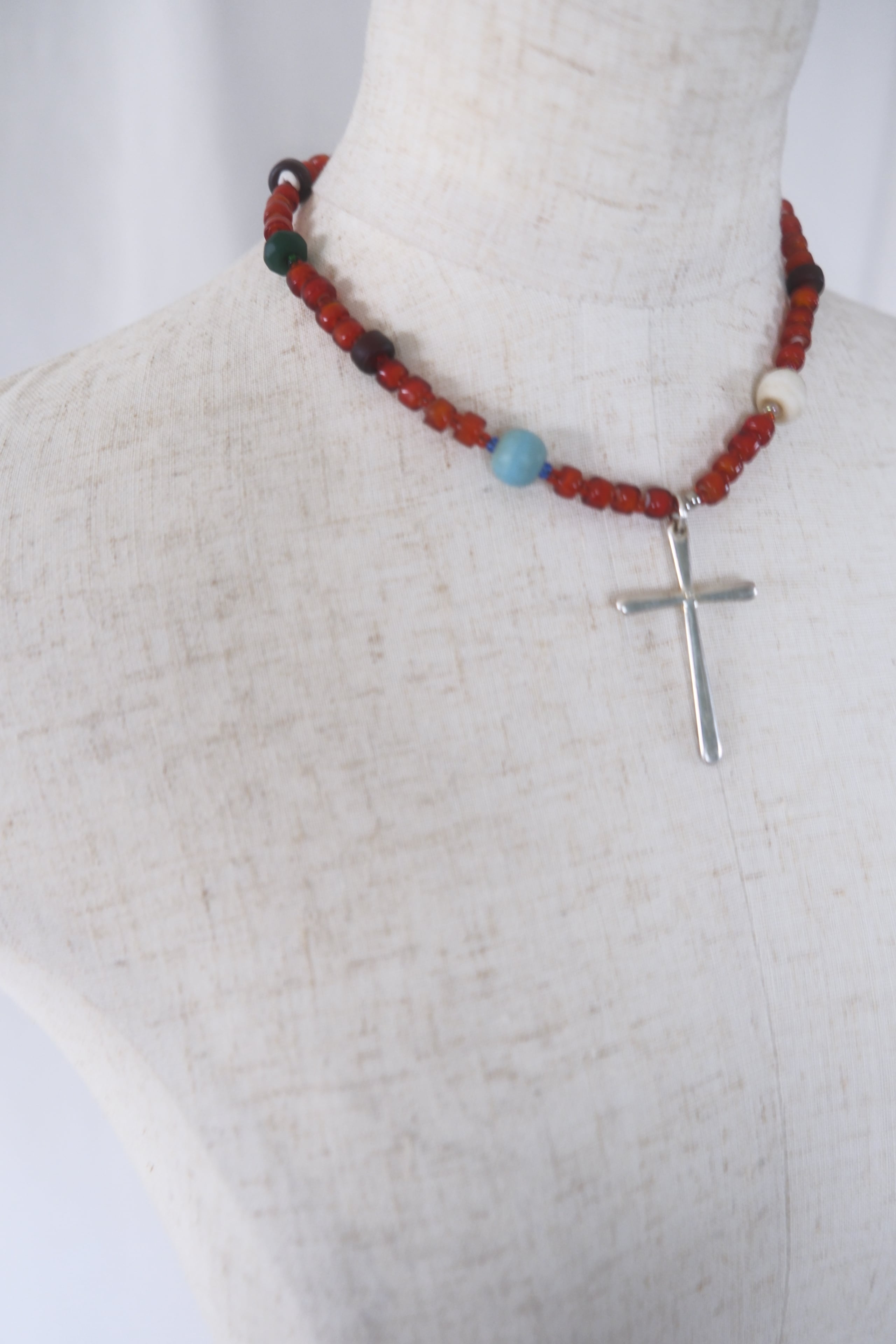 タイ、チェンマイの旅で出会った古いグラスビーズでネックレスをつくりました。