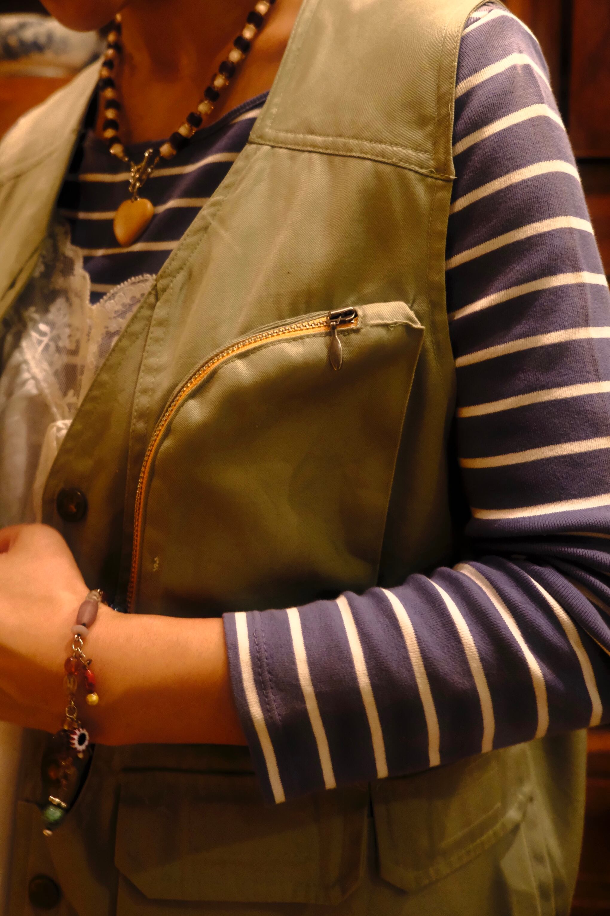 ファスナーの濃いグリーンとイエローもアクセントになって可愛いし、