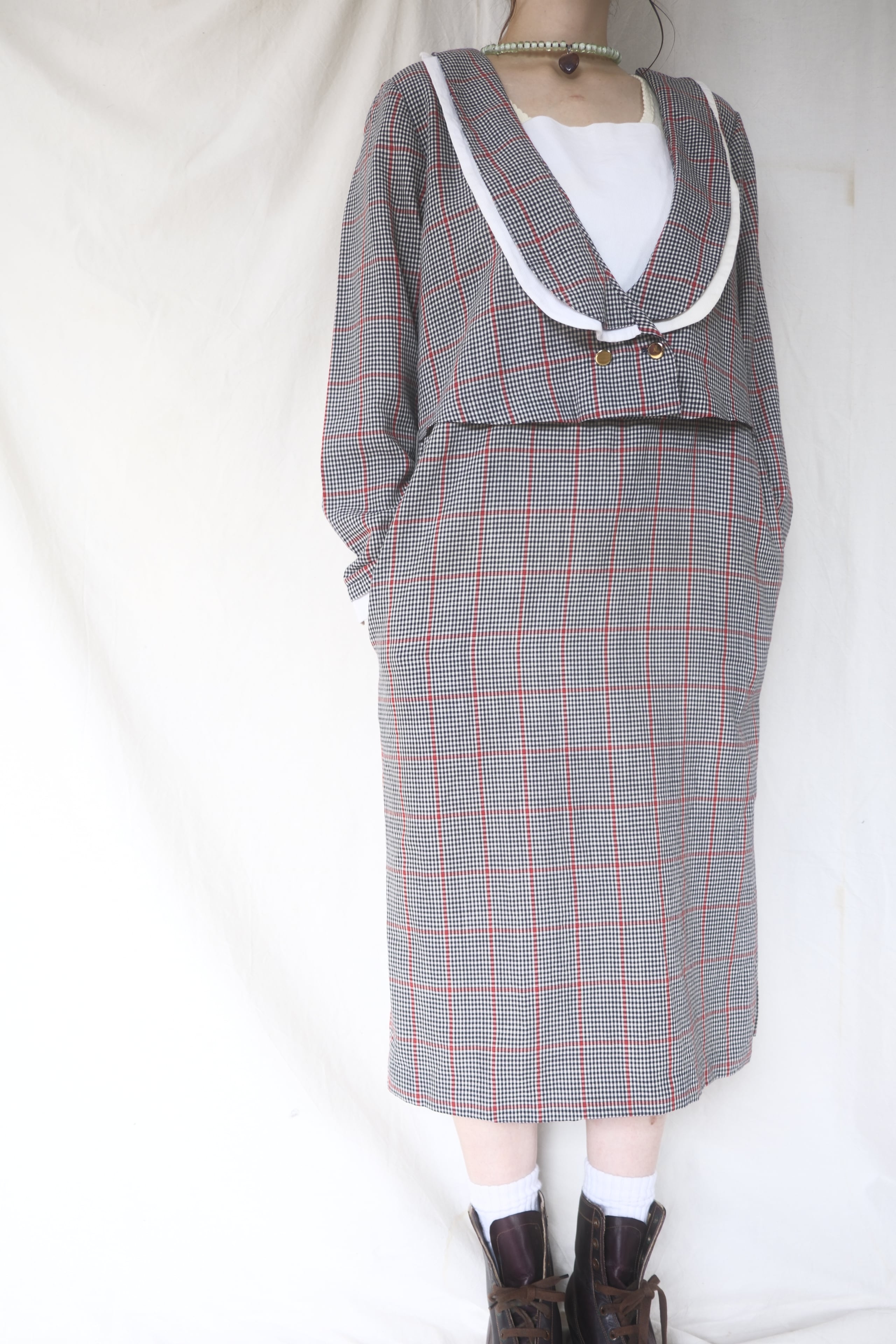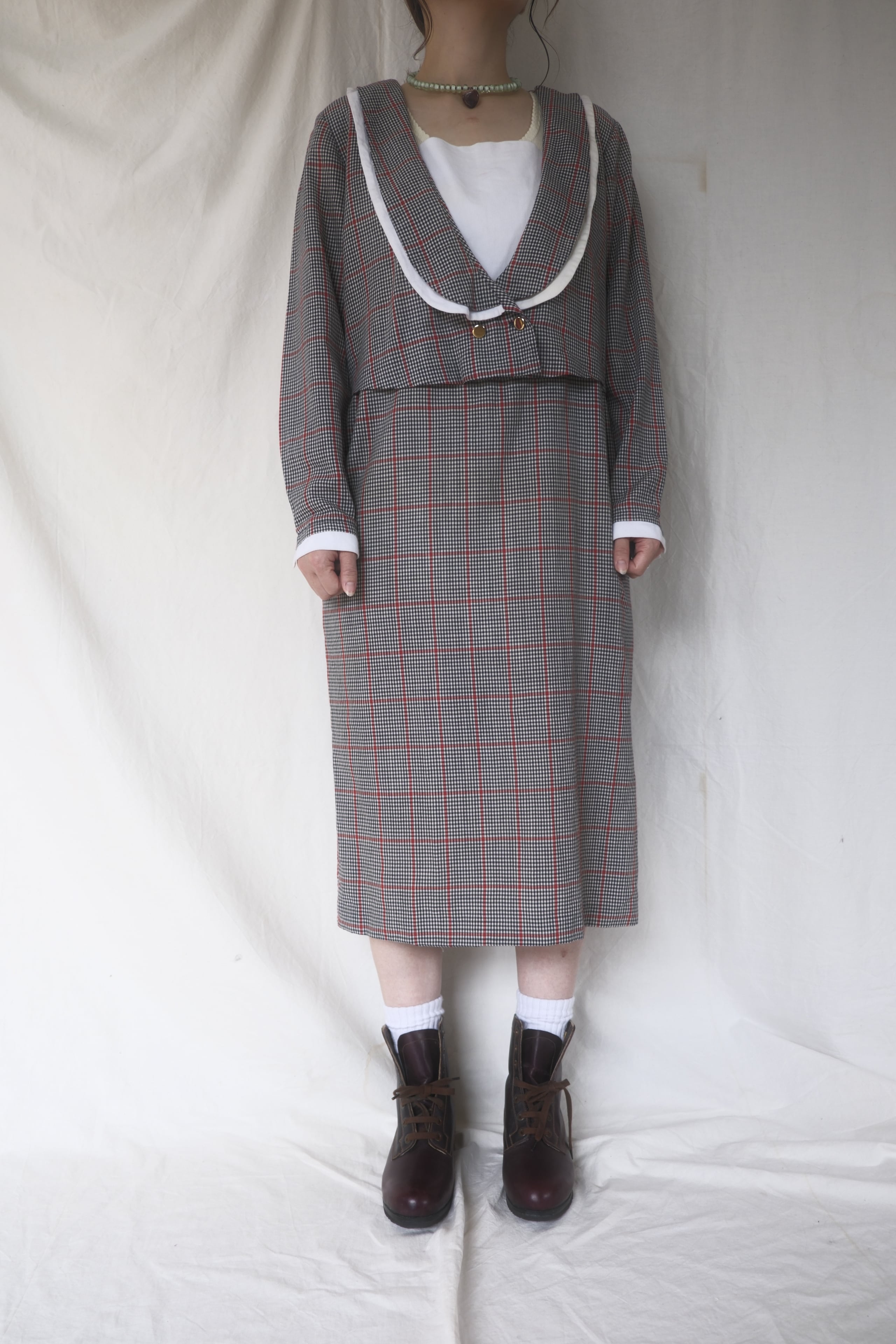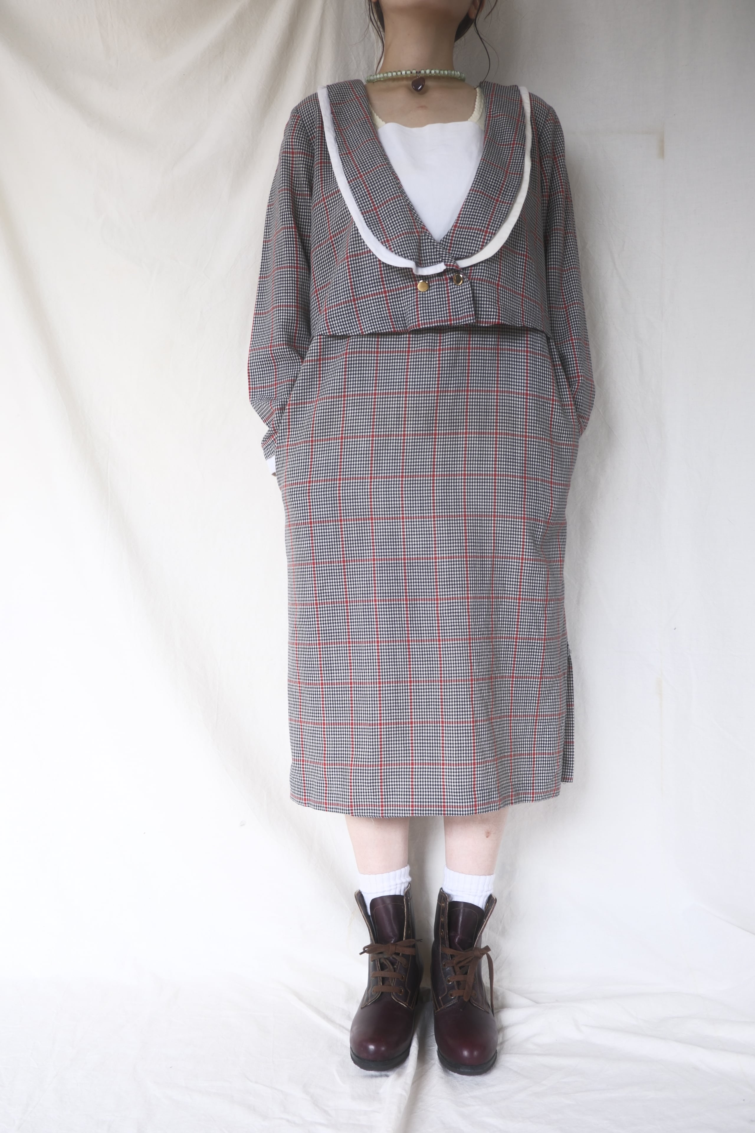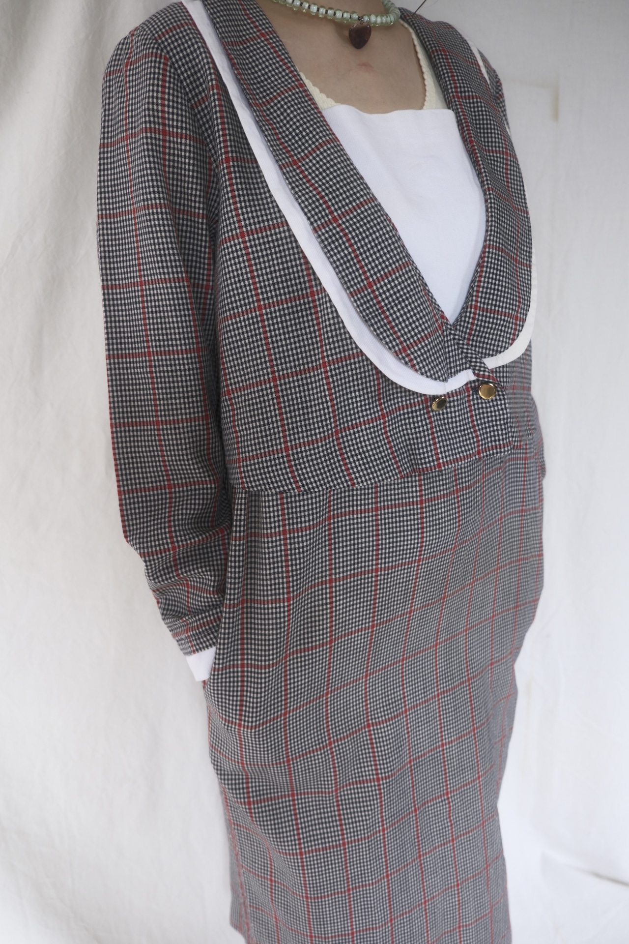 1980's Layered Design Check Dress