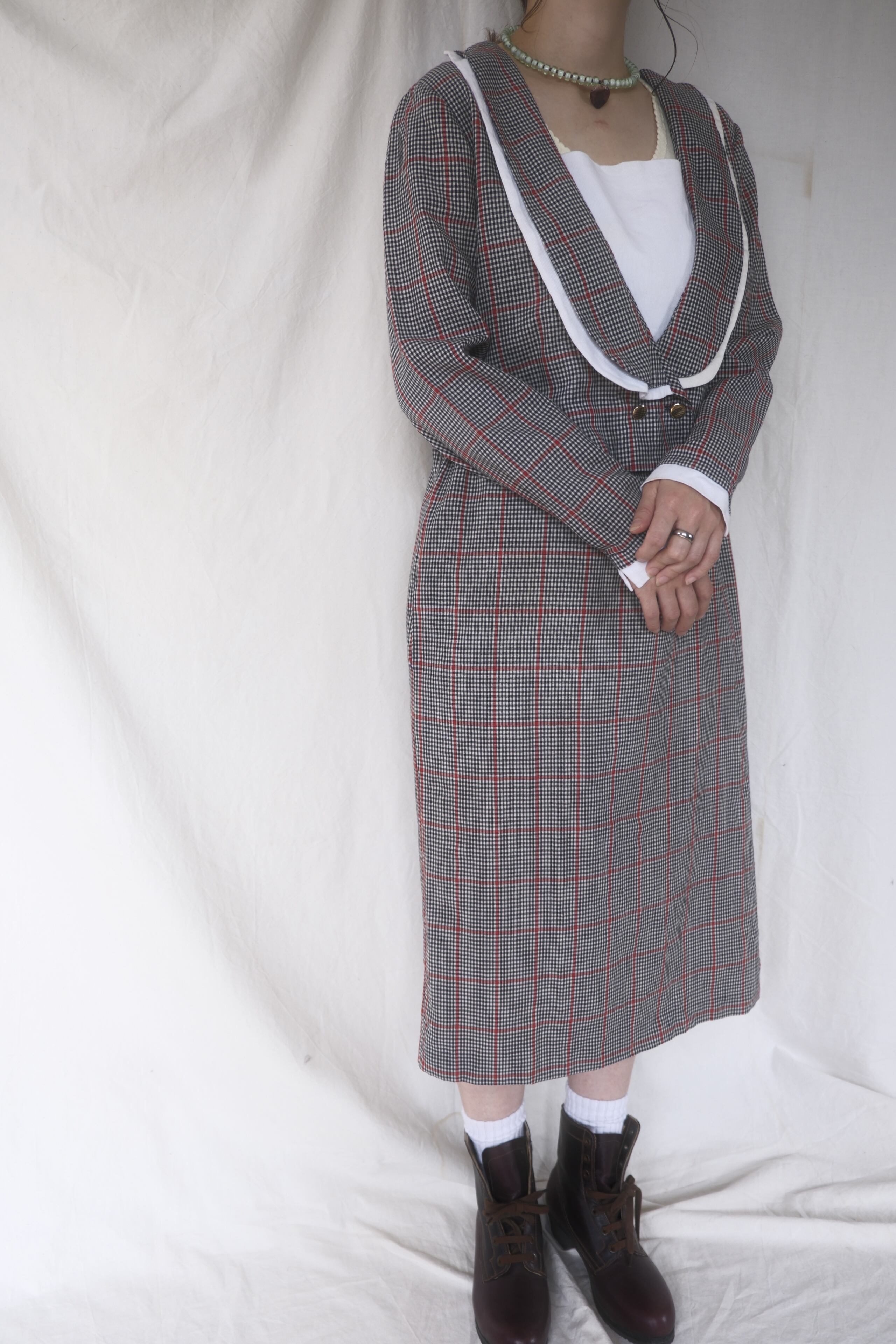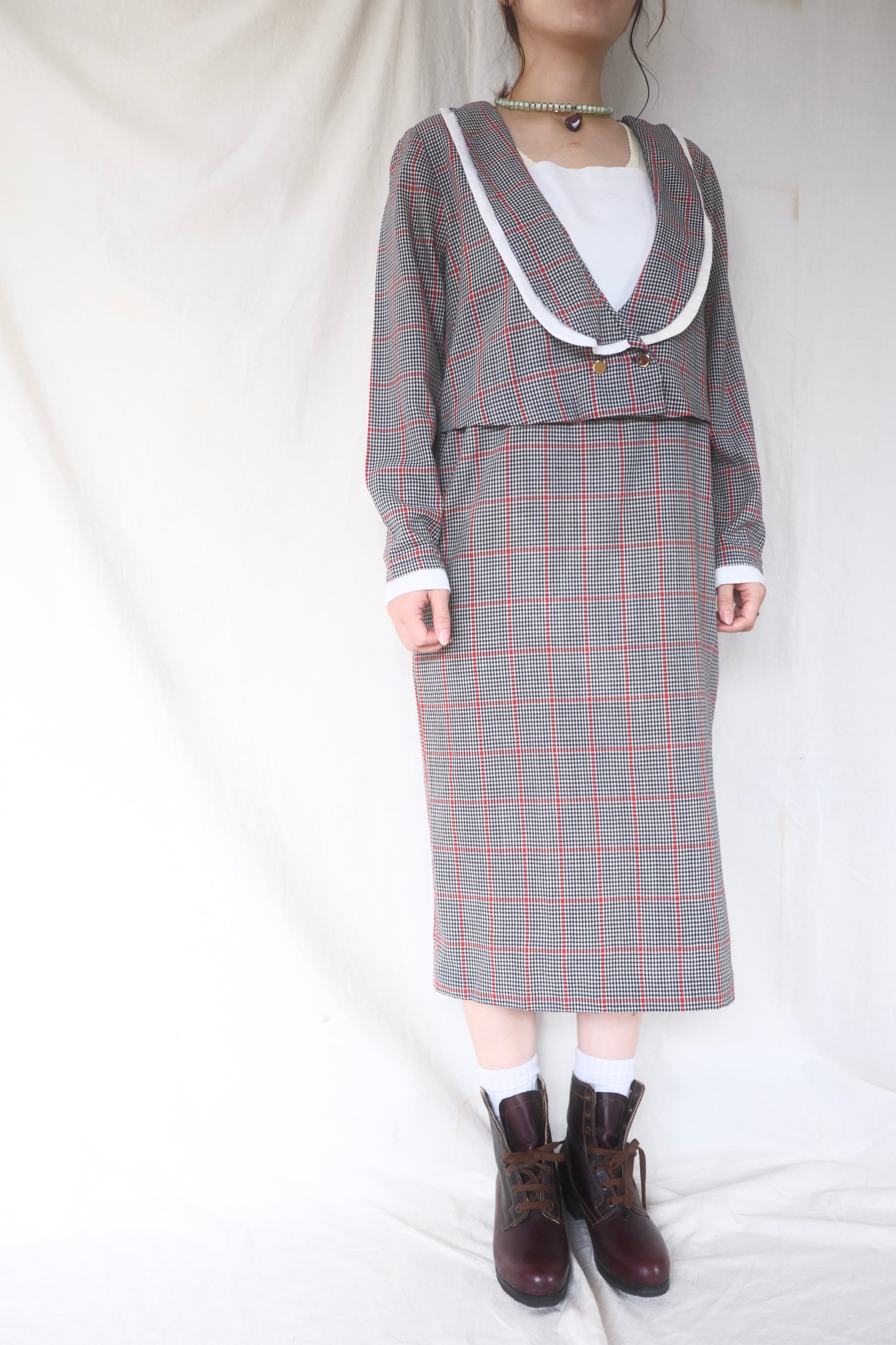 クラシカルなチェックが上品で知的な印象を与えます。