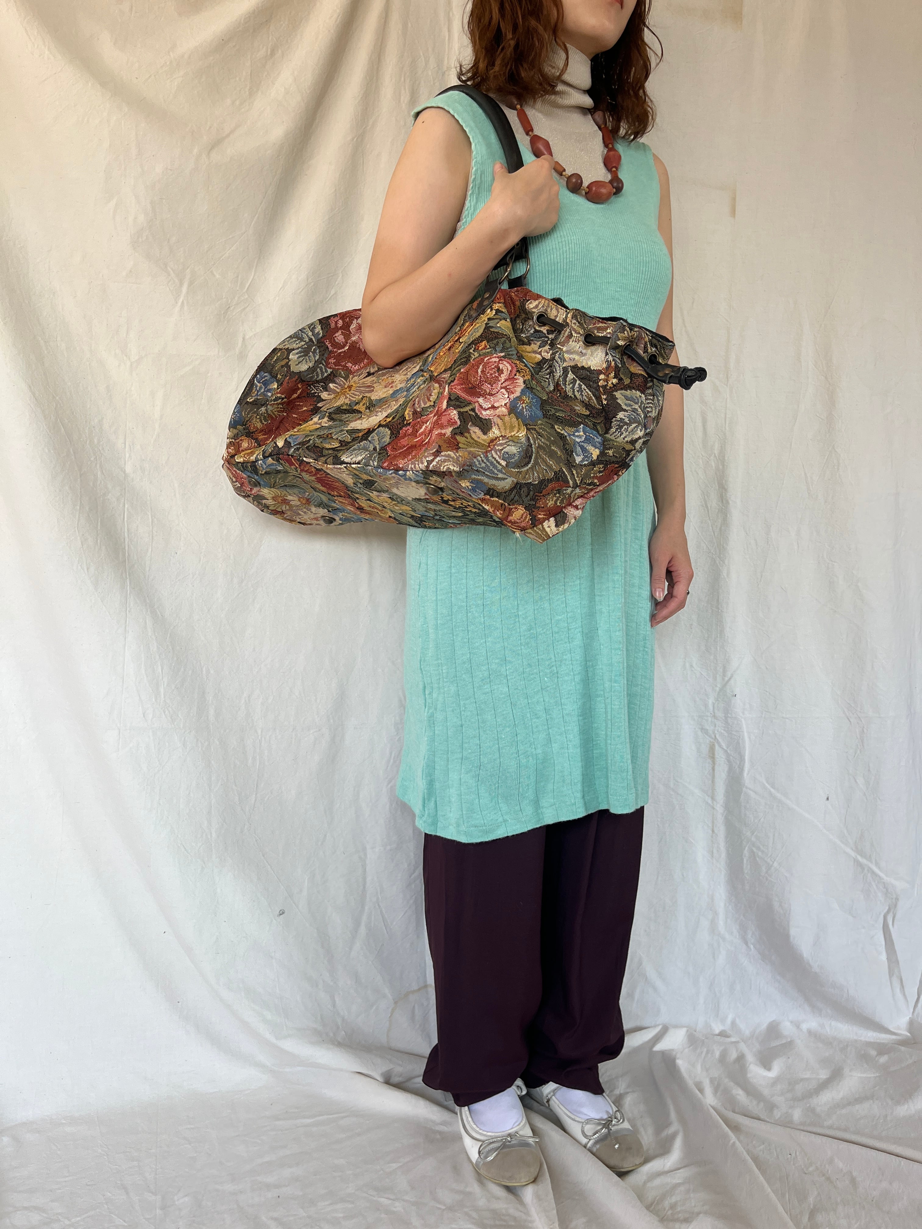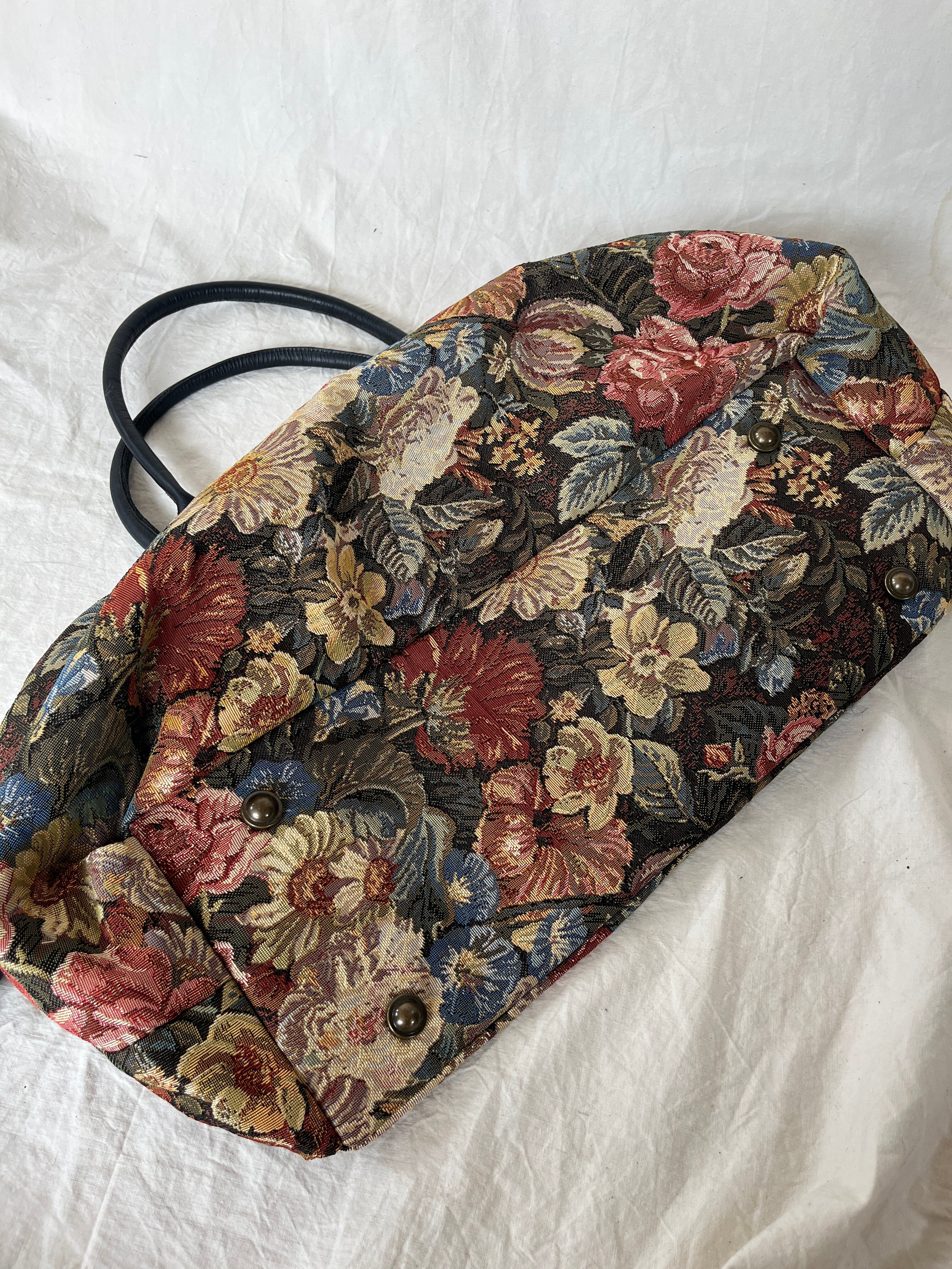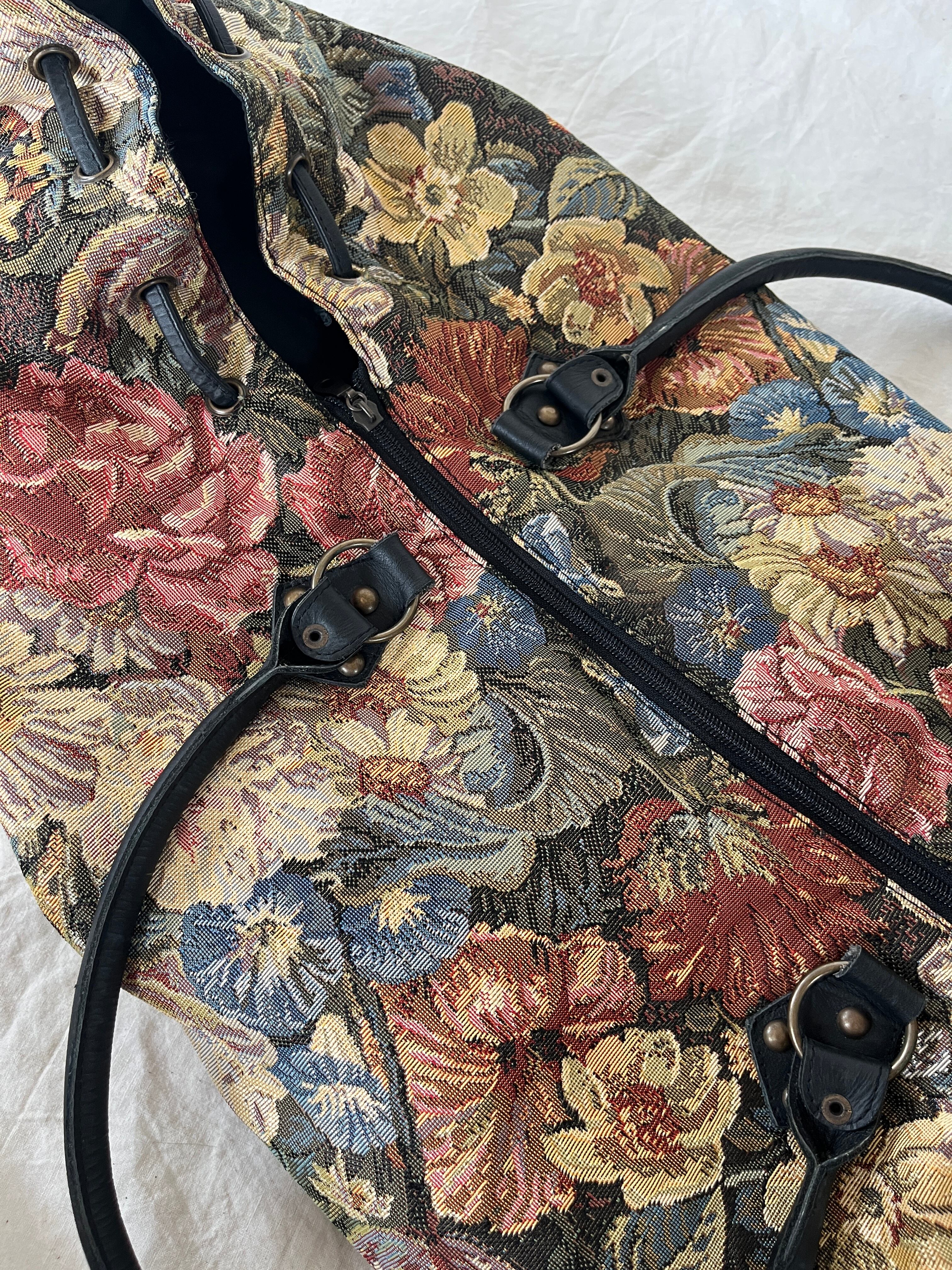 ロマンティックな花柄のゴブラン織ボストンバッグ。
