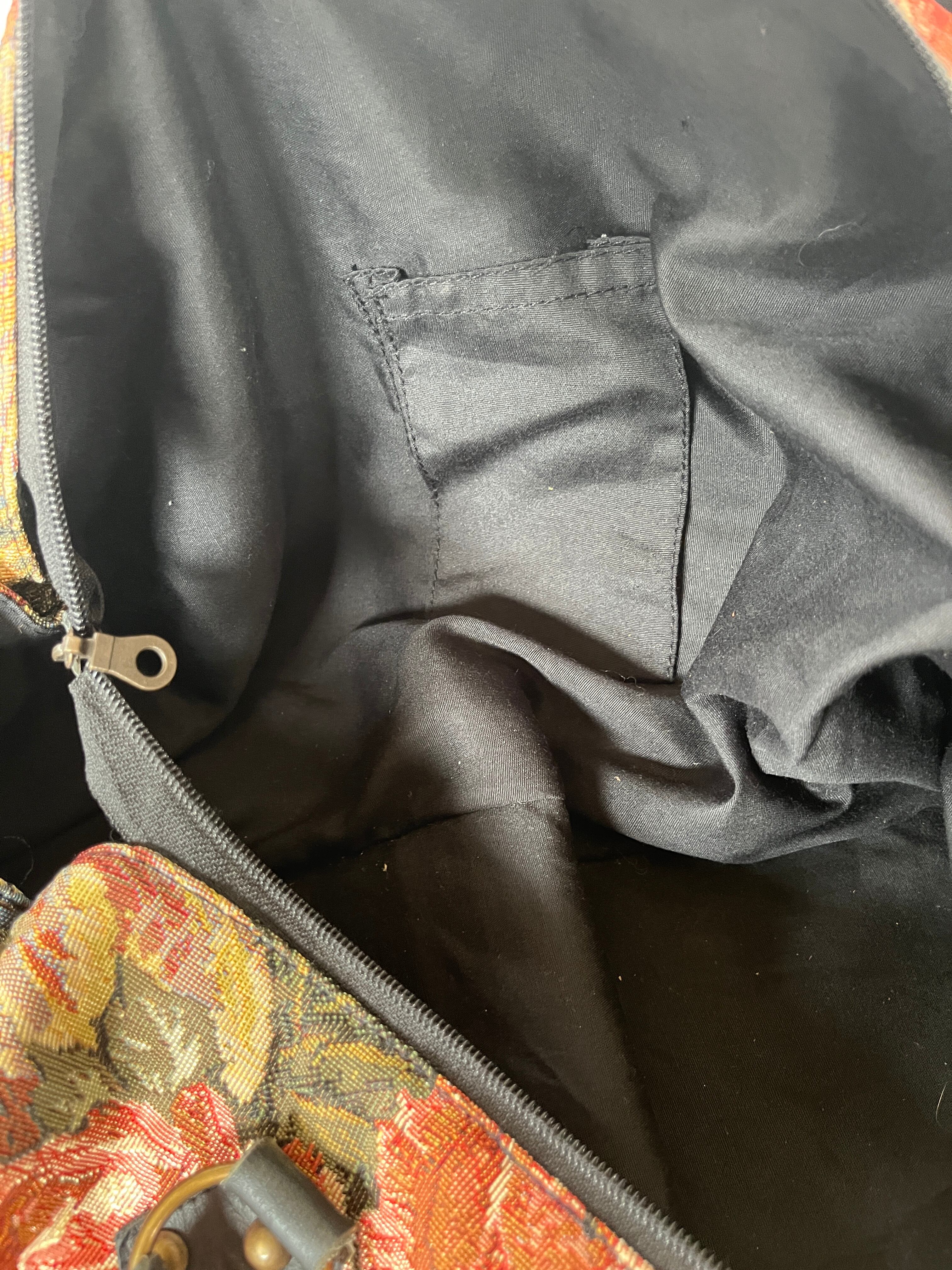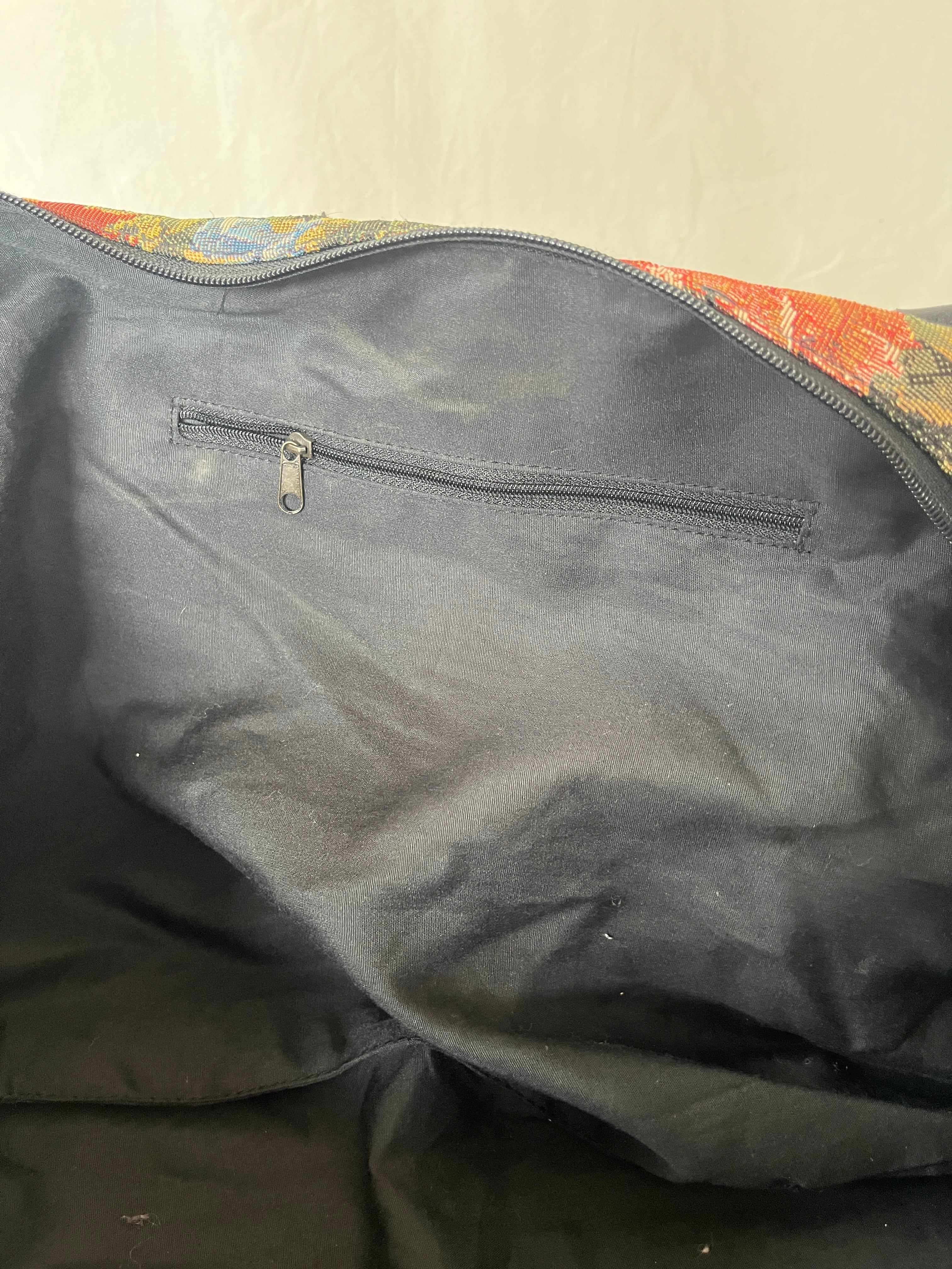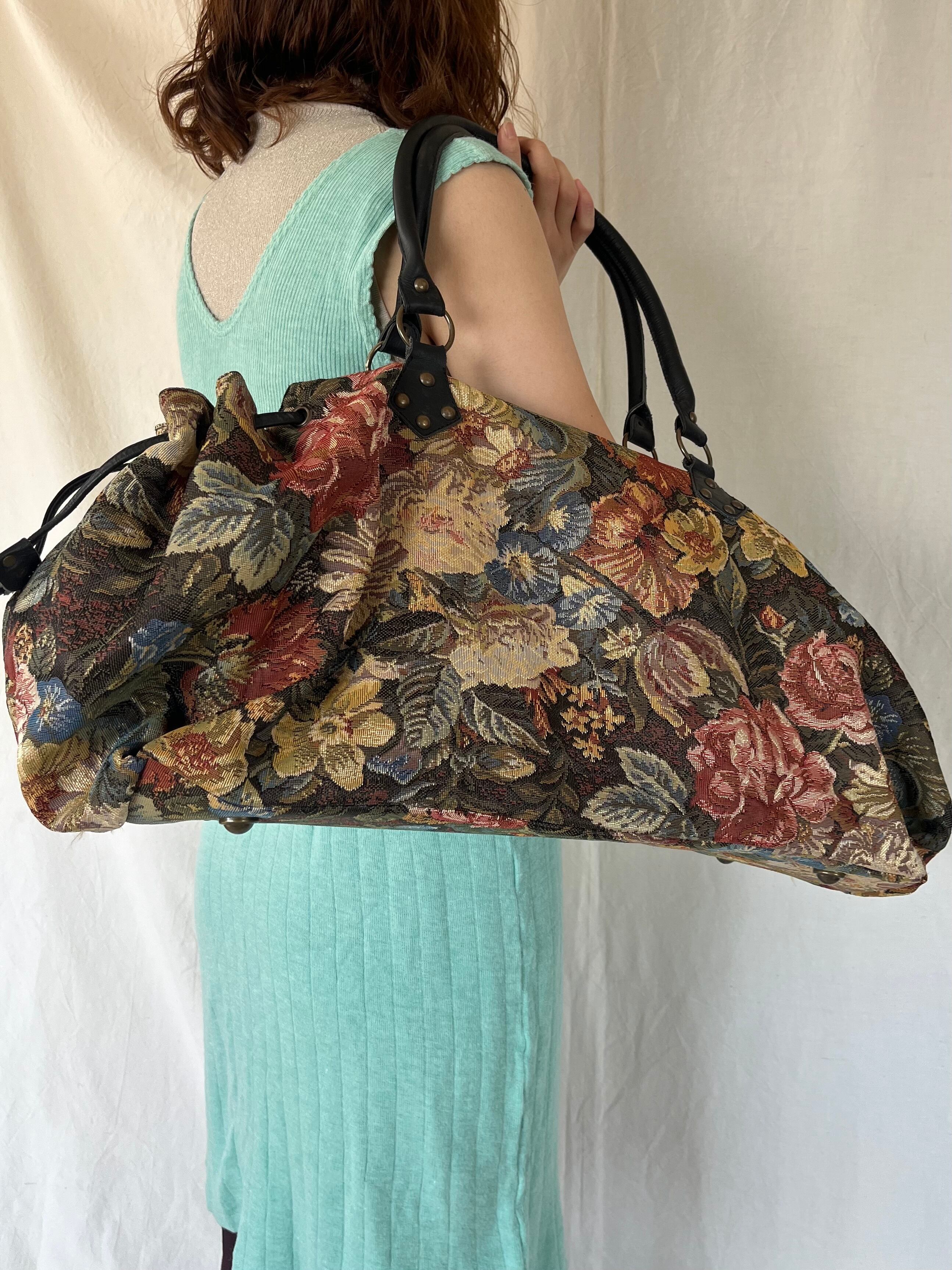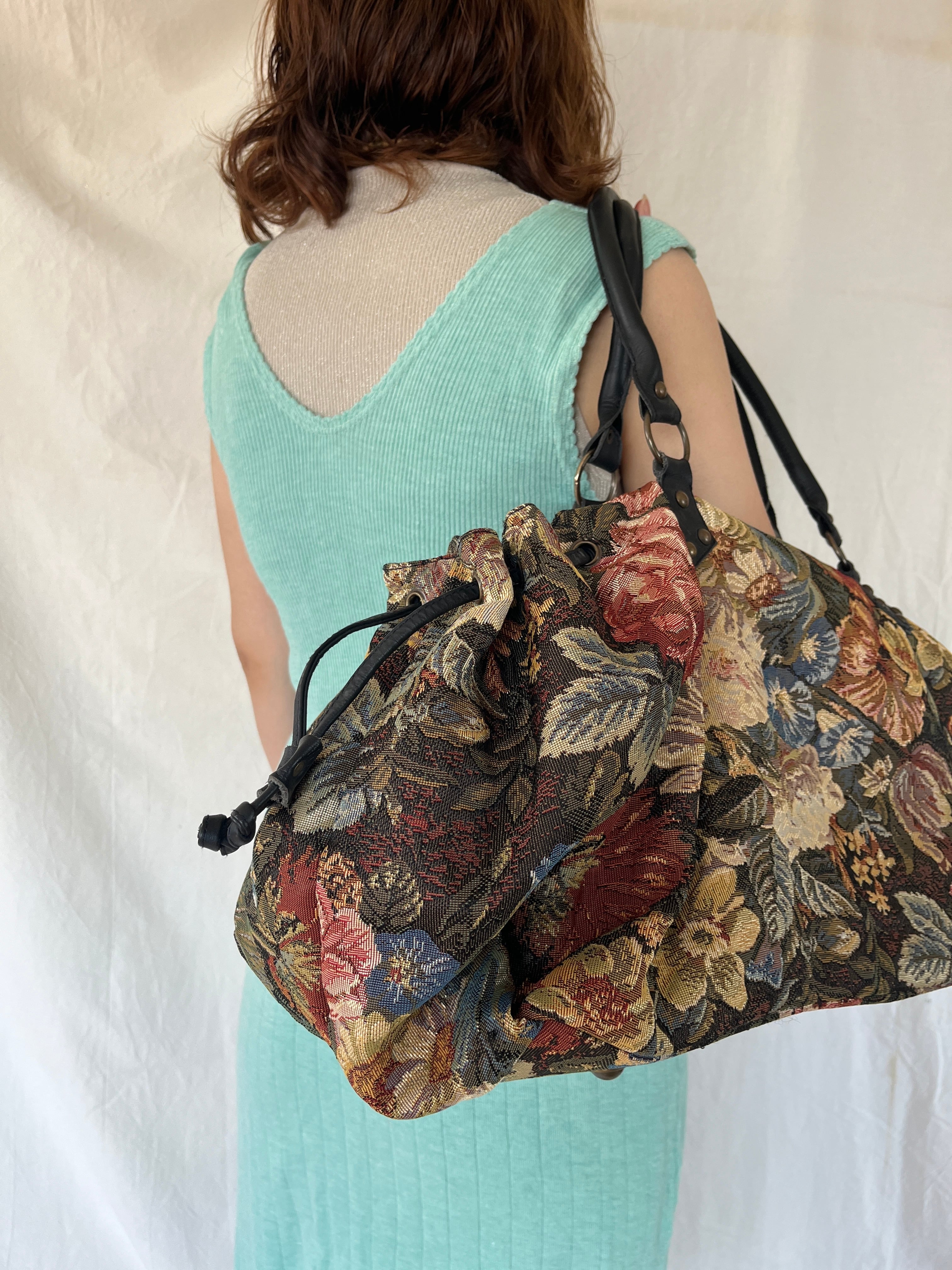 ロマンティックな花柄のゴブラン織ボストンバッグ。