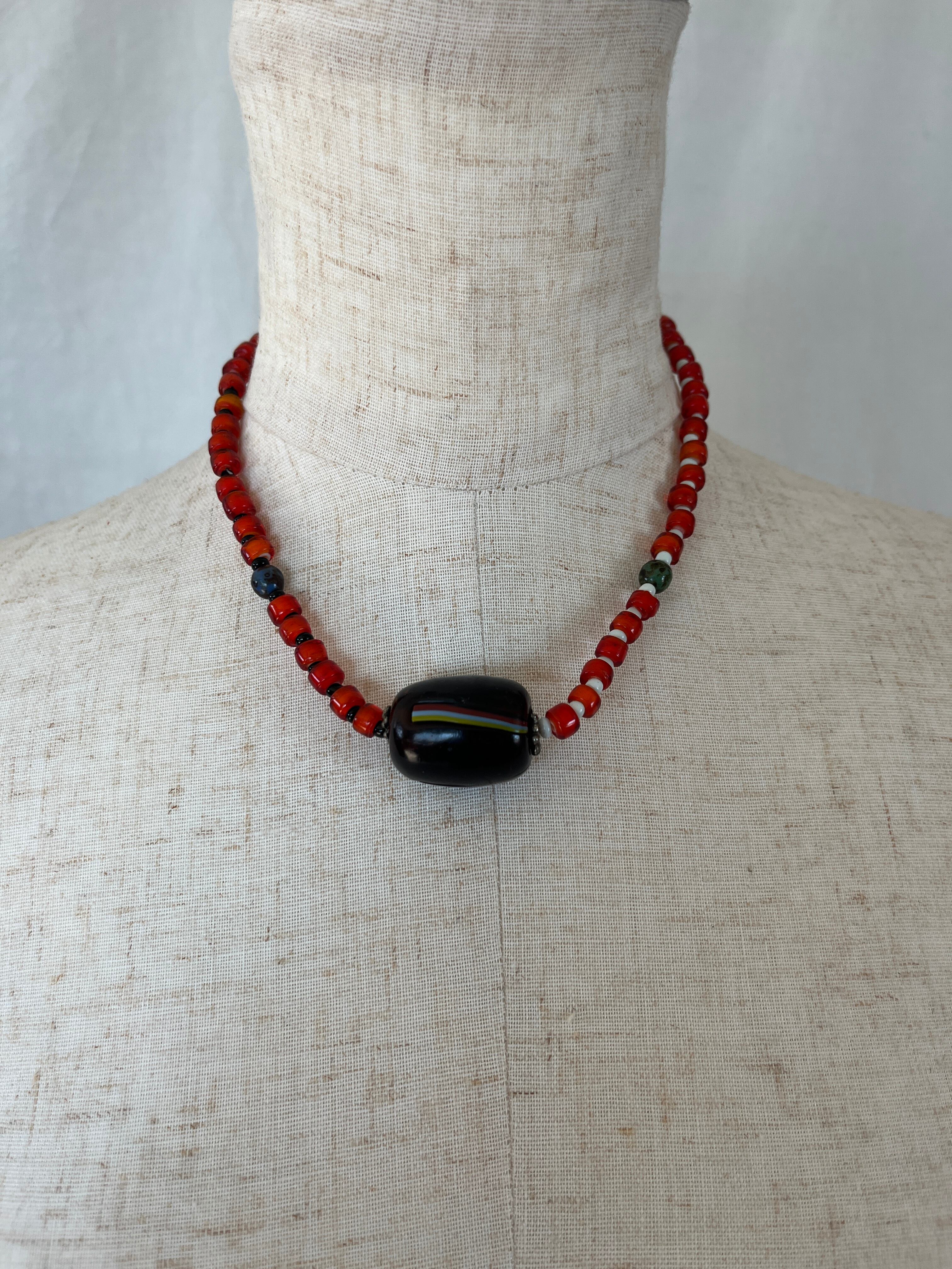 タイ、チェンマイの旅で出会った古いグラスビーズでネックレスをつくりました。