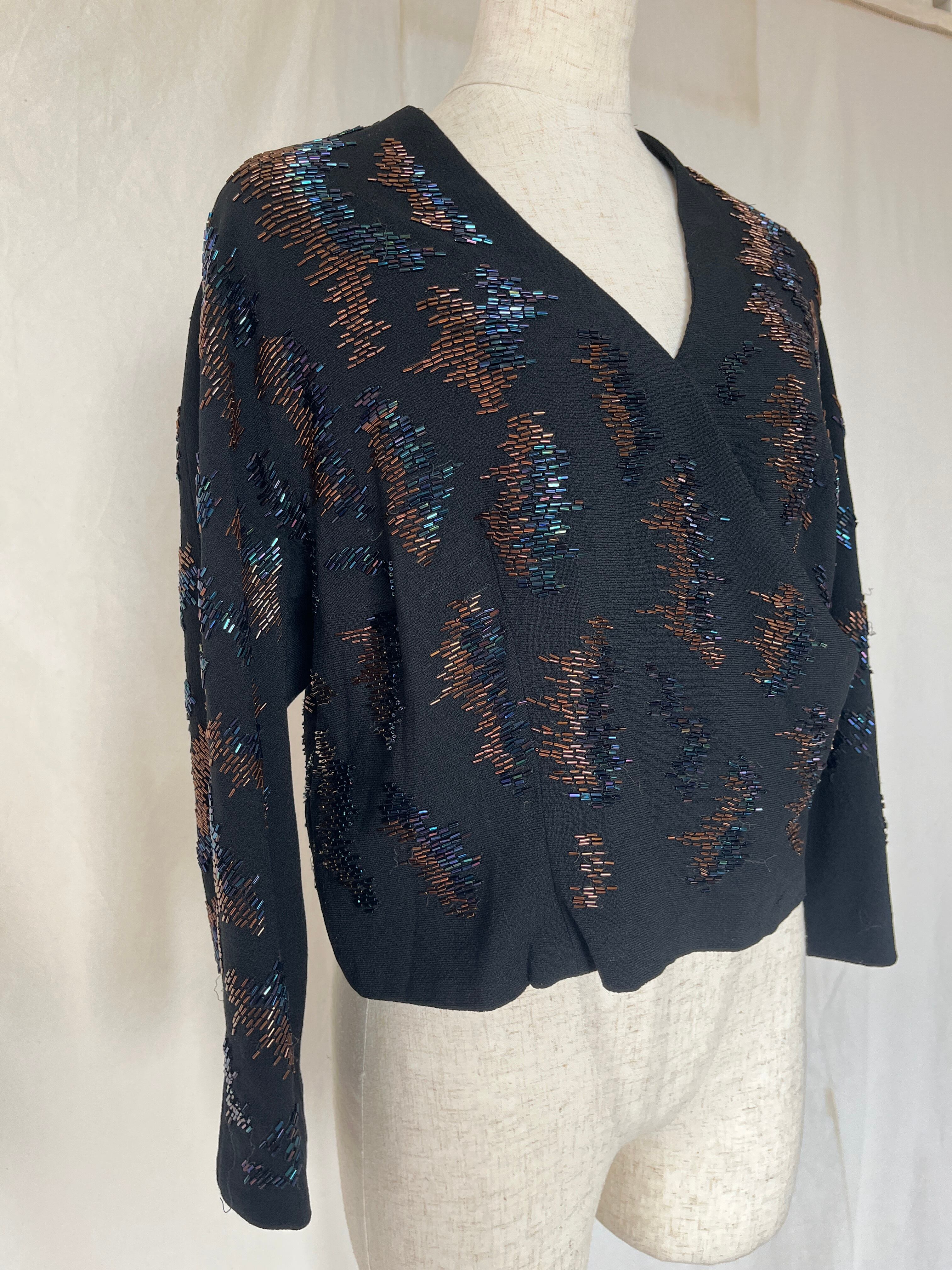 光の当たり方によりブラウン&ネイビーのビーズが上品に煌めき様々な表情を見せてくれますよ◎