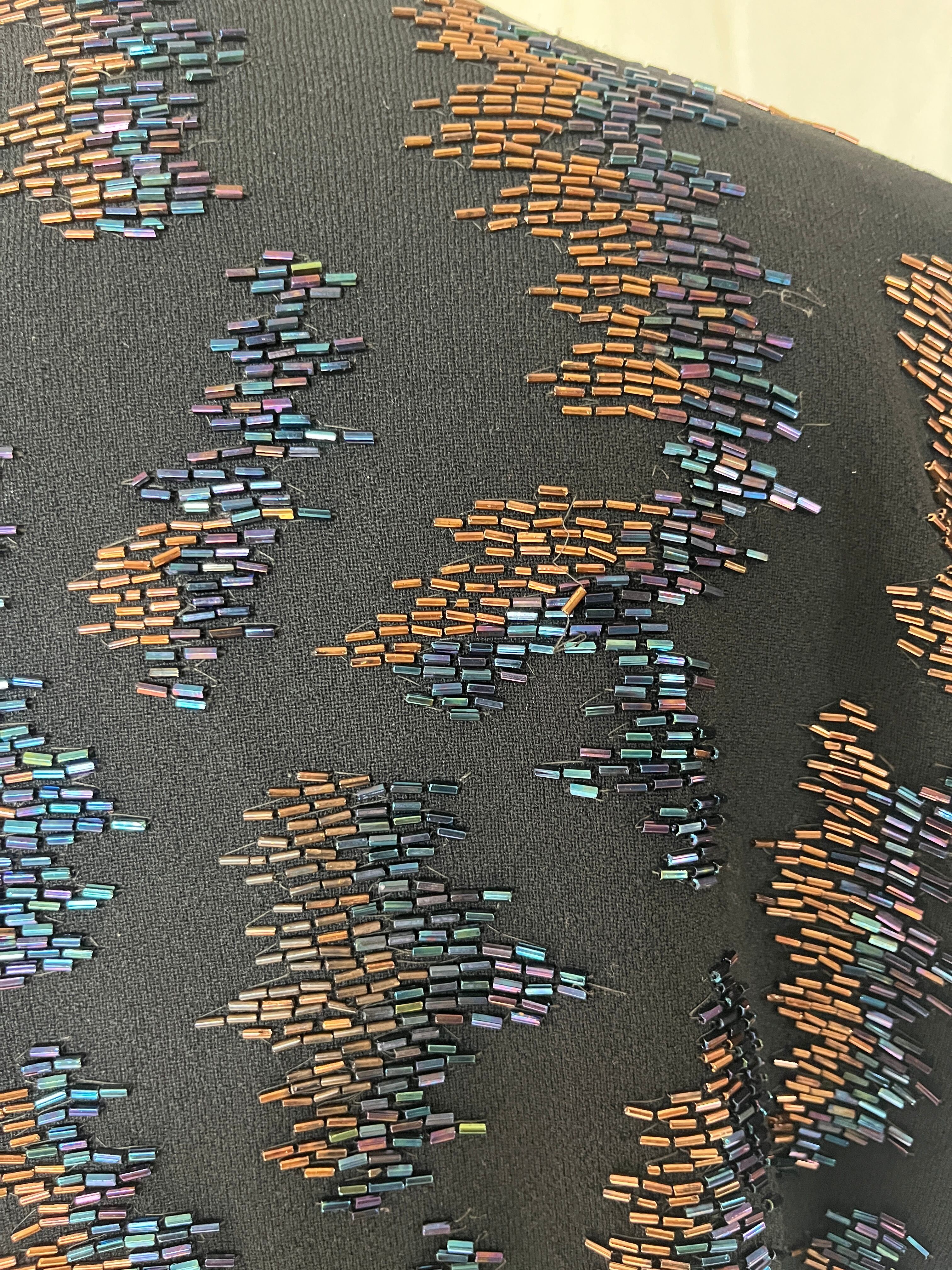 ビーズ刺繍によるキラキラの柄が目に飛びこんでくる♡