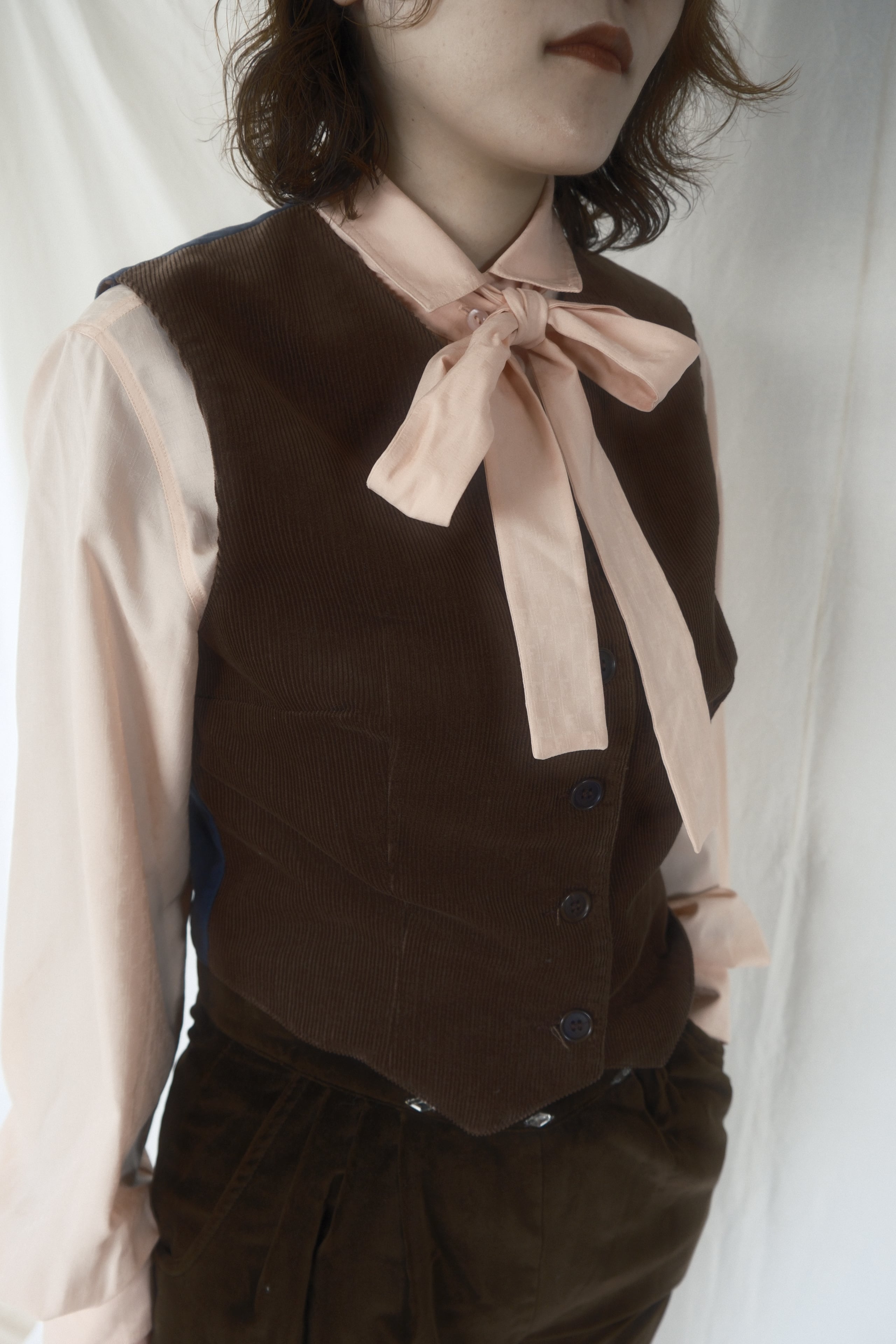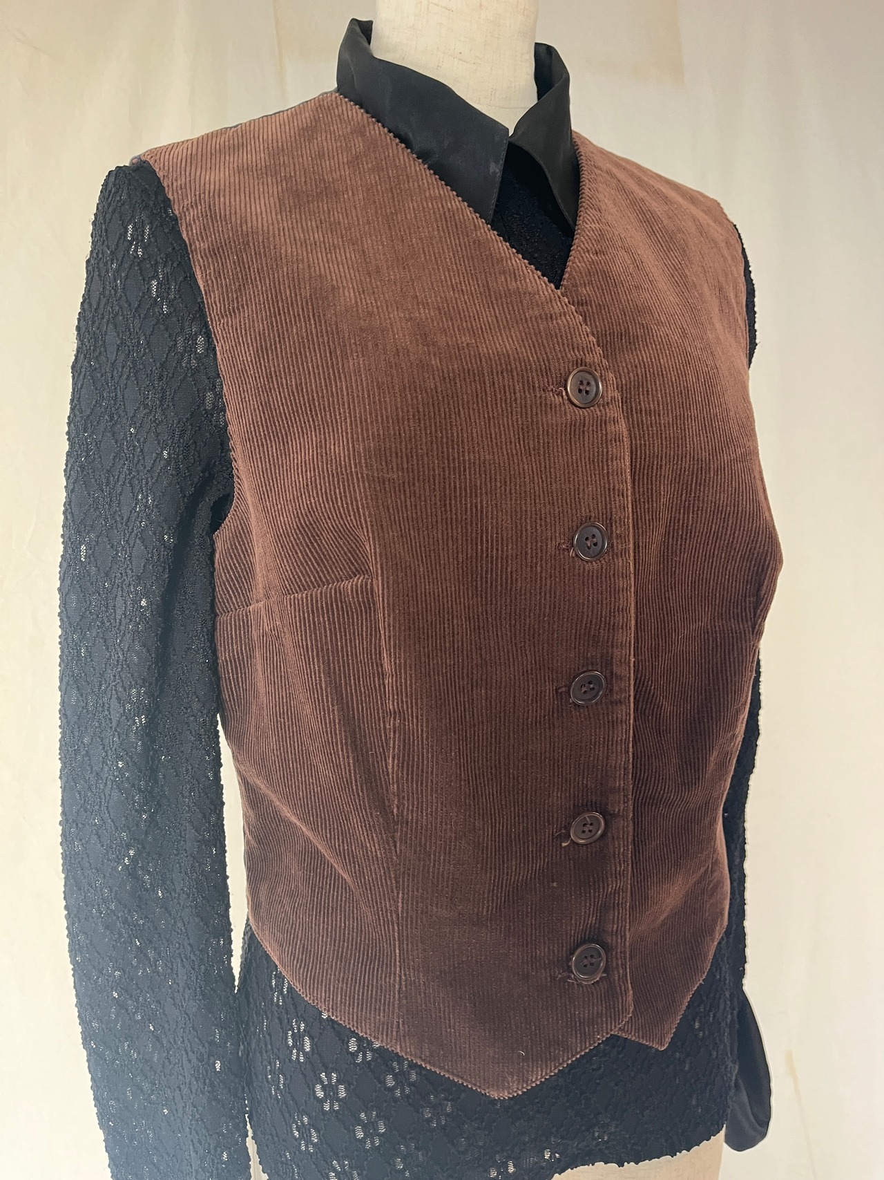 ブラウンのコーデュロイベストです。