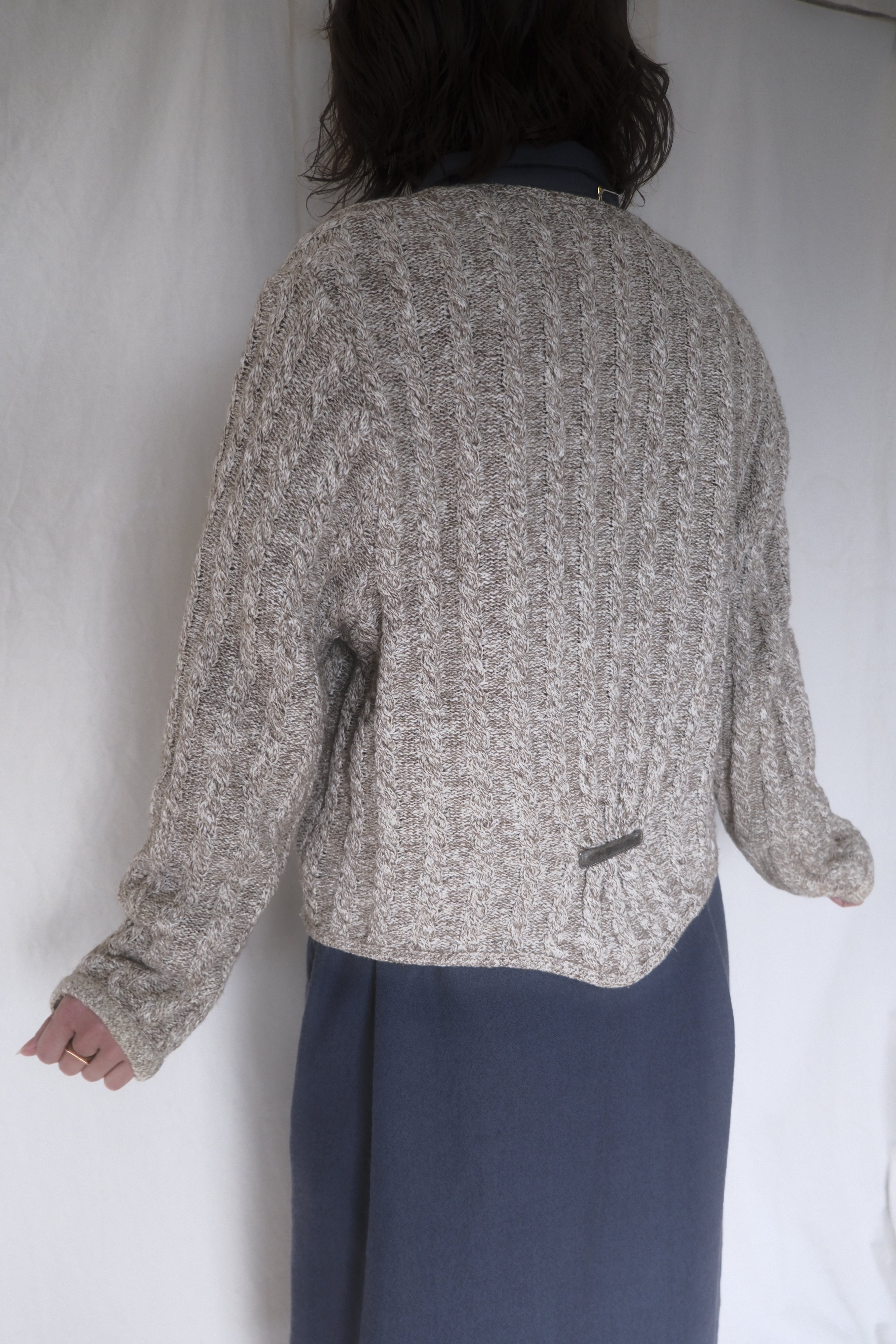 ベージュとアイボリーがミックスされたオートミールカラーのチロルカーディガン。