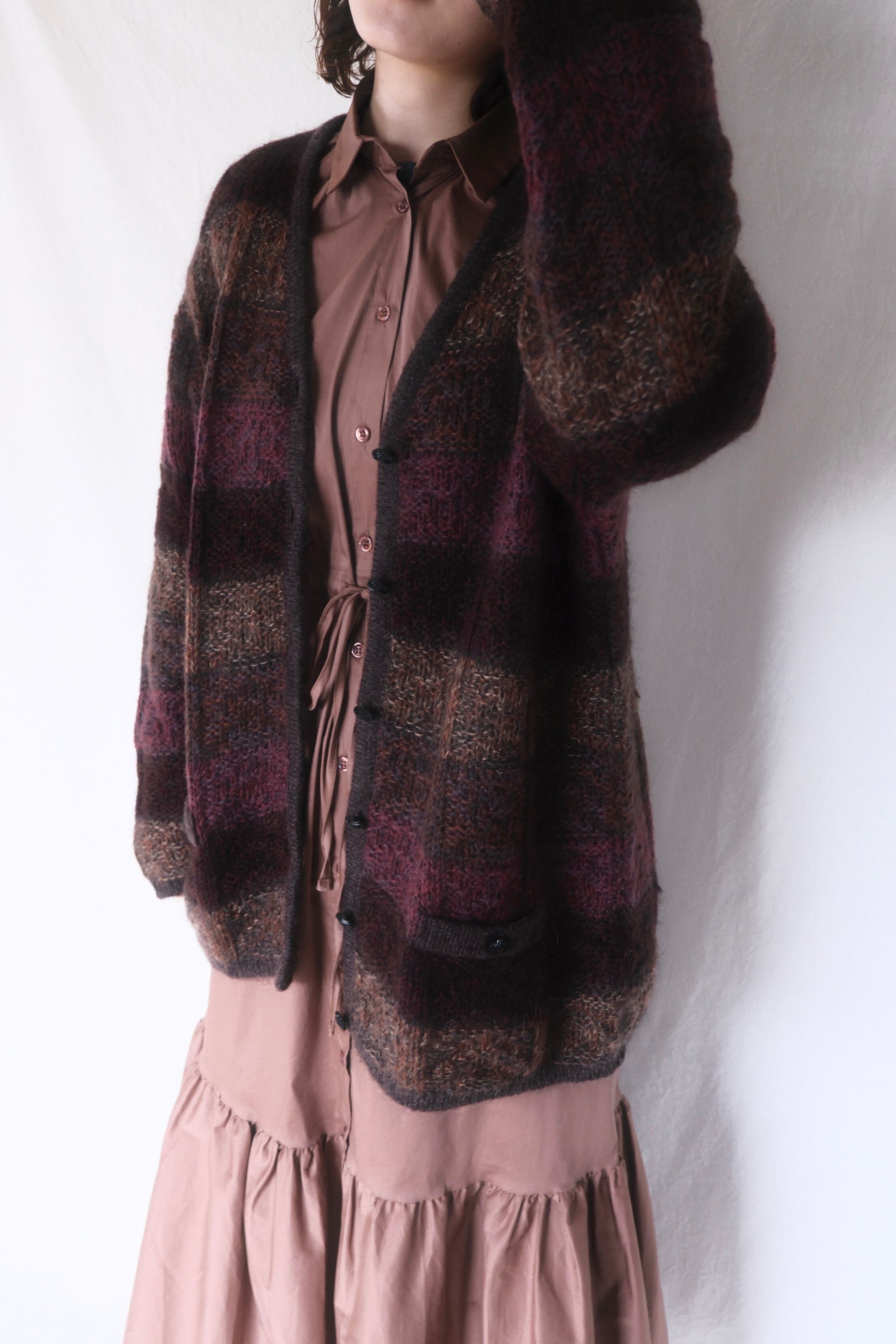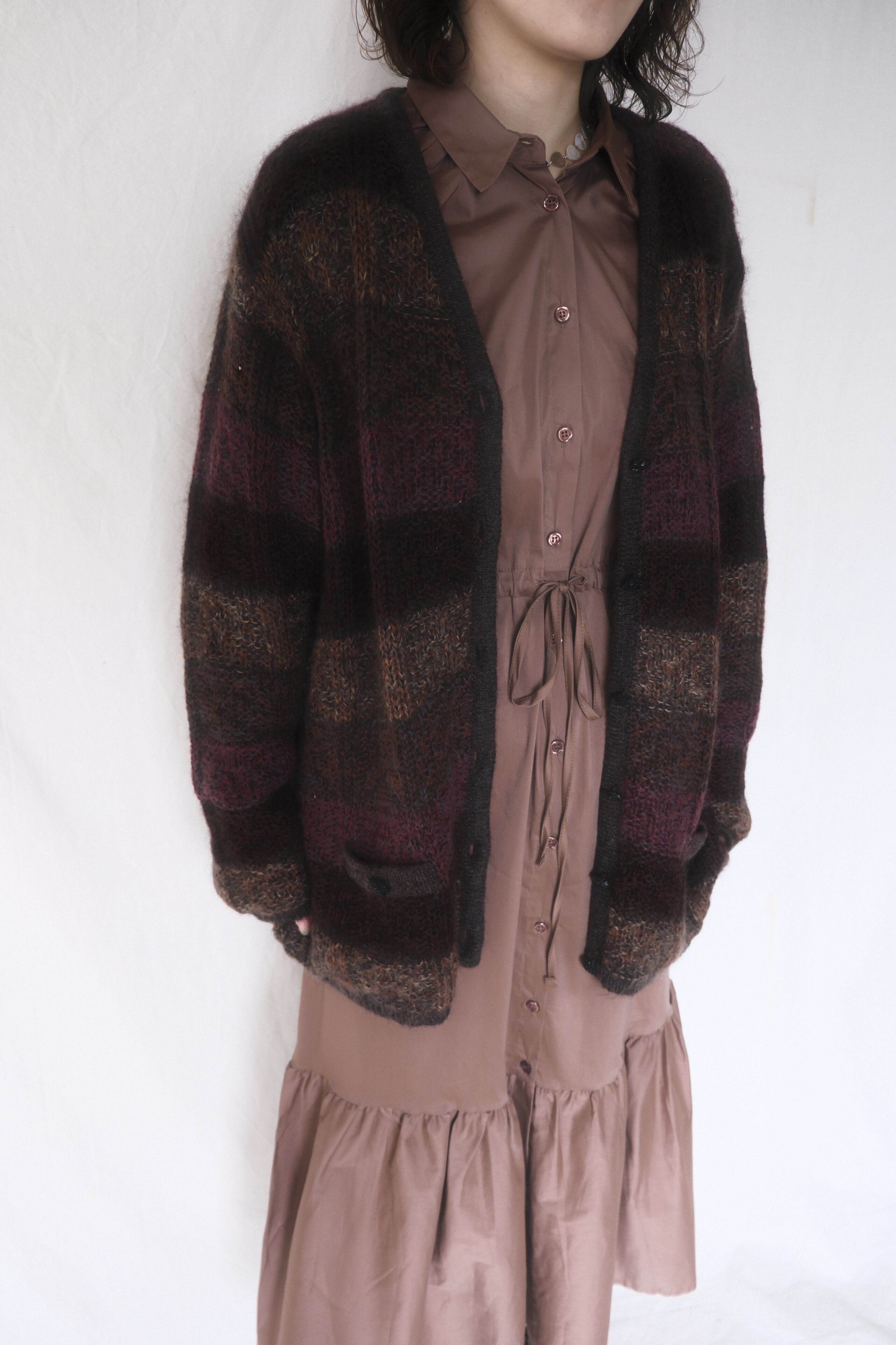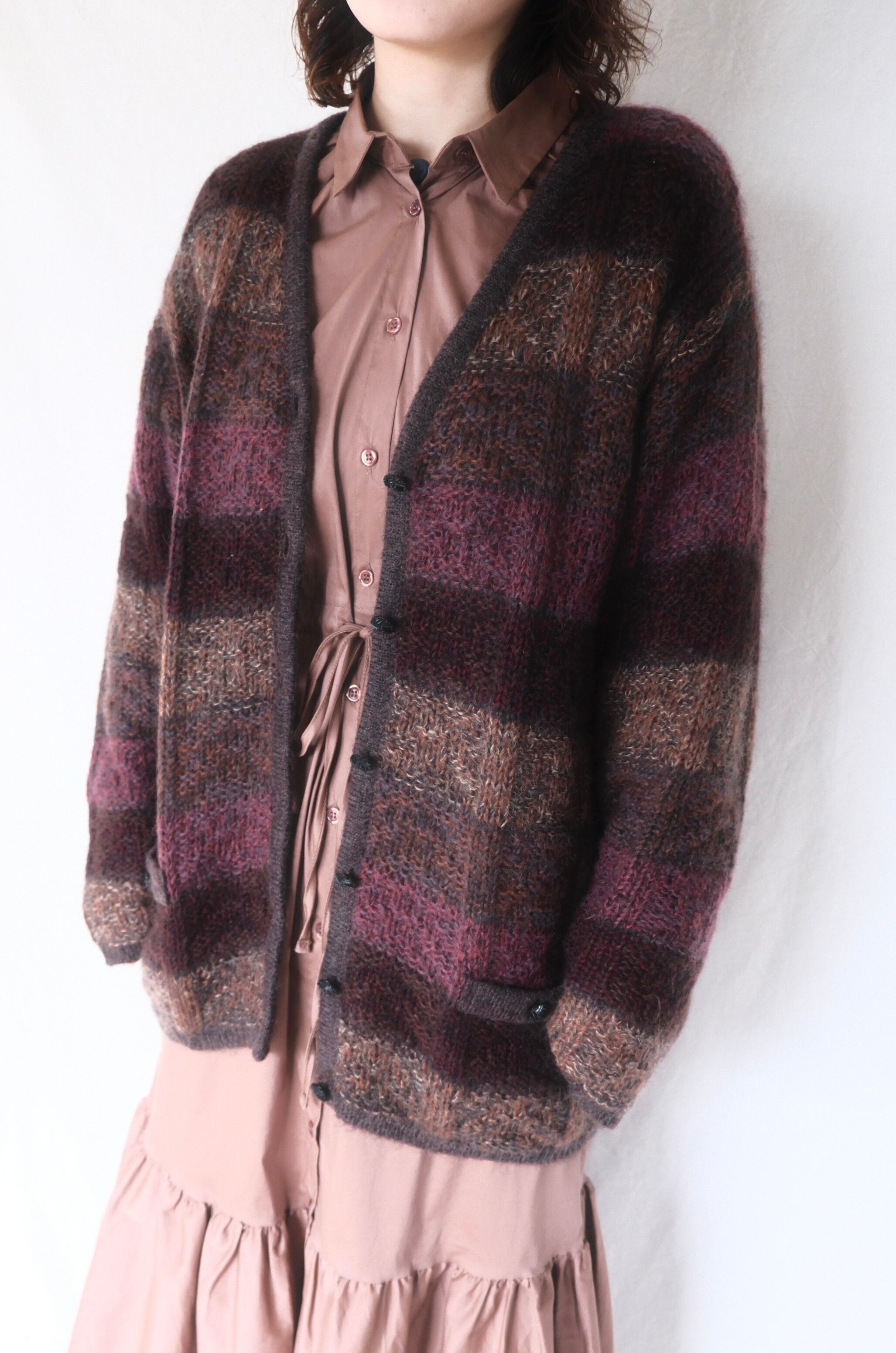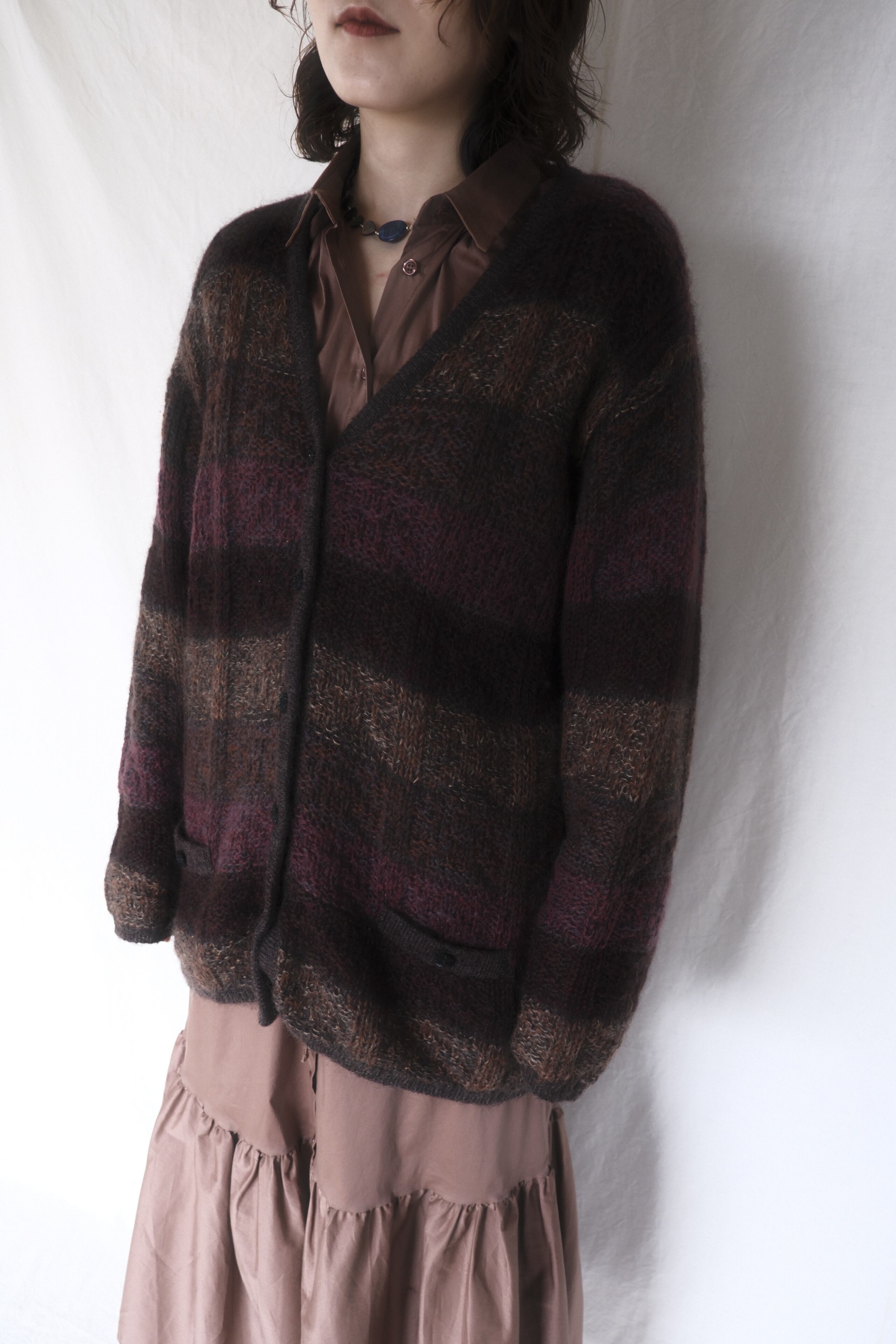 モヘア素材特有の毛足の長いふわふわとした毛並みが魅力的な、ニットカーディガンです。
