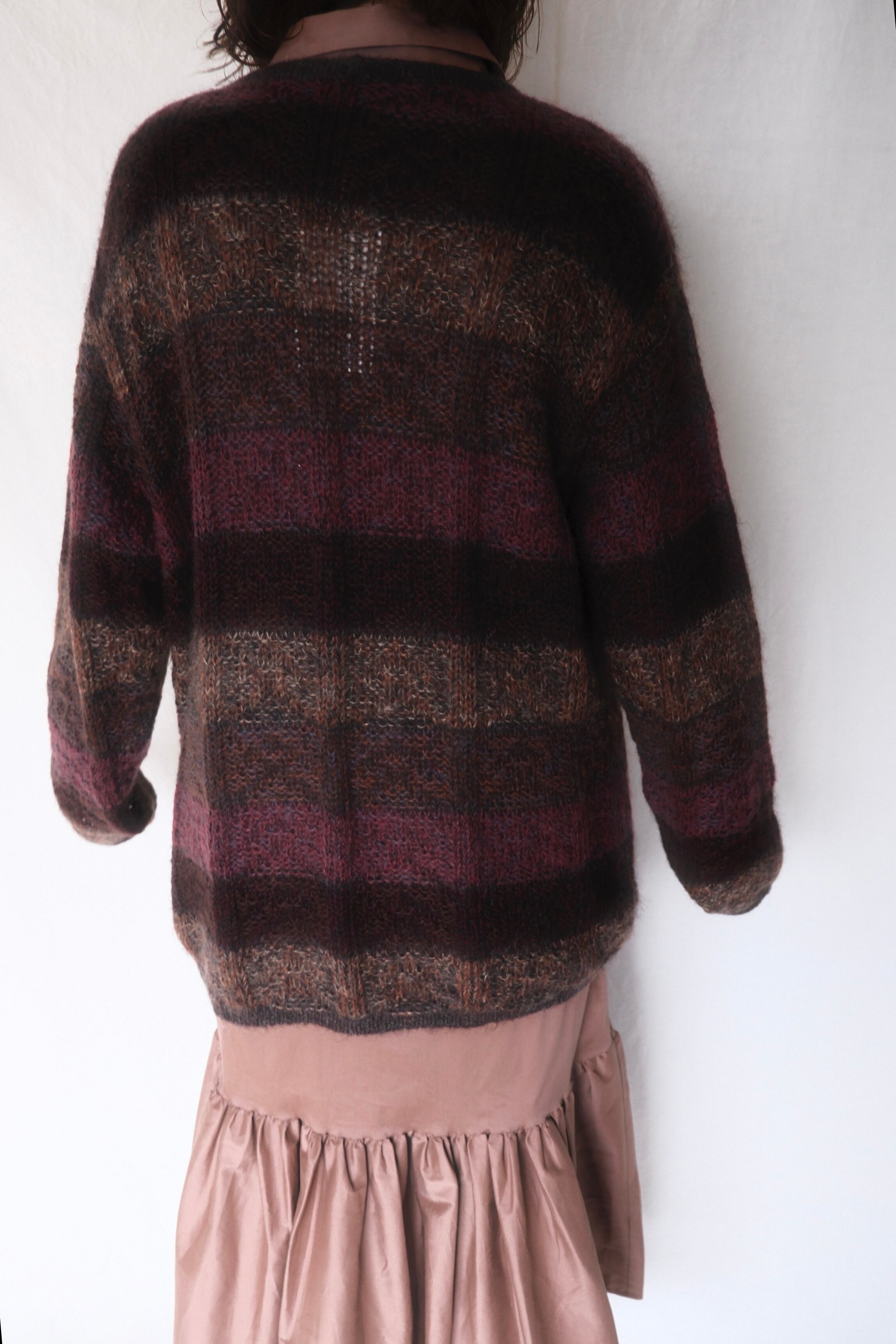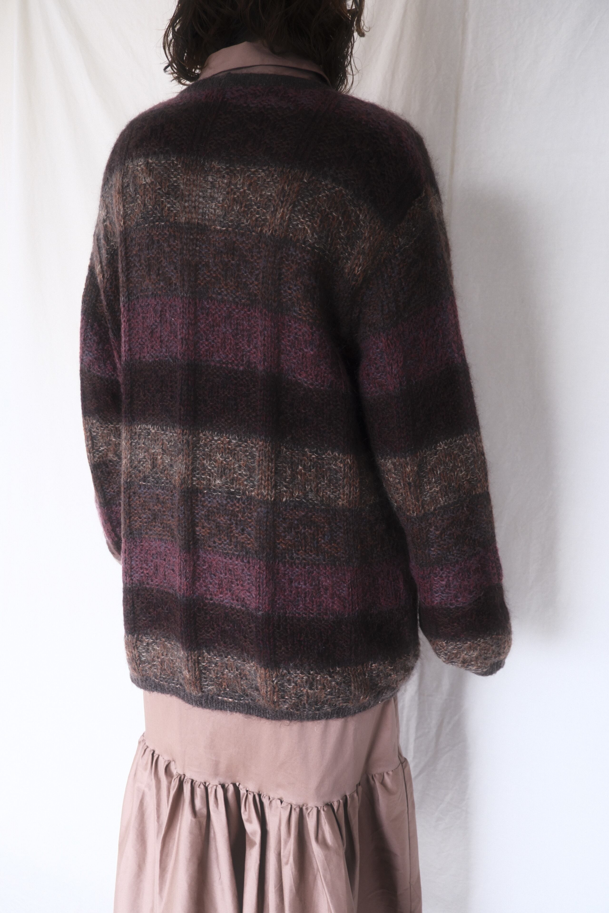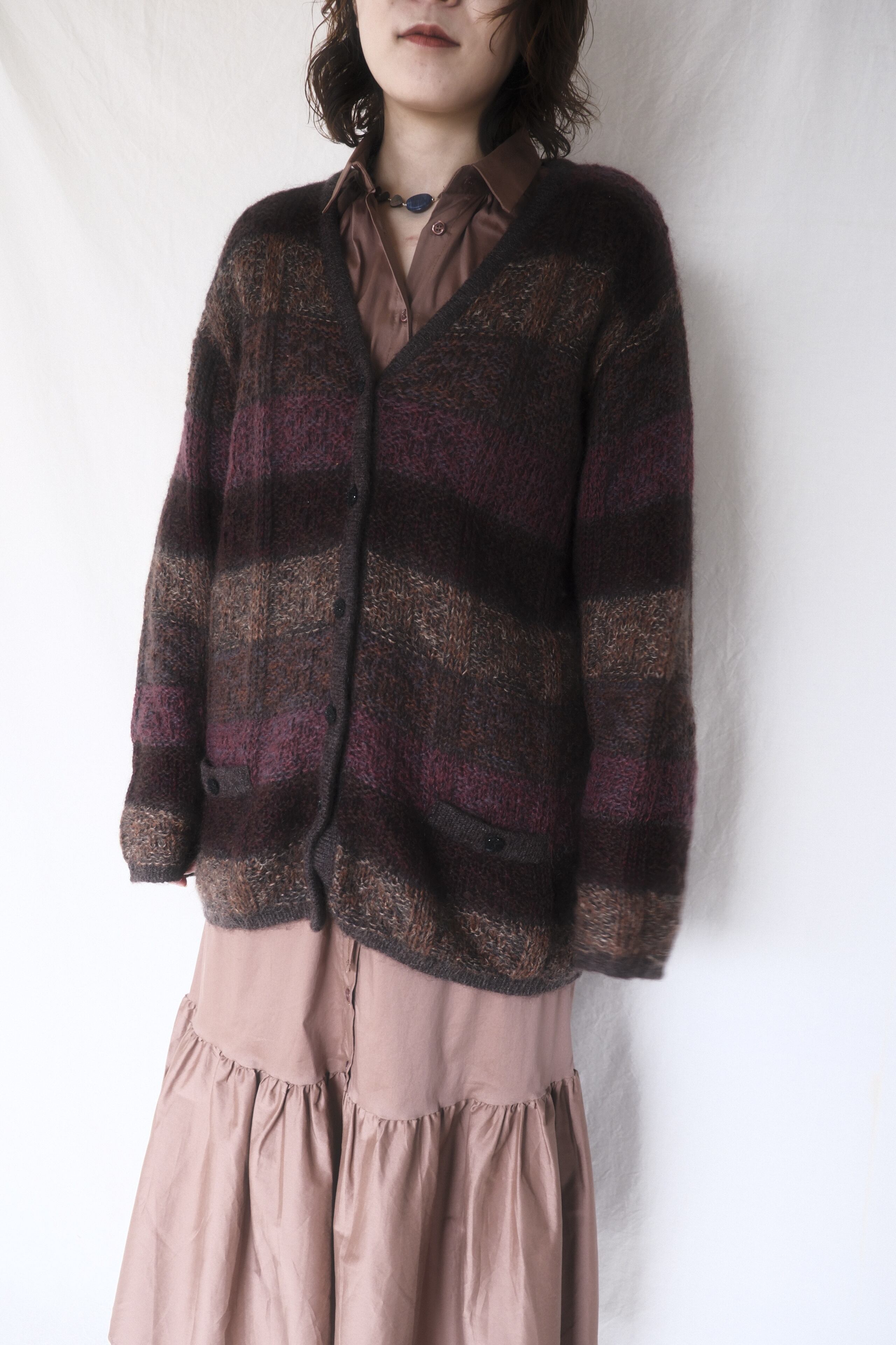 モヘア素材特有の毛足の長いふわふわとした毛並みが魅力的な、ニットカーディガンです。