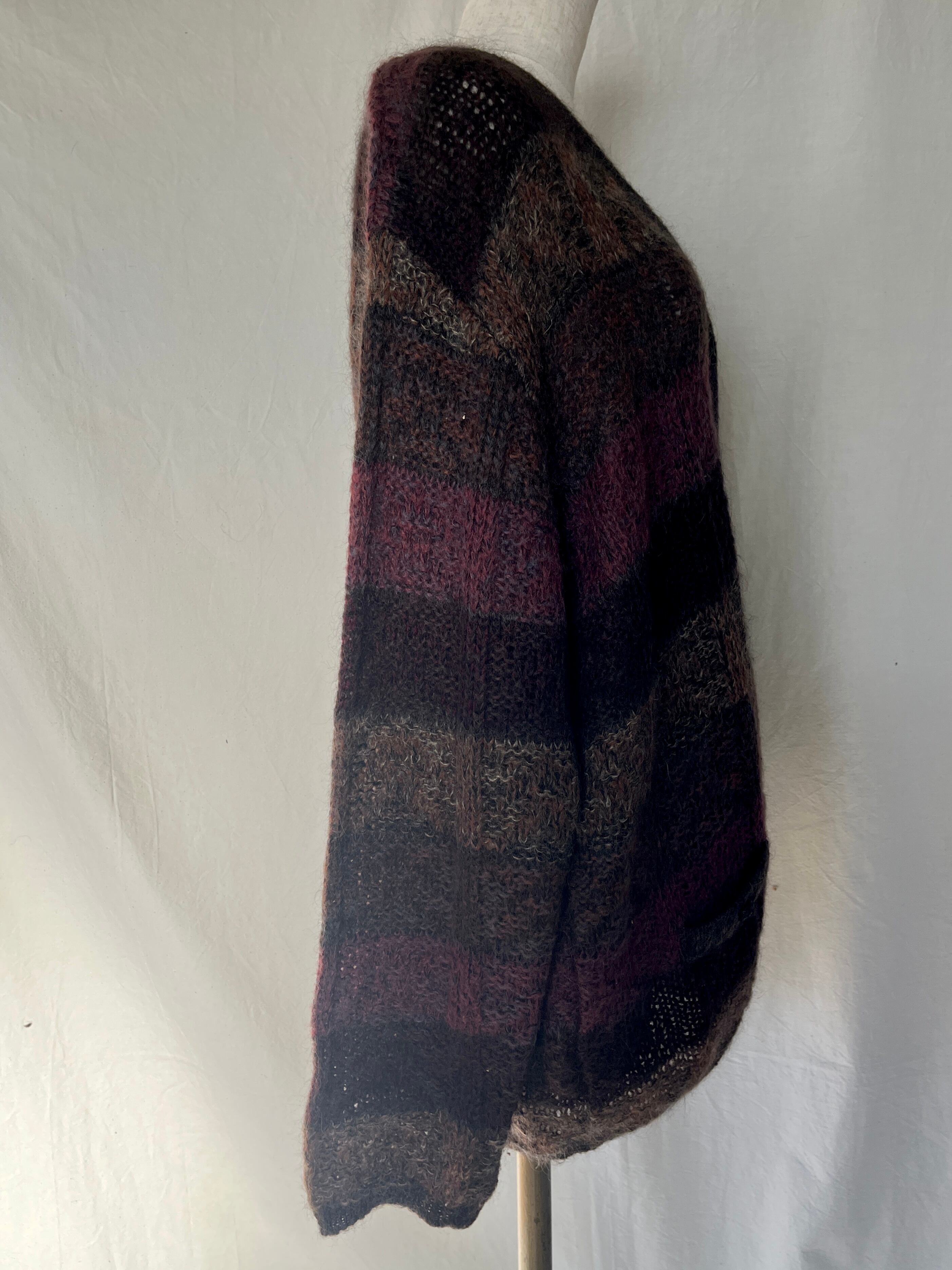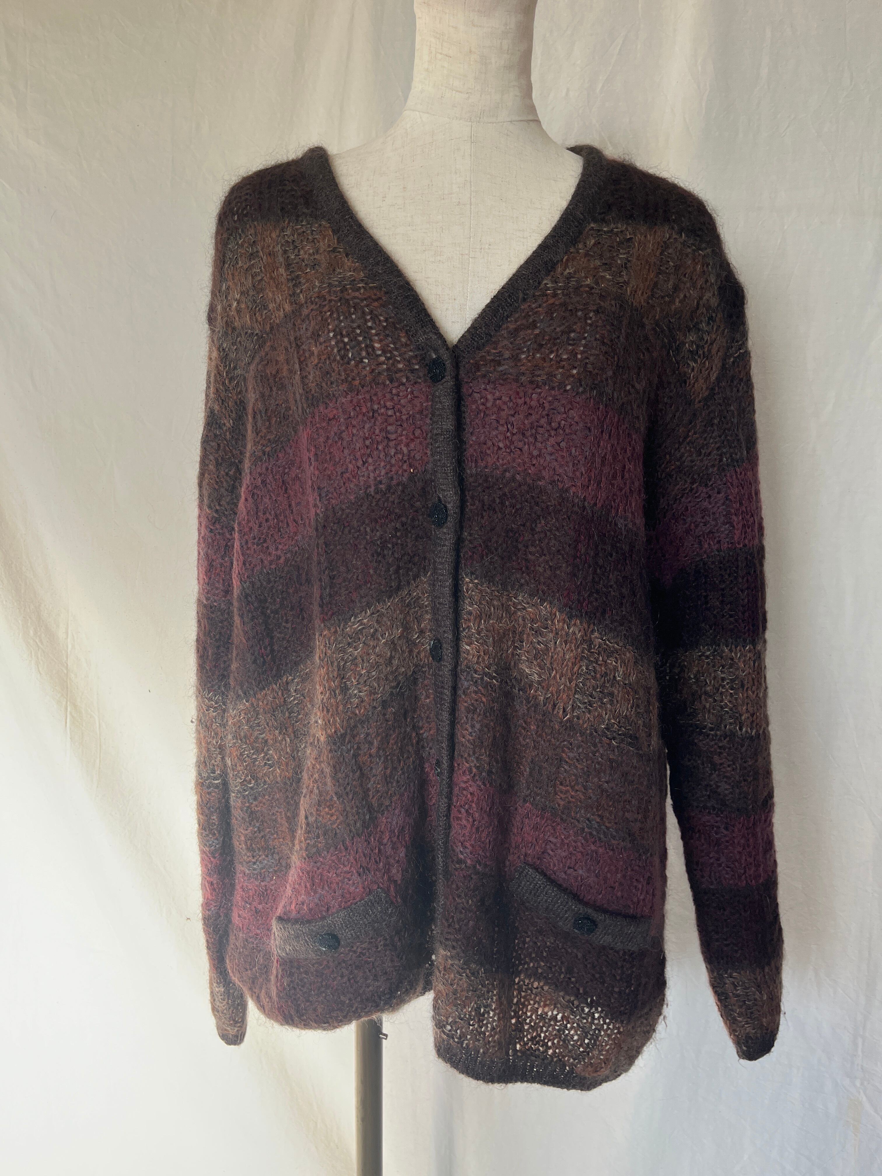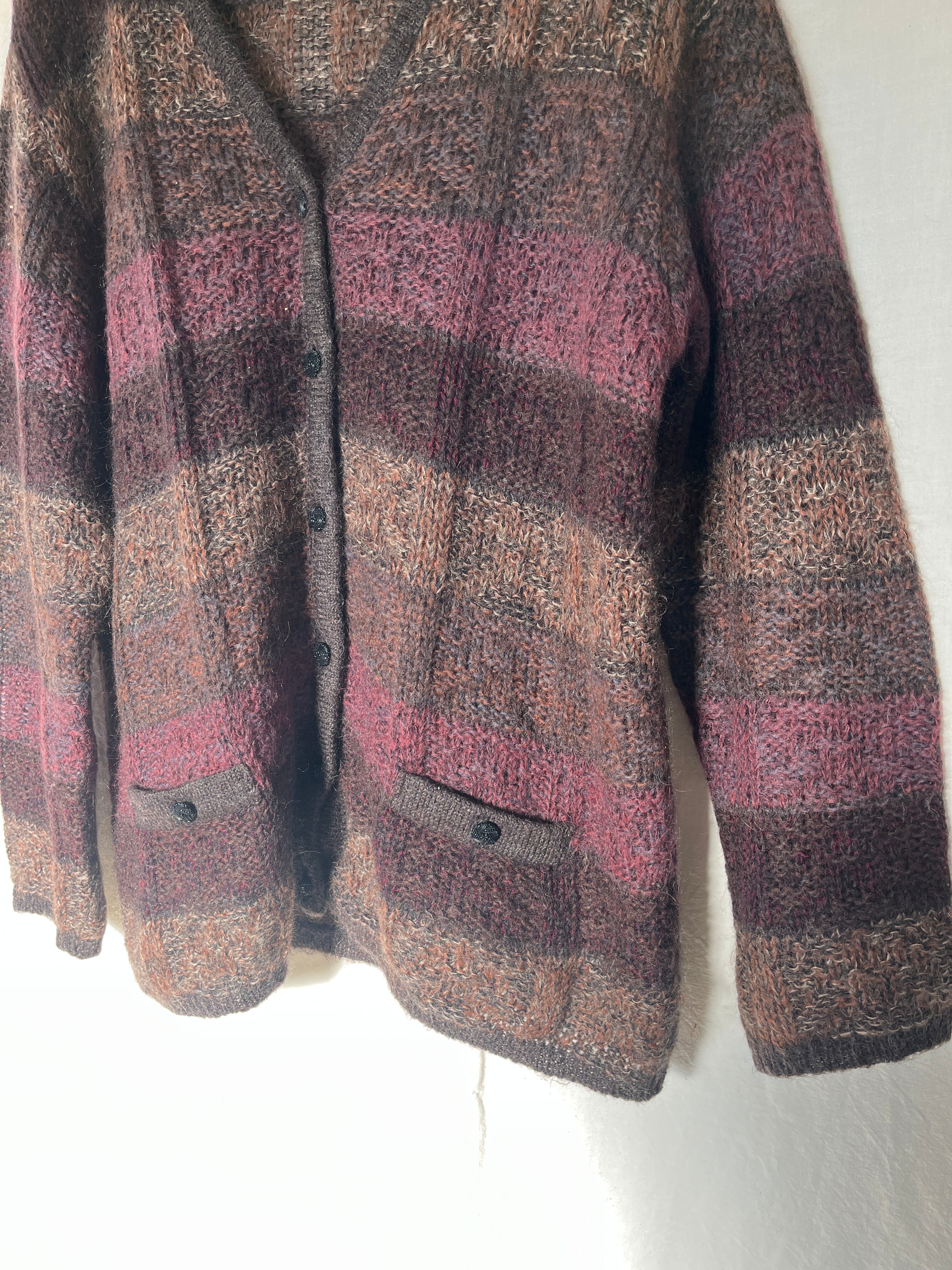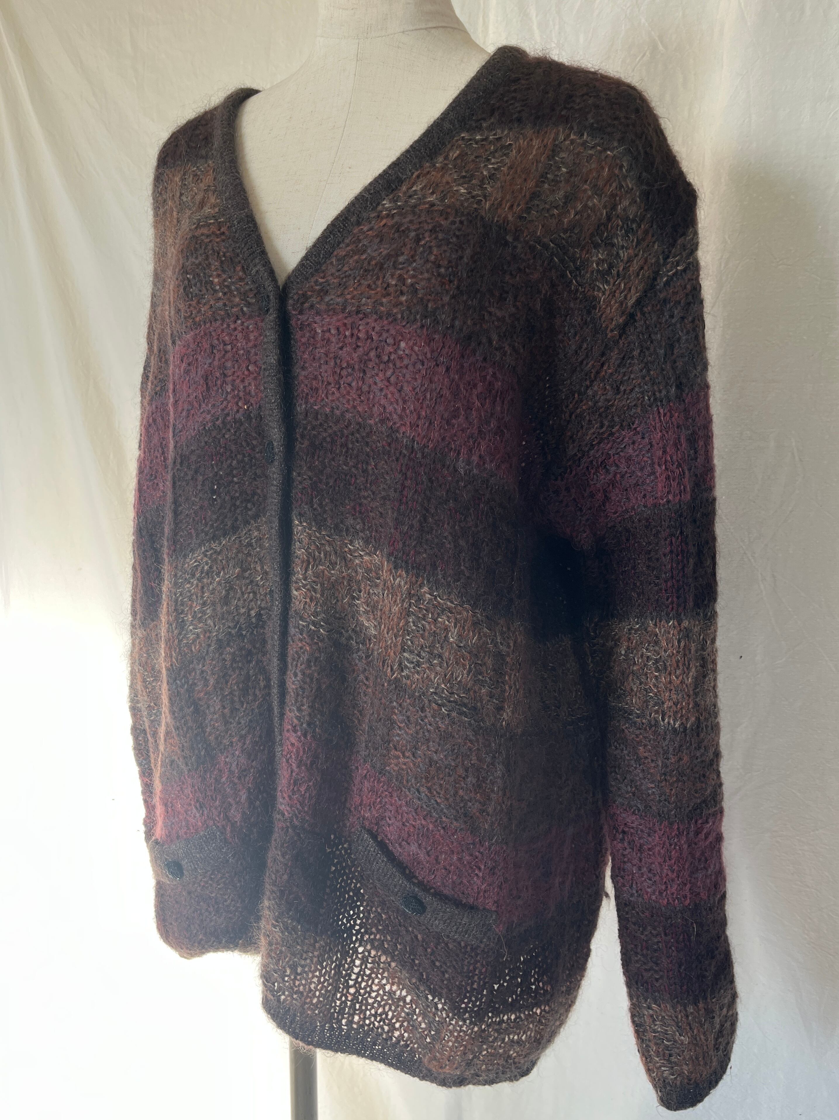 モヘア素材特有の毛足の長いふわふわとした毛並みが魅力的な、ニットカーディガンです。