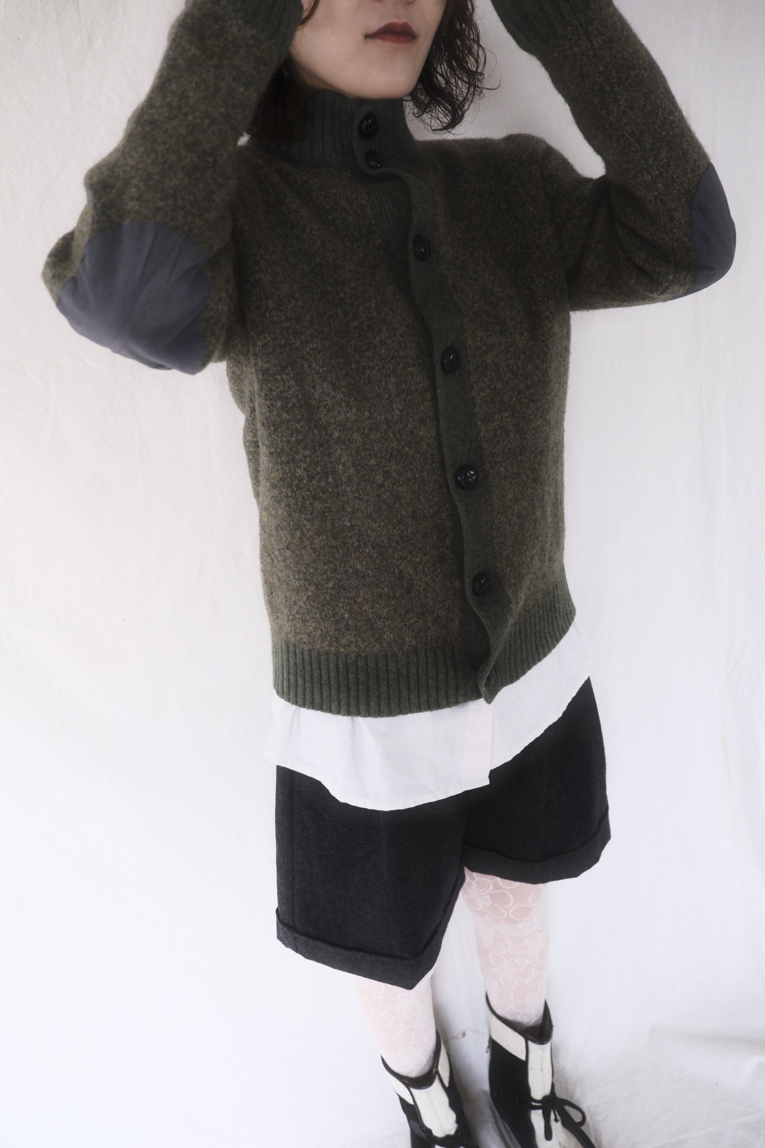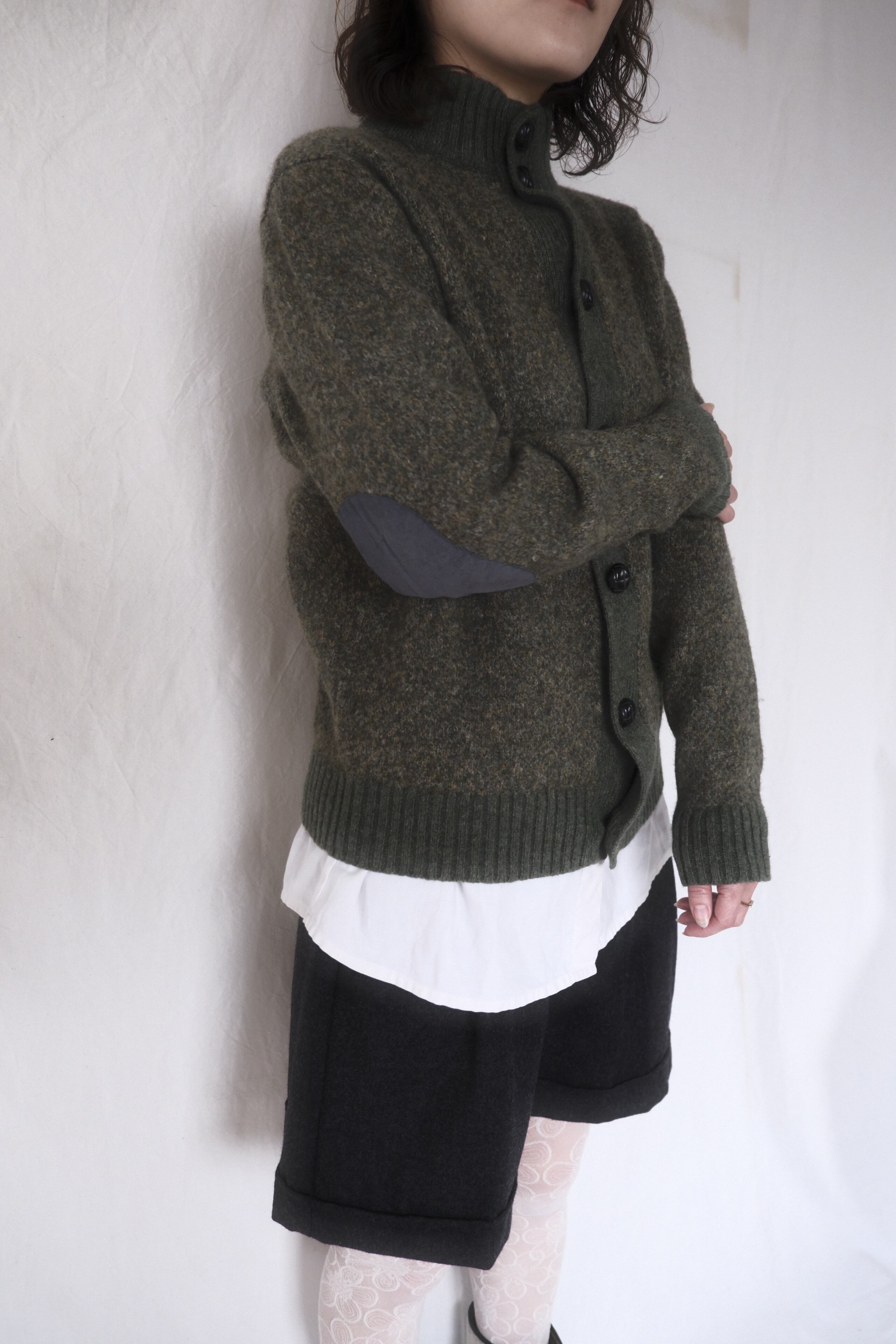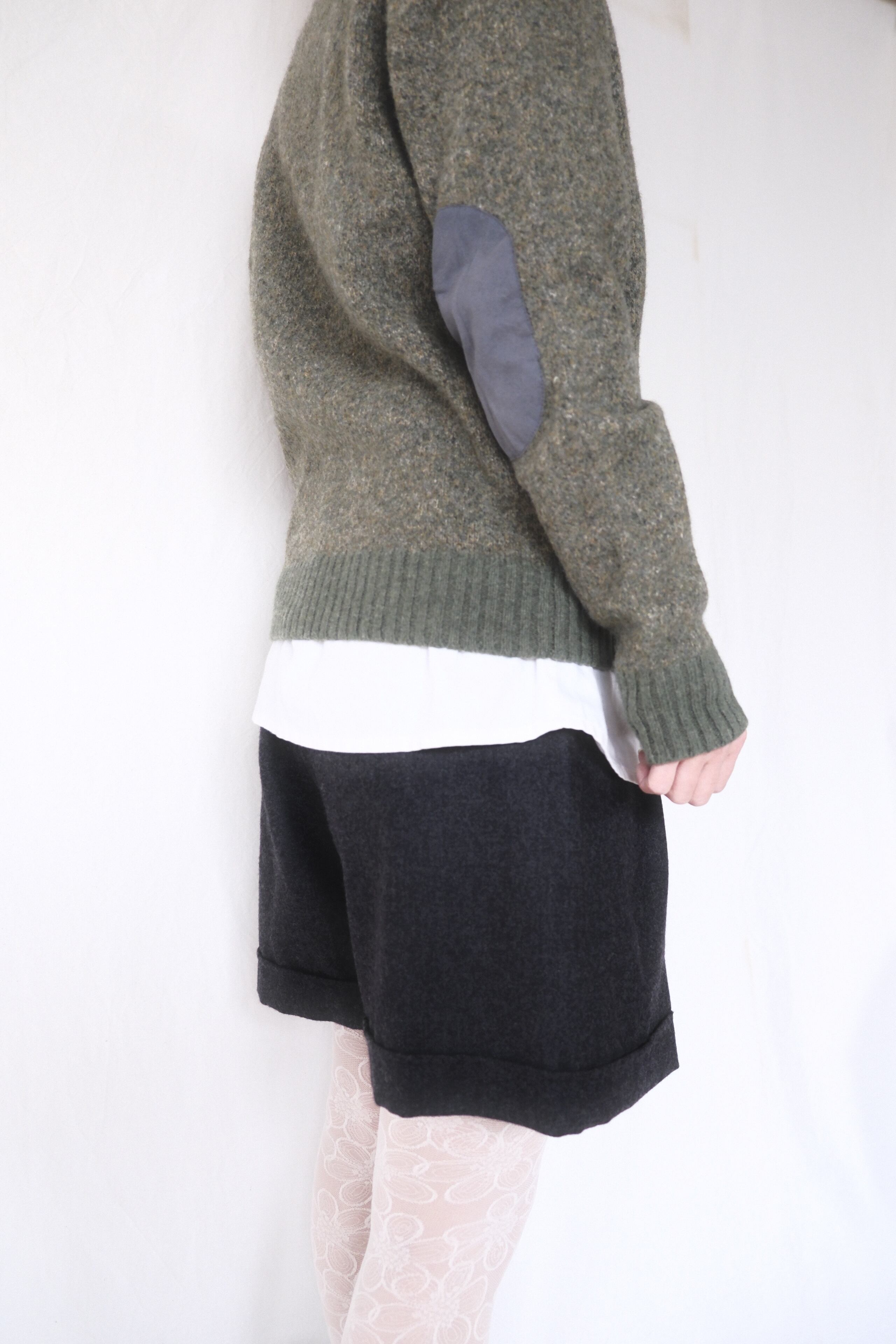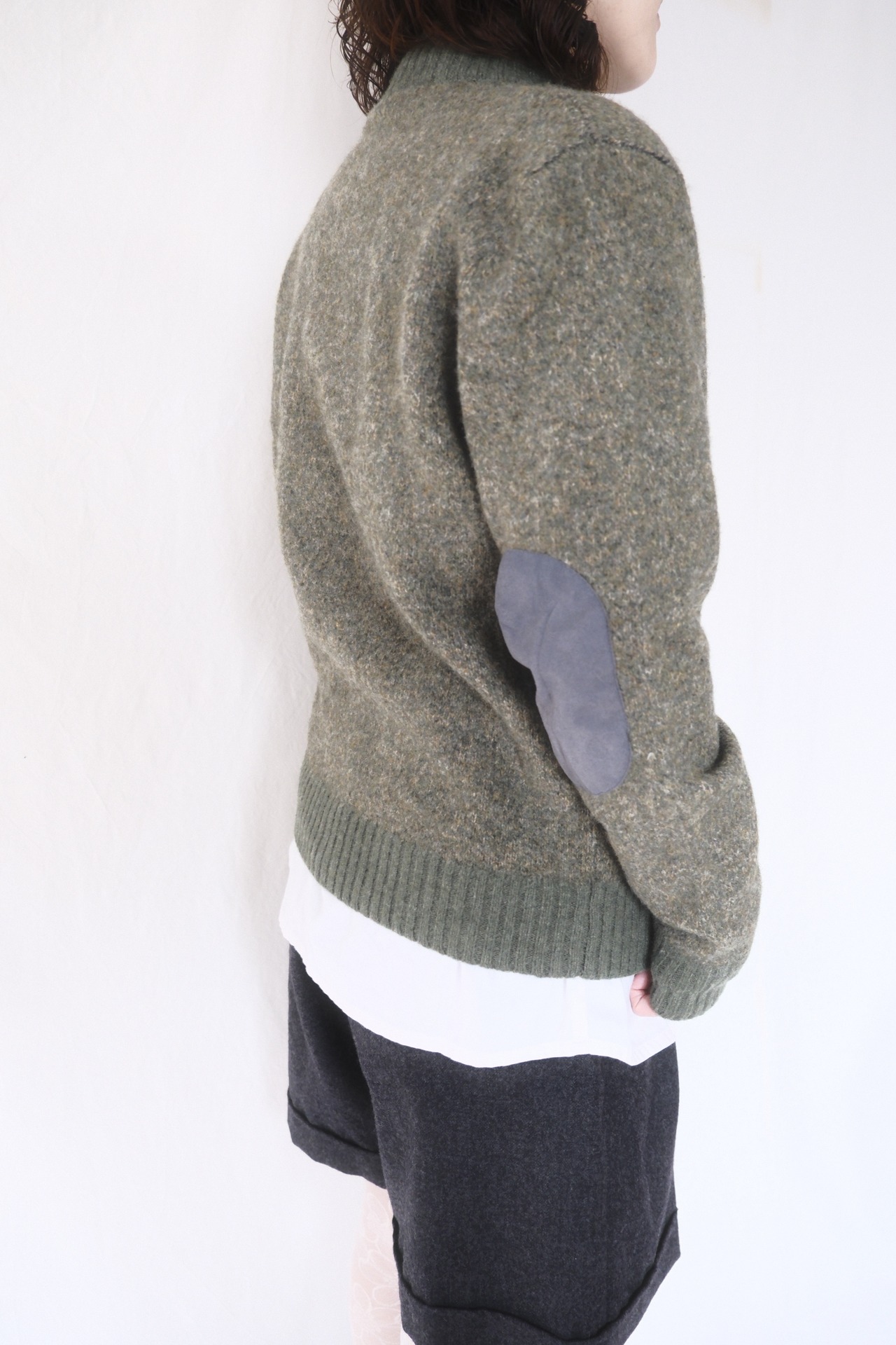 目の詰まったハイゲージの編みに肘のエルボーパッチがポイントとなっております♡