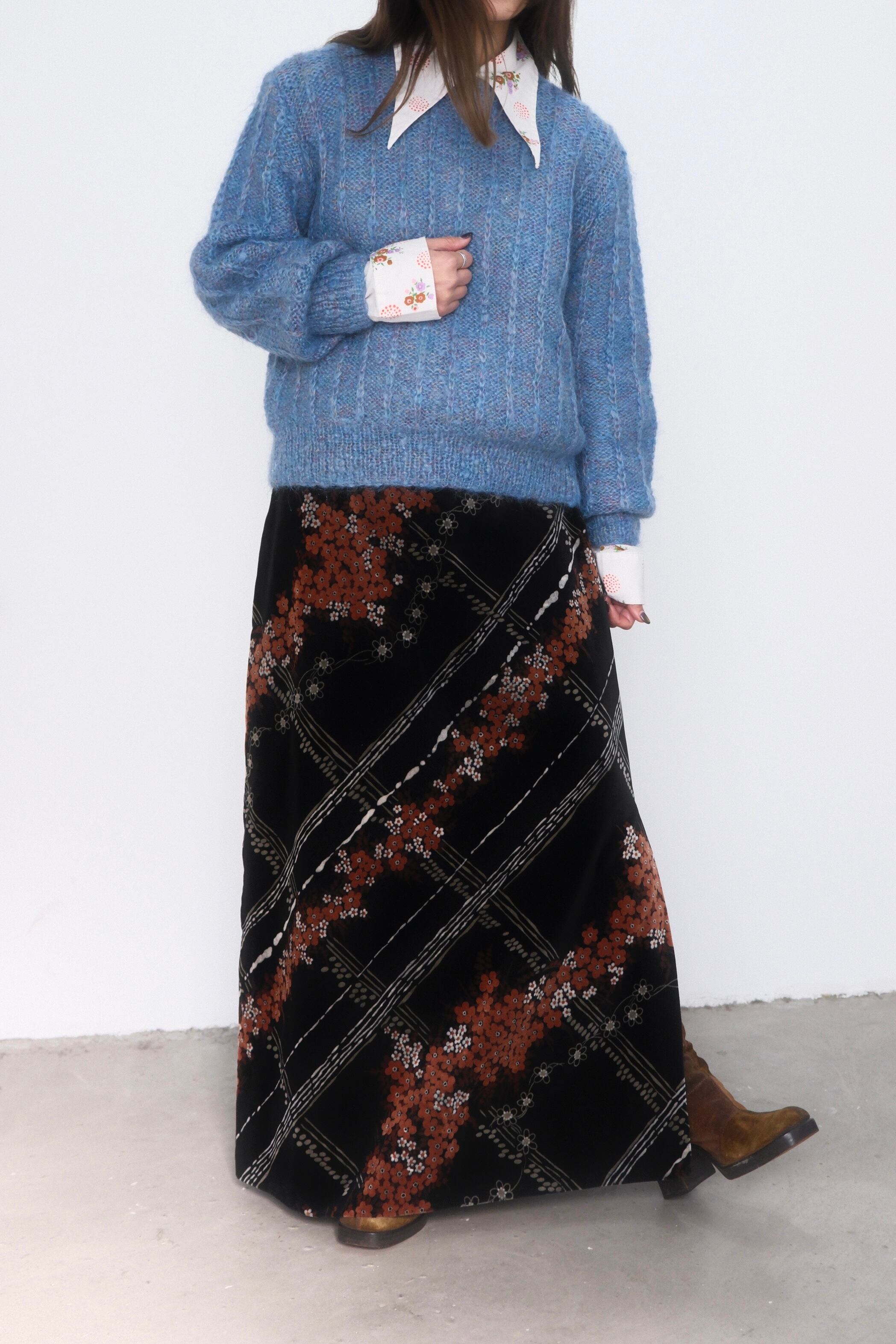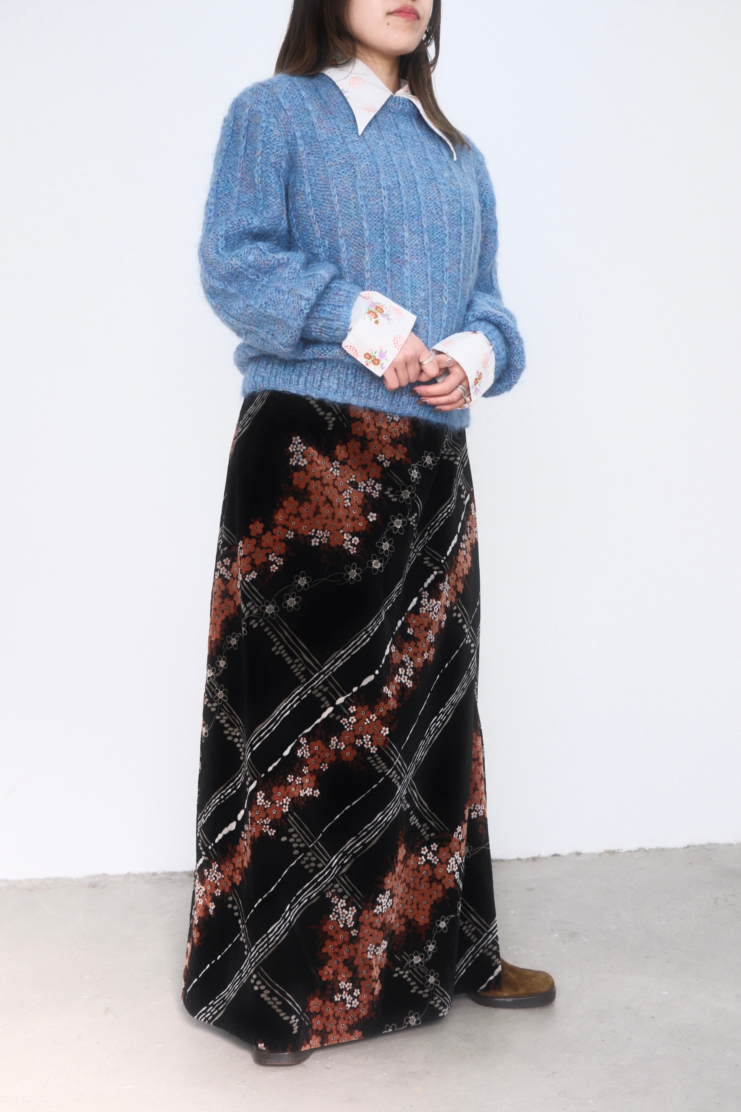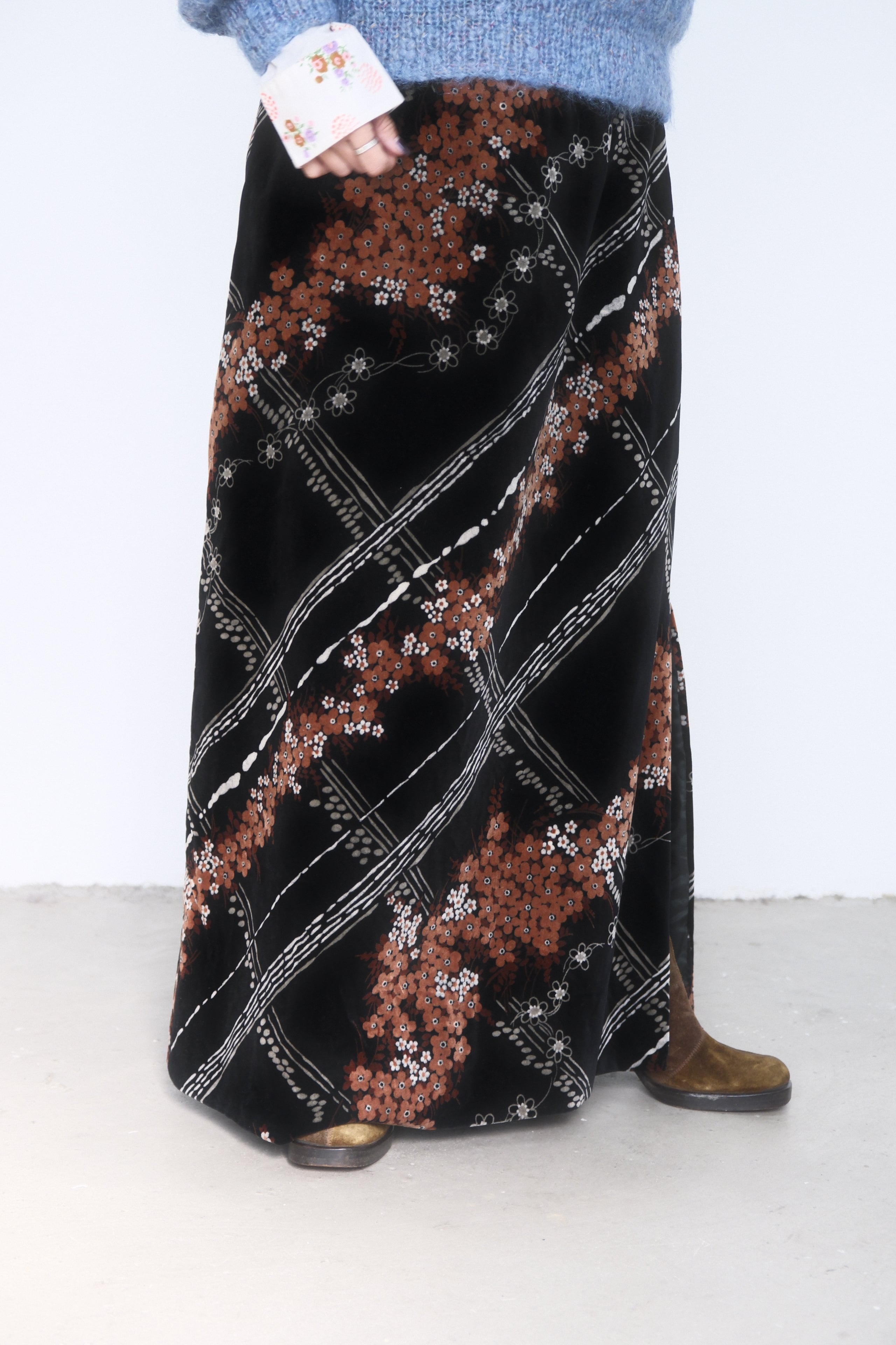 1970's Flower Pattern Velour Maxi Skirt