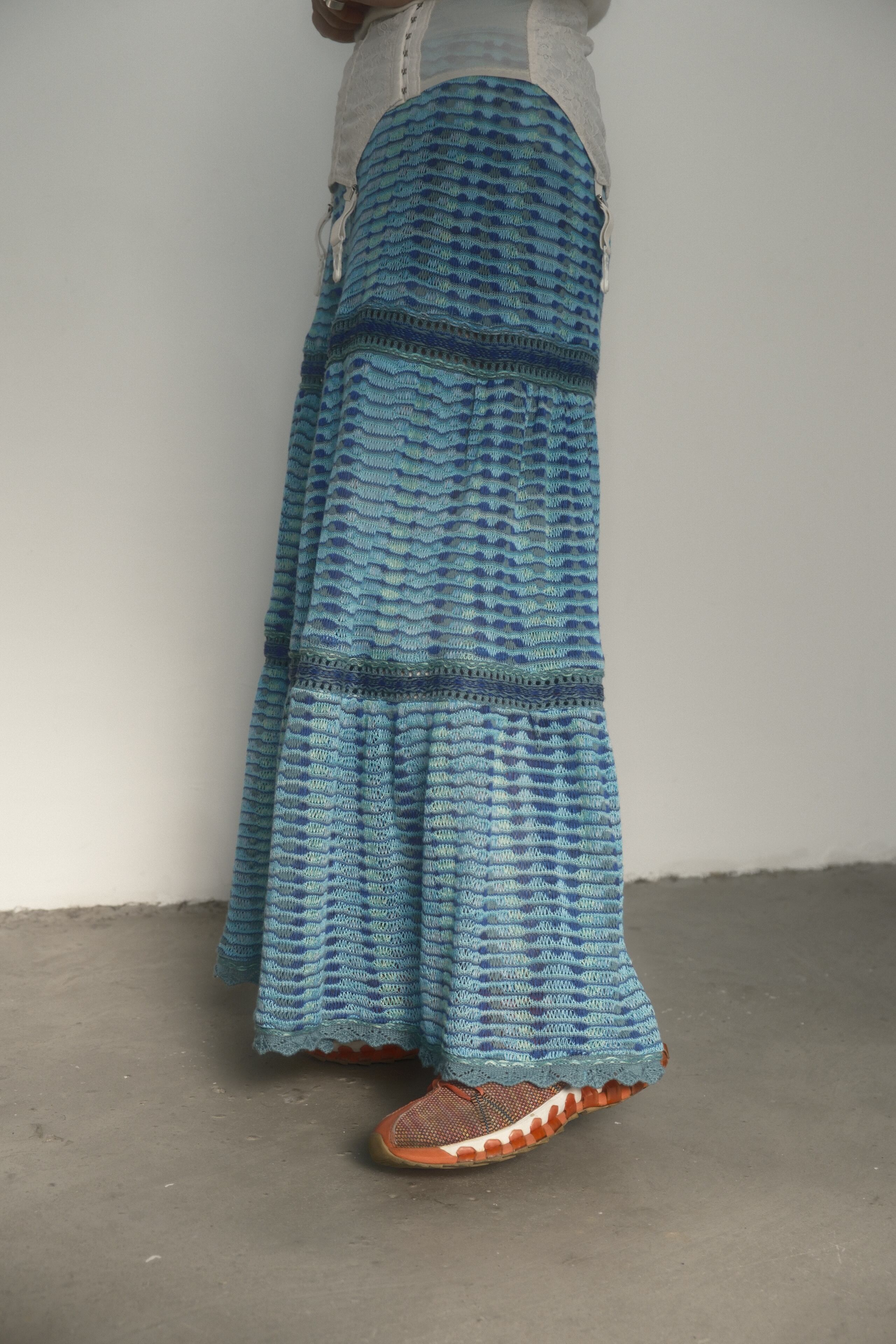 Blue Knit Tiered Skirt