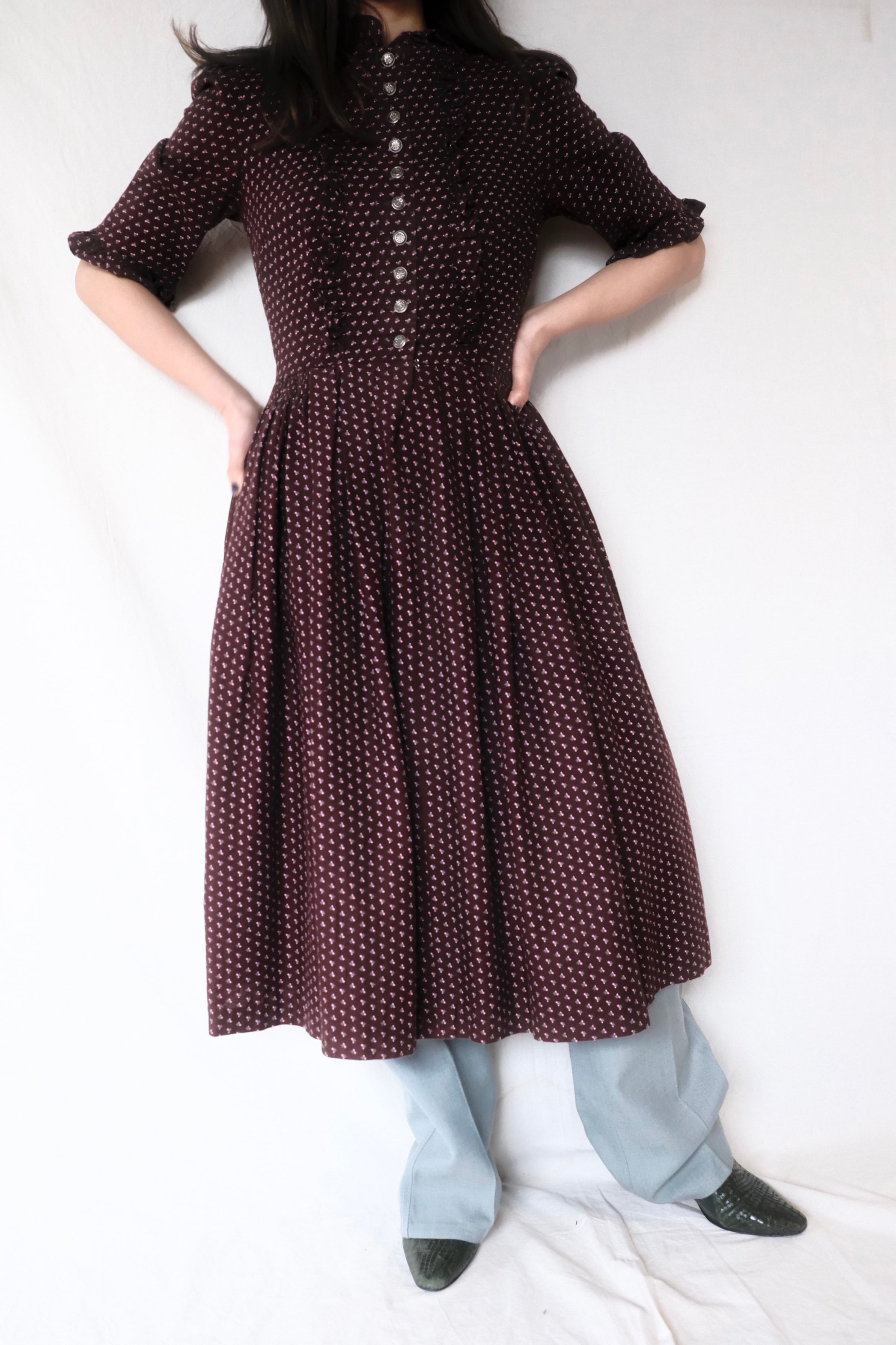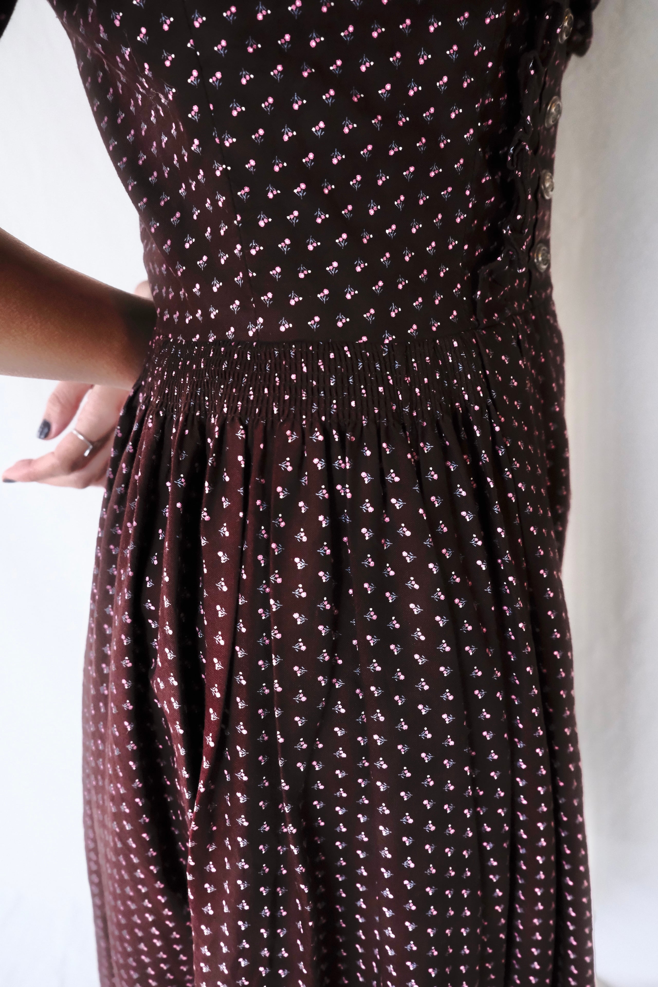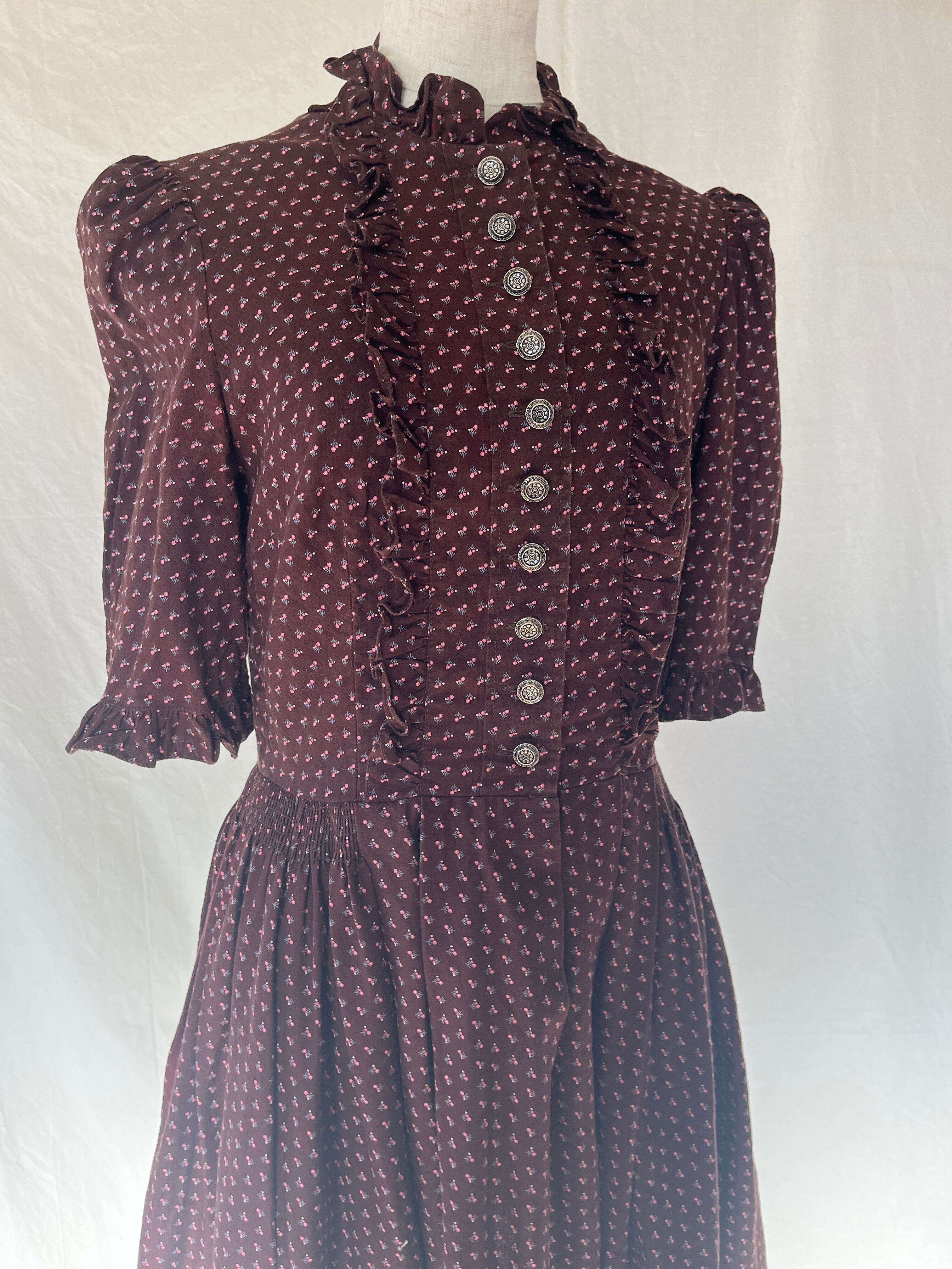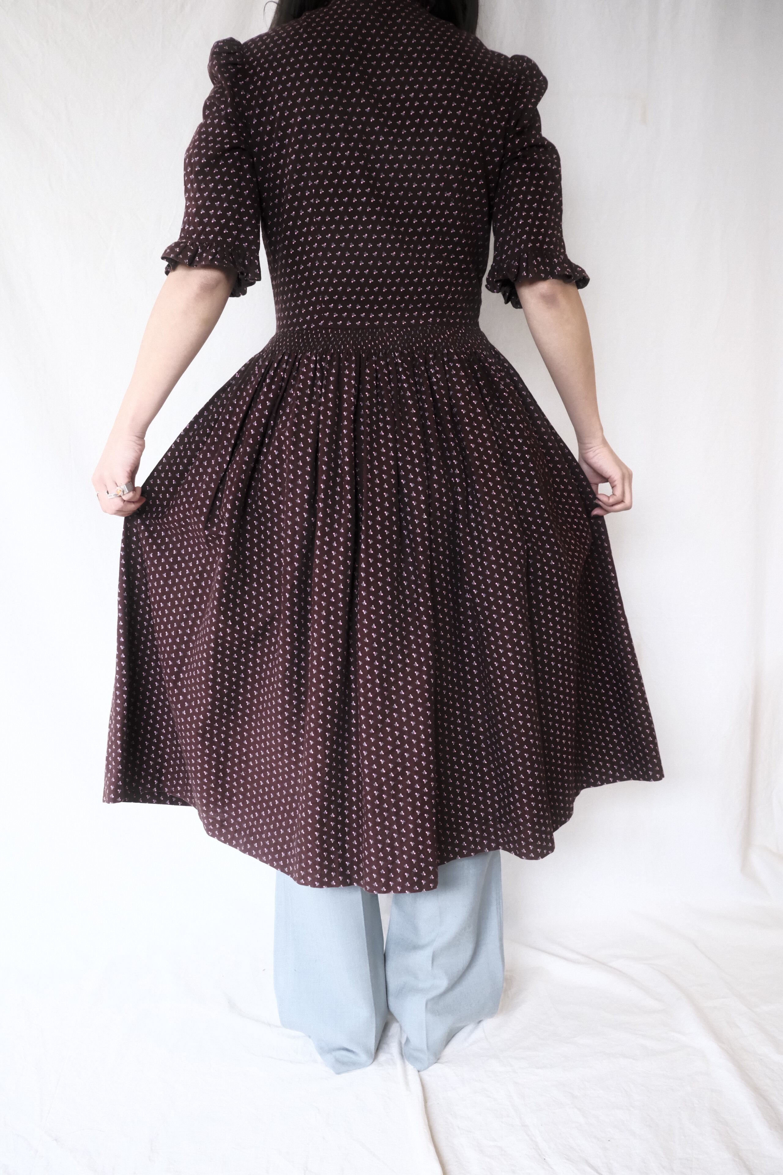 ブラウンにピンクの小花柄でロマンティックな雰囲気たっぷりの一着。
