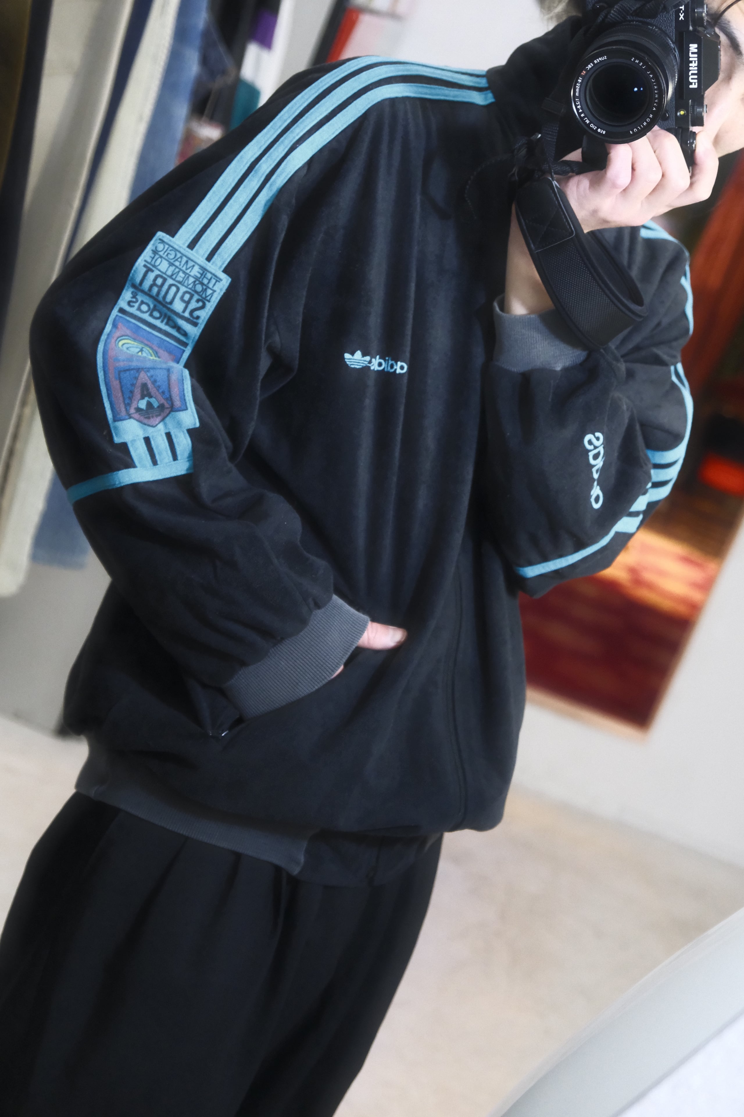 1980's "adidas" Black pile tracker jacket