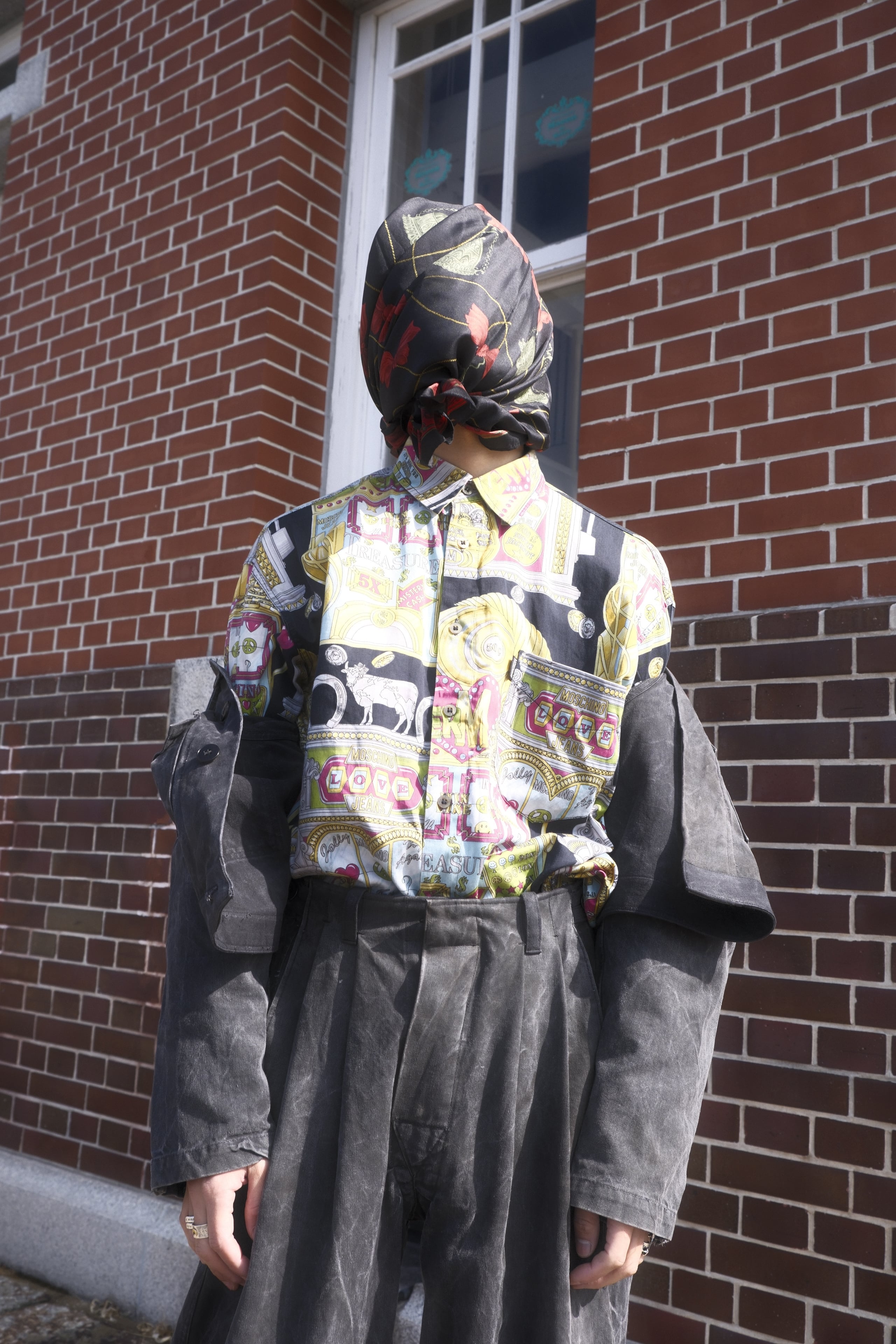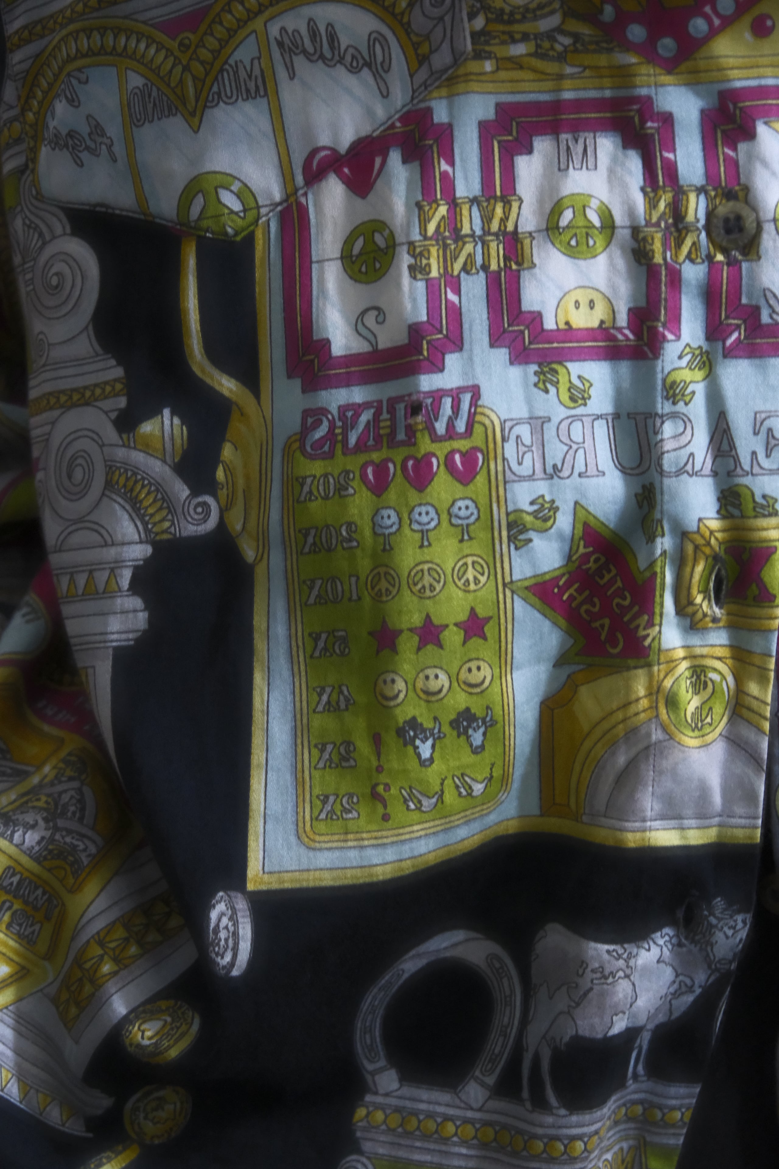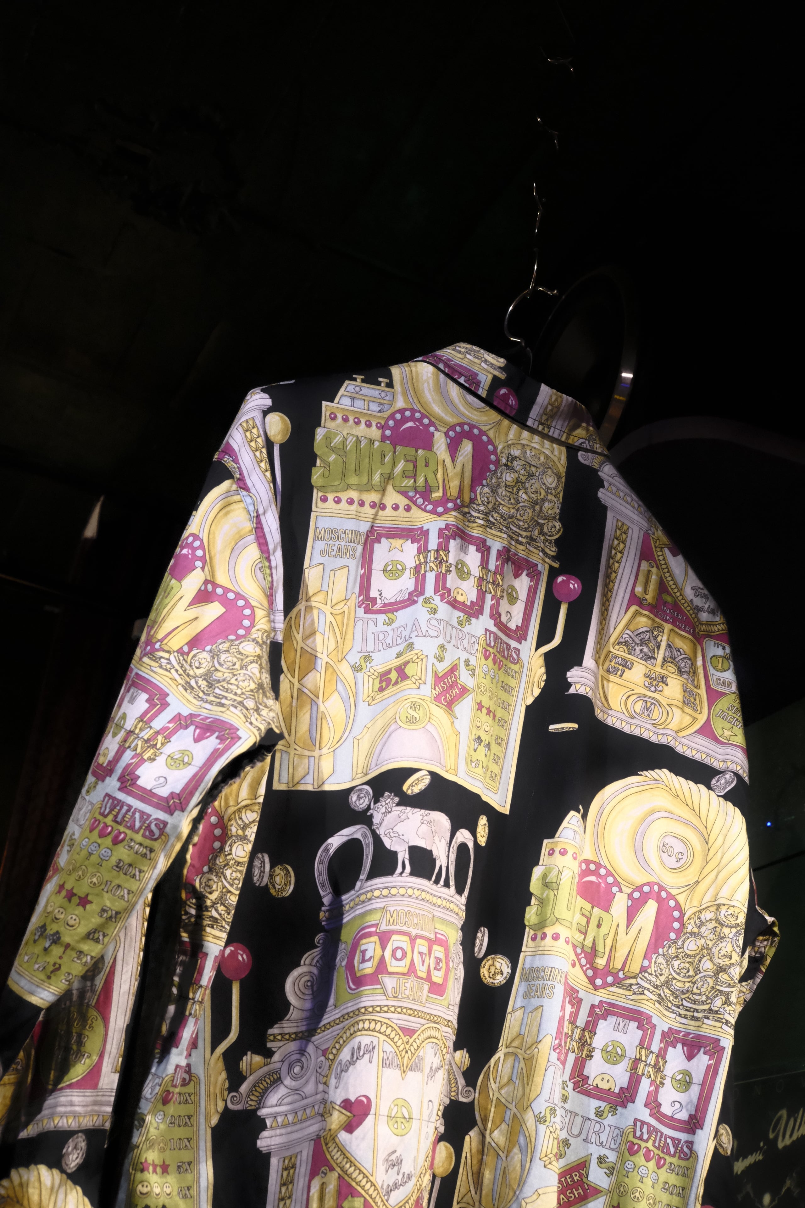 モスキーノオリジナルのプリントでよく柄を見て行くと細やかな細工がしてあります。
