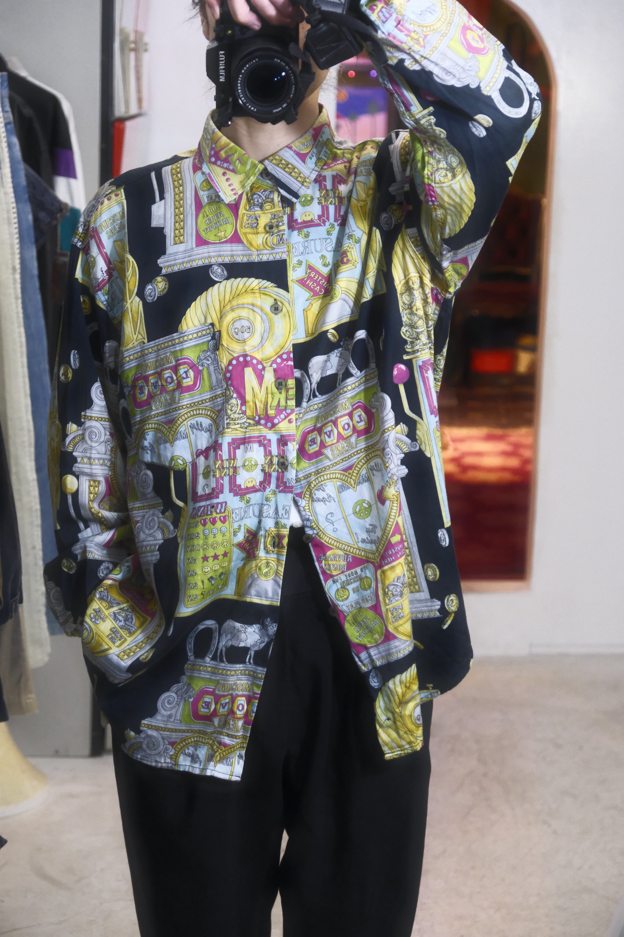 80~90's "MOSCHINO" made in Italy prinded cotton shirt
