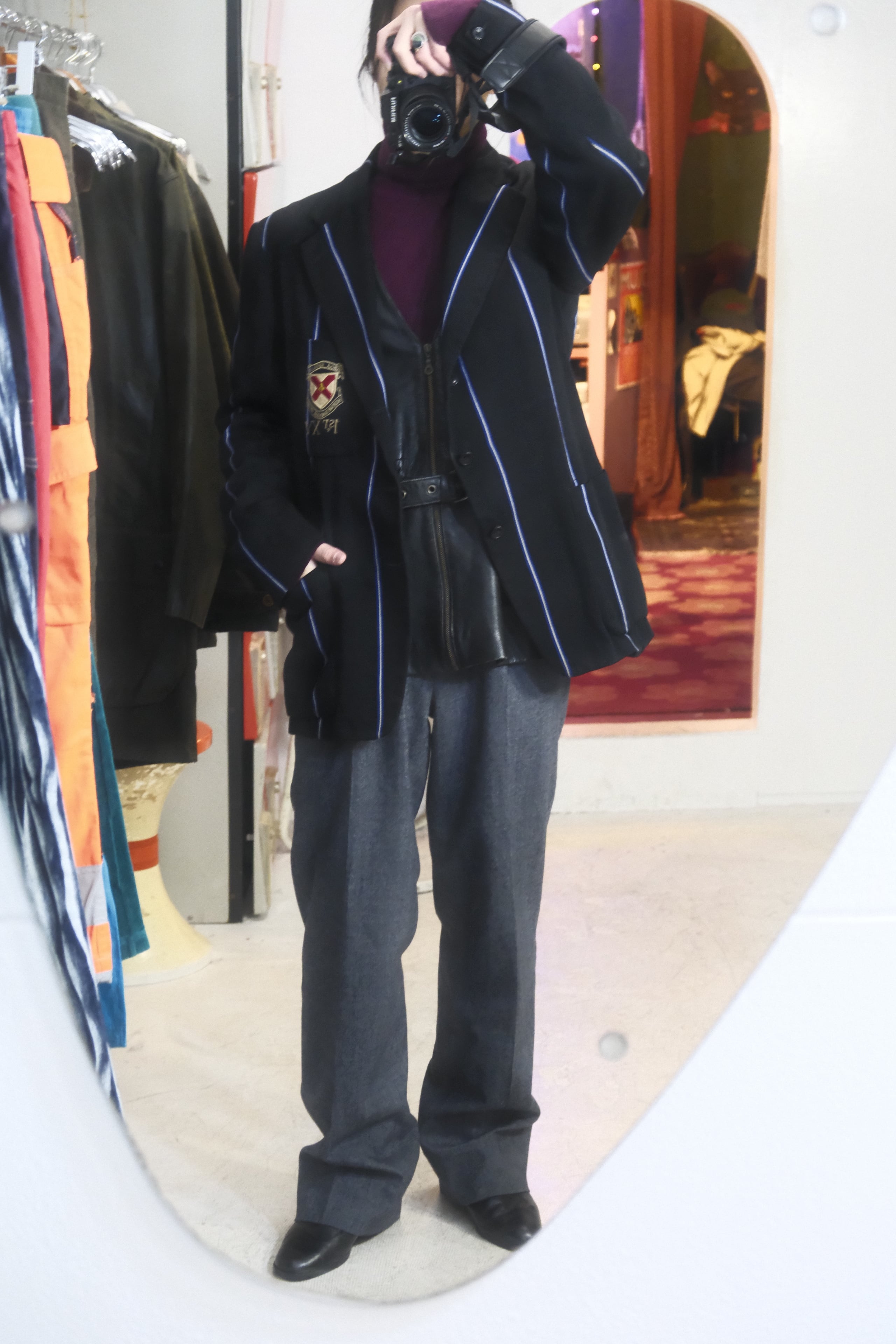 古いスクールジャケットはサイズがタイトなものが多いですが