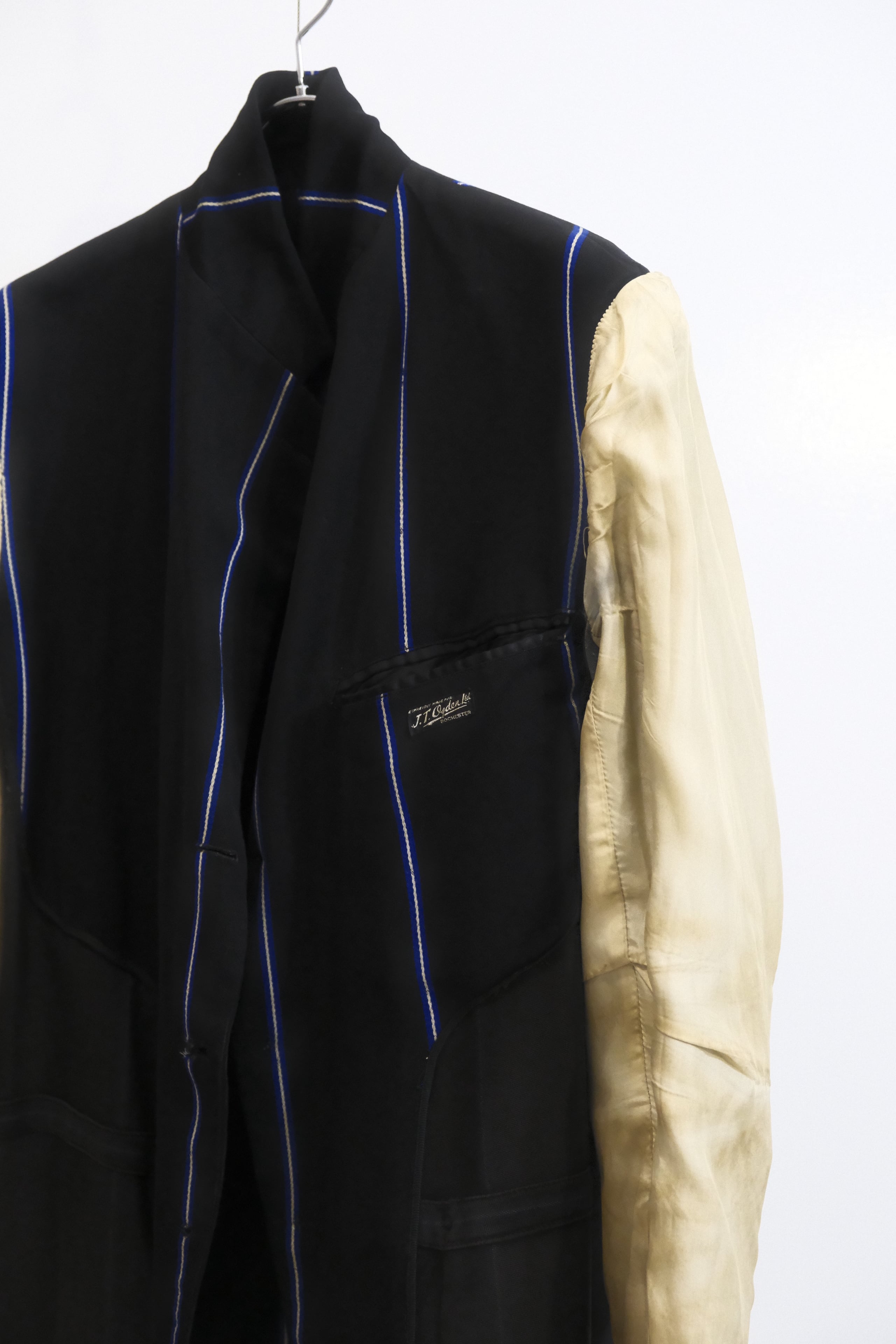また生地もスクールジャケットを作るために織られたであろう間隔が広い幅のストライプ。