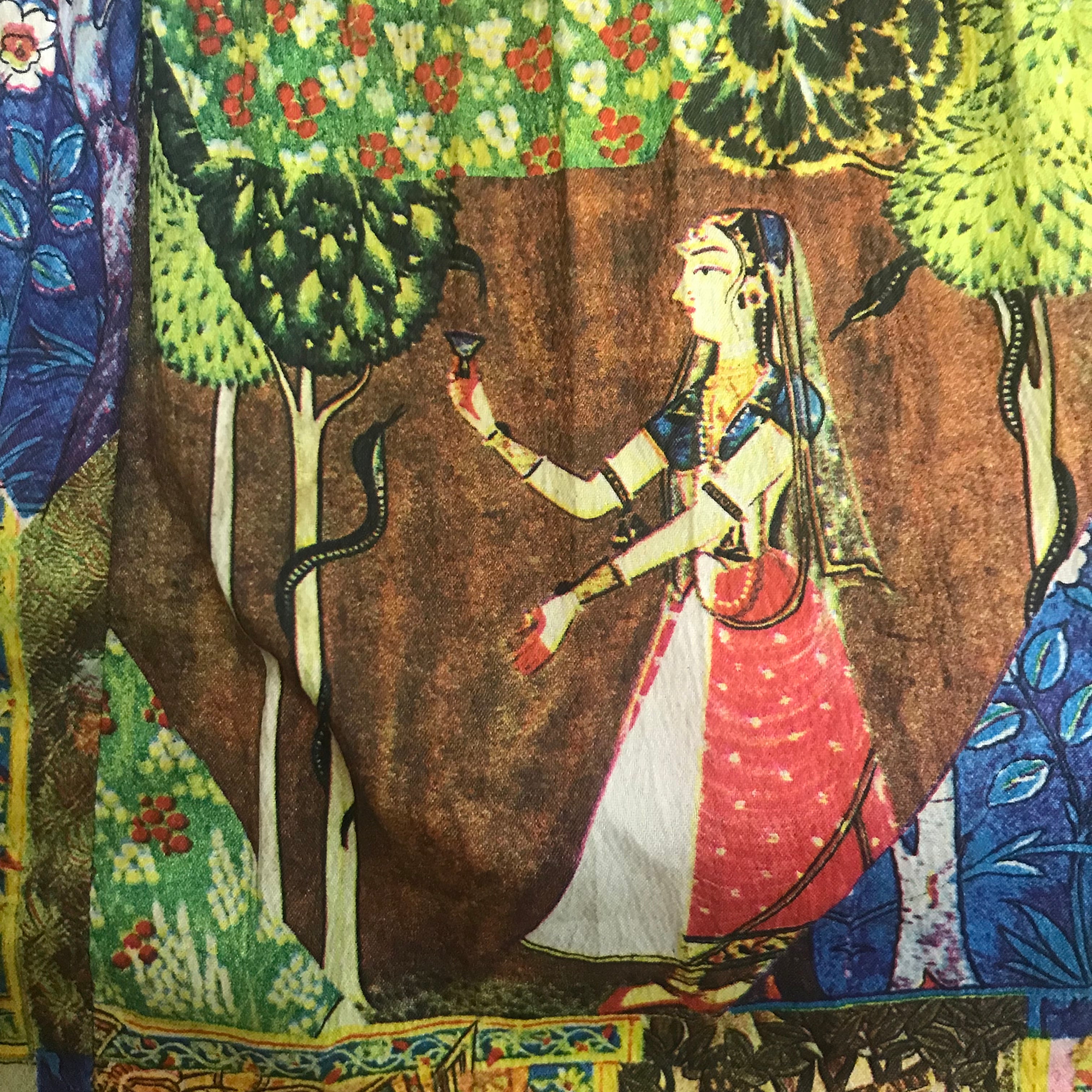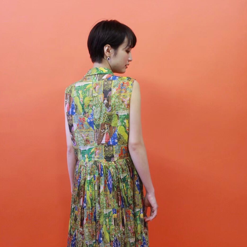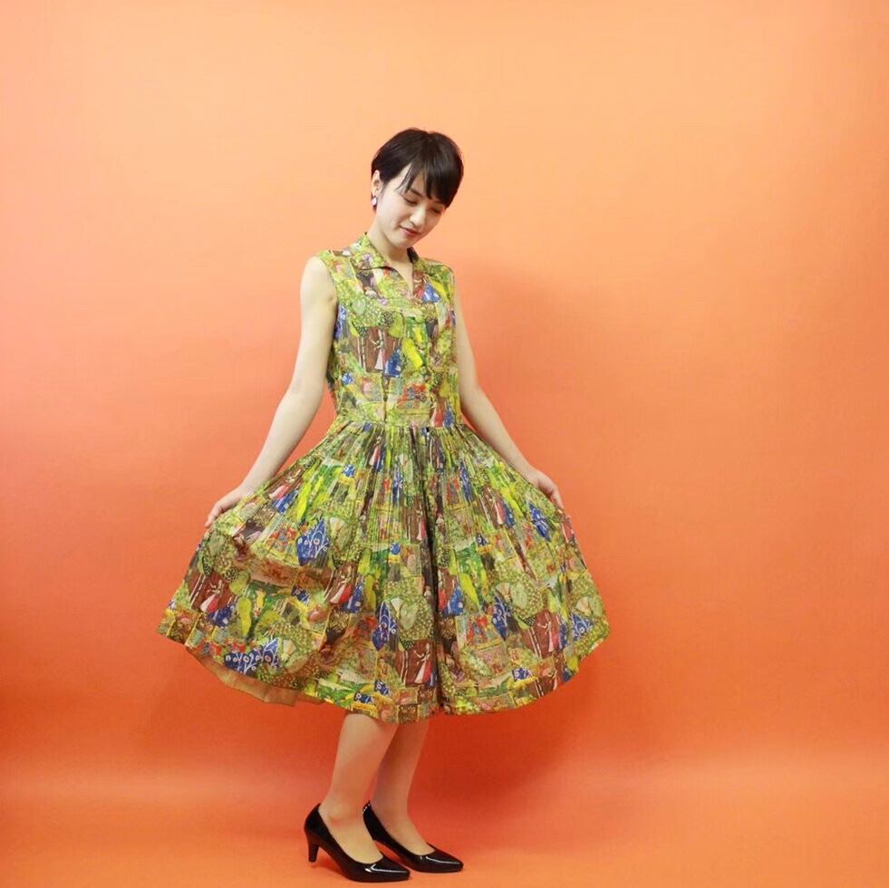 ユニークでレトロな民族柄が目を惹くワンピース。