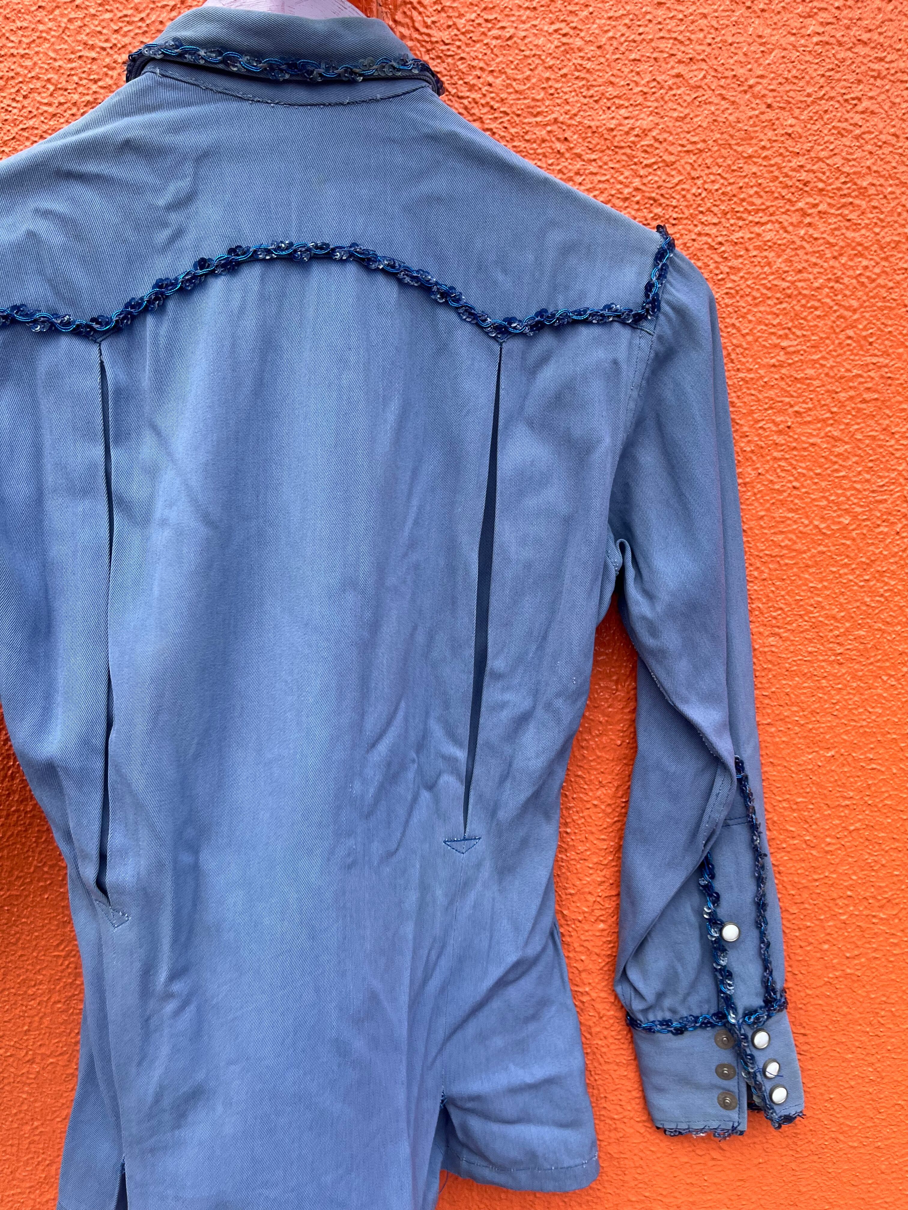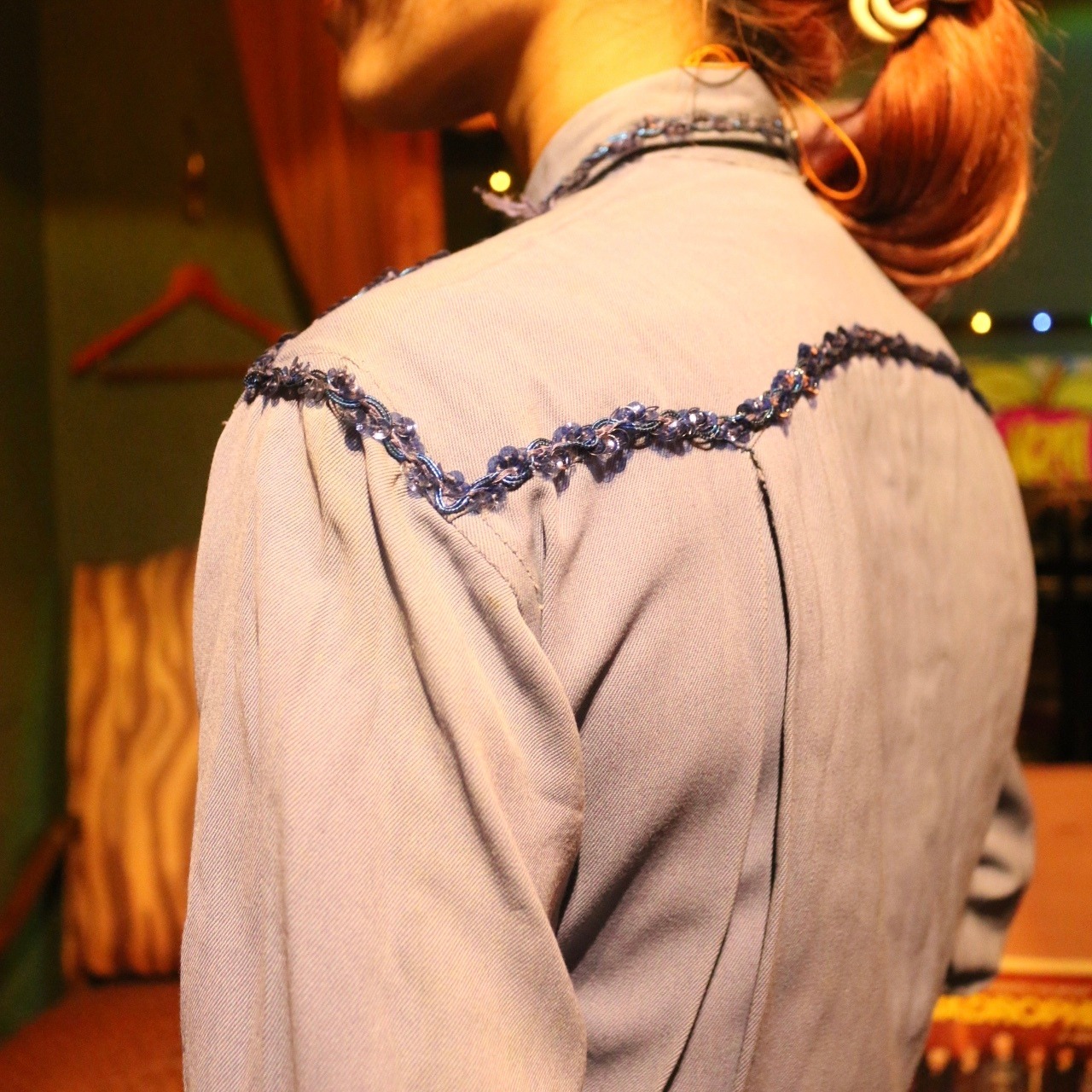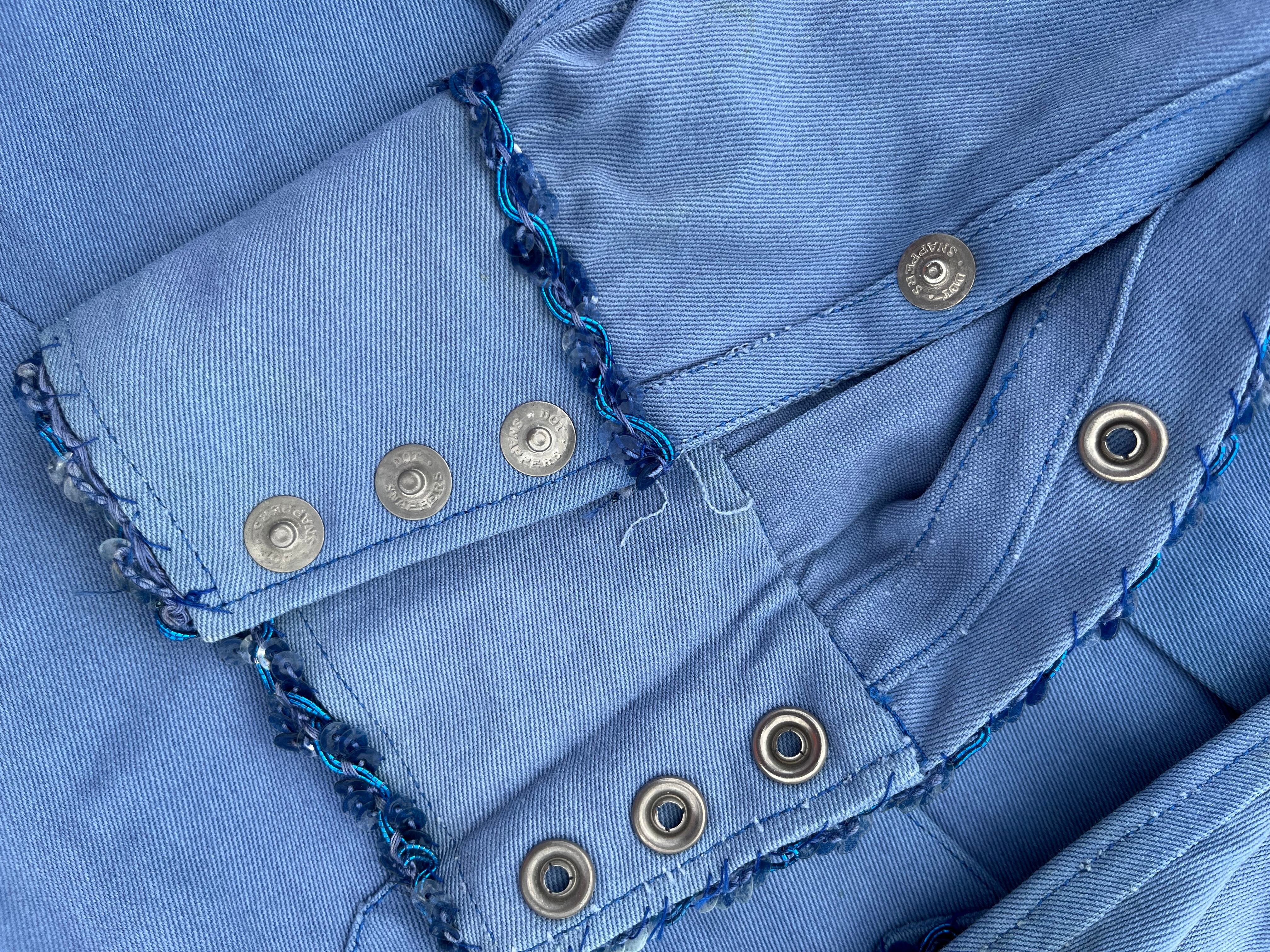 しっかりとしたコットンツイル生地で、ボタンはスナップボタン。