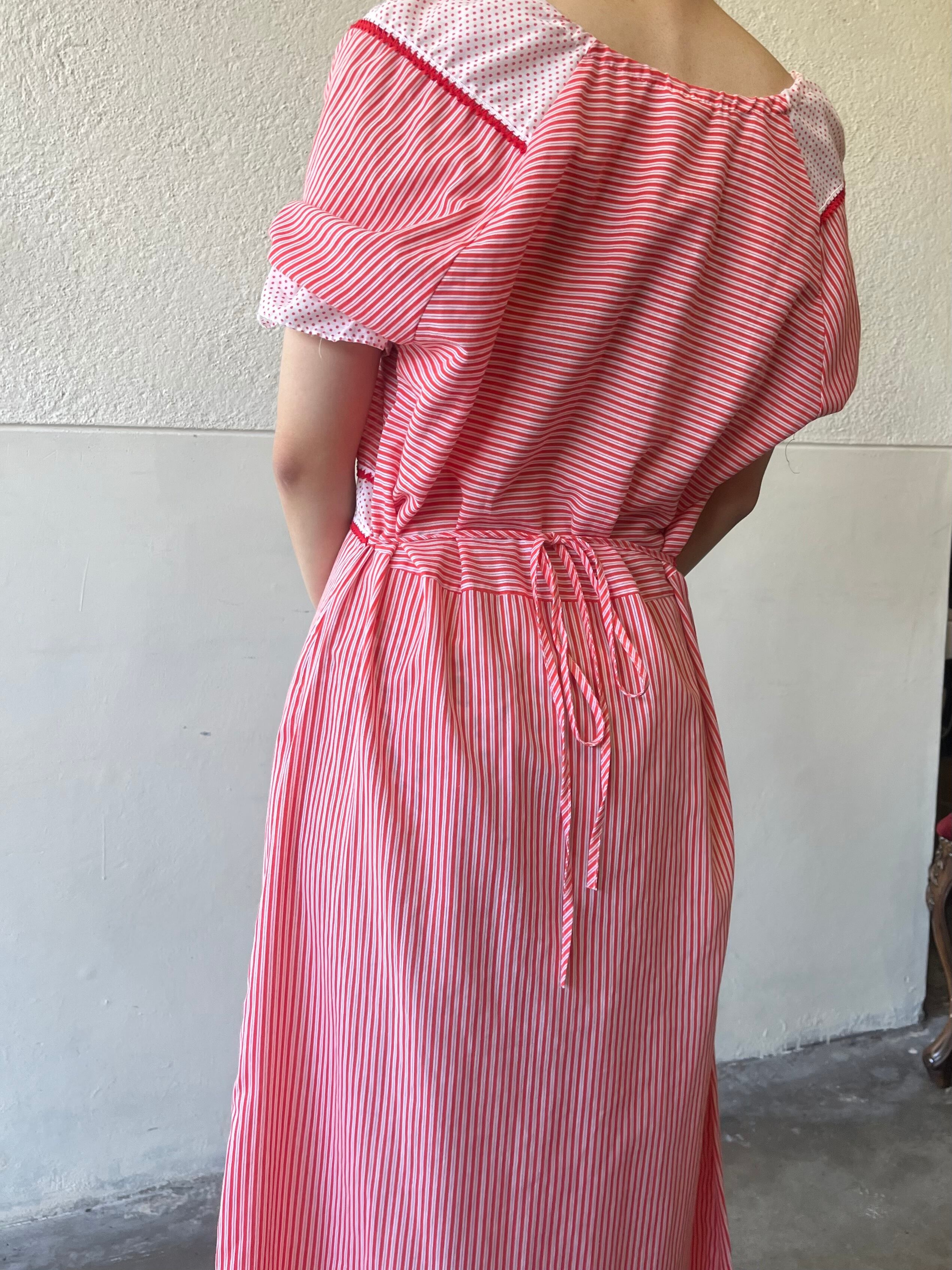 ドットとストライプの柄の組み合わせがレトロな印象♡