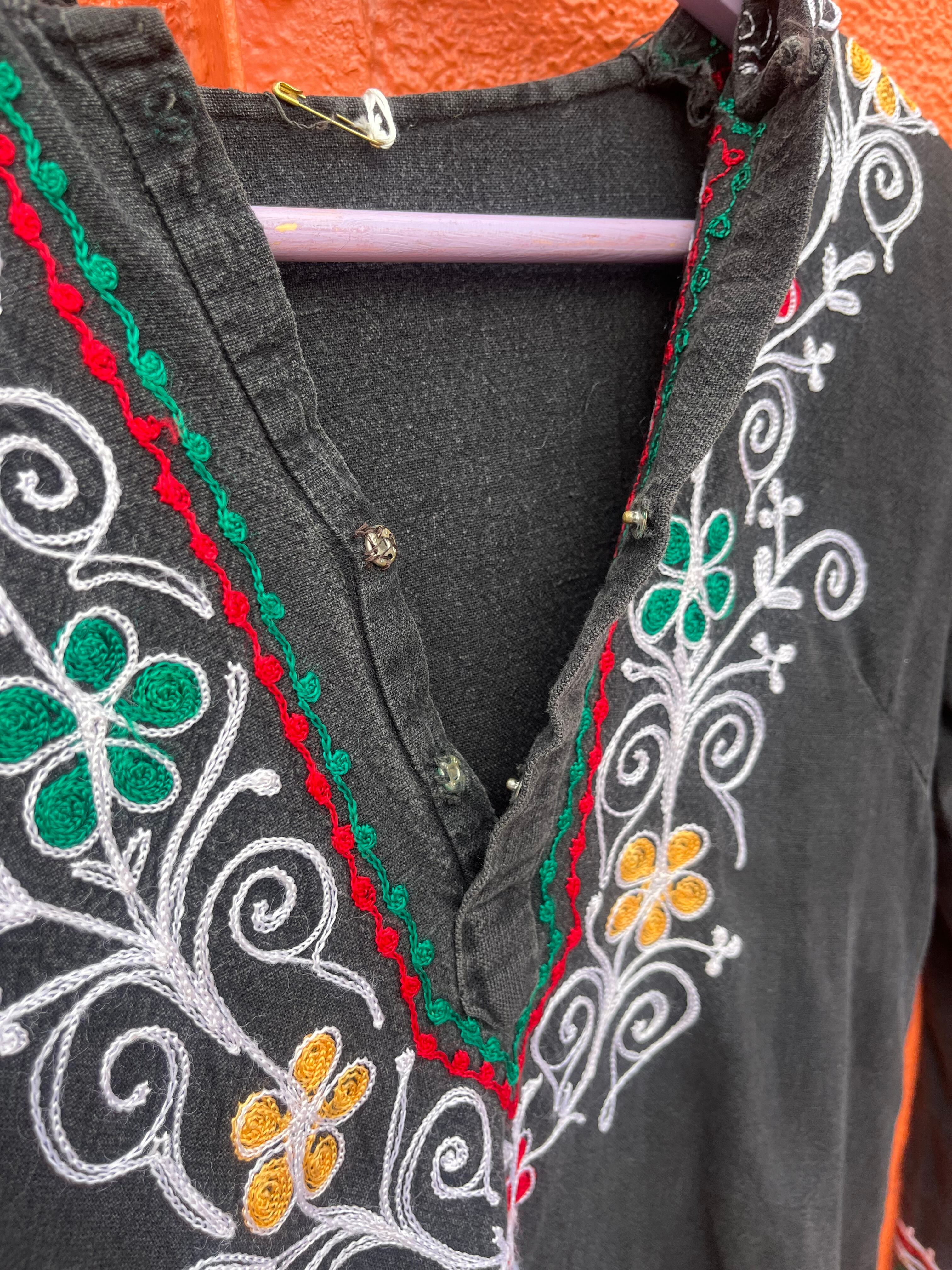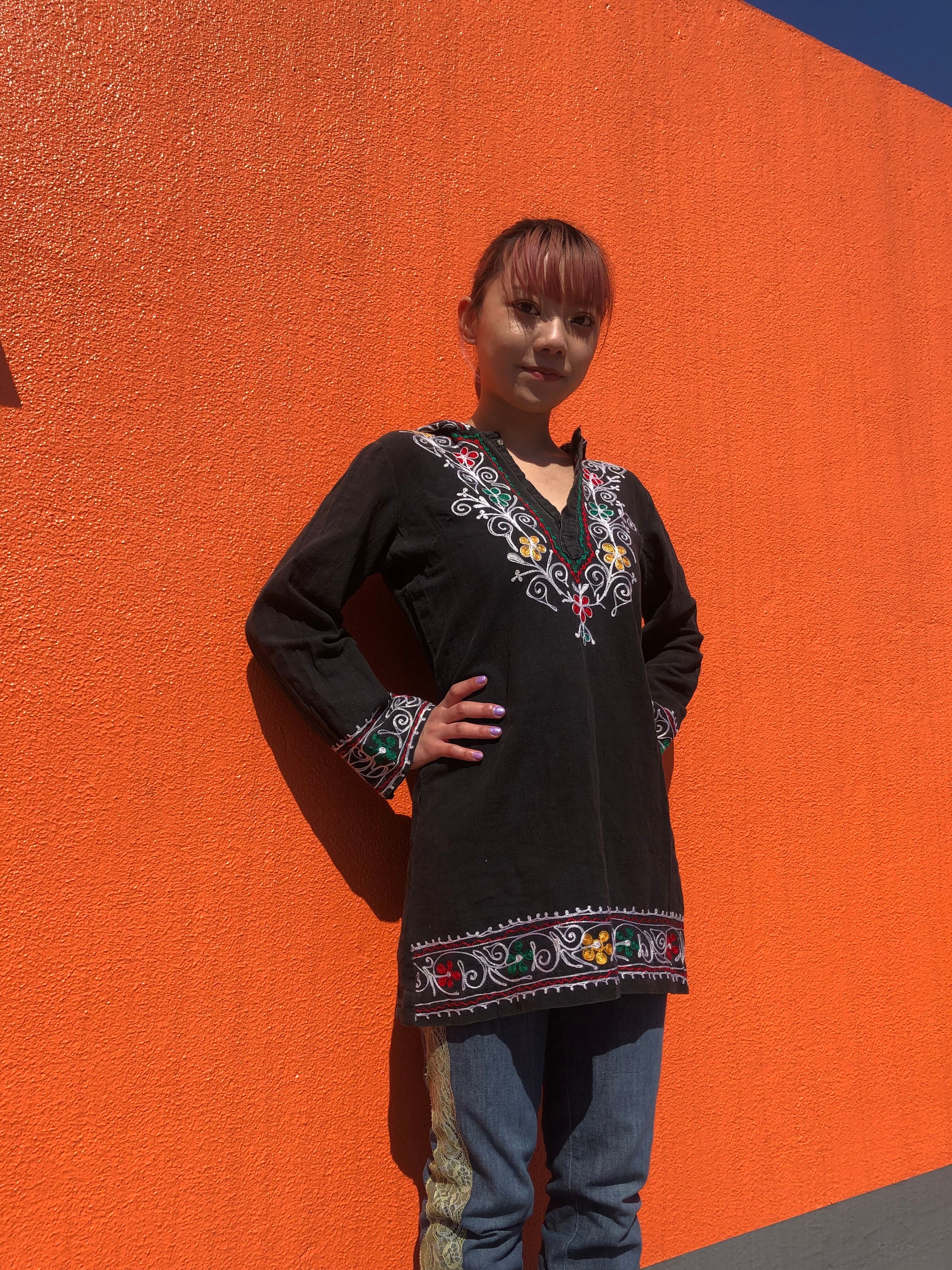 ブラックの生地にラスタカラーの配色の刺繍が映えます♡
