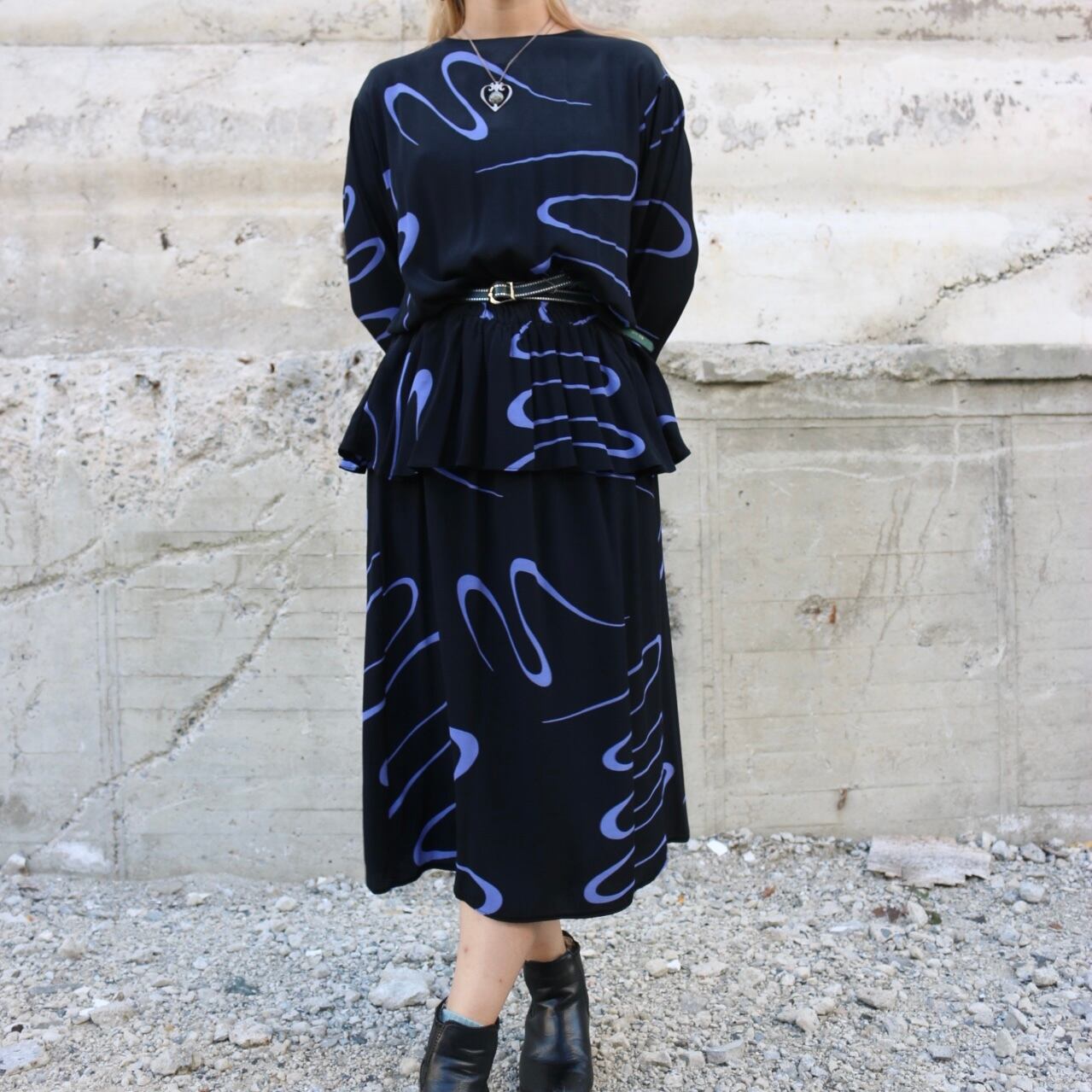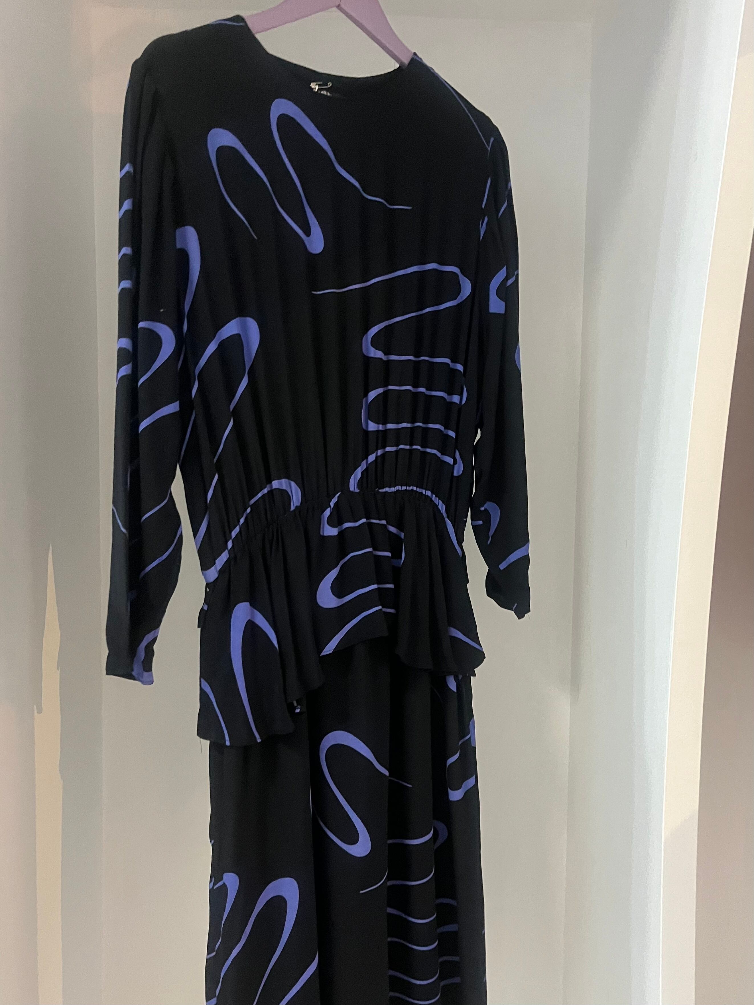セットアップの様にも見えるペプラムデザインのワンピースです。