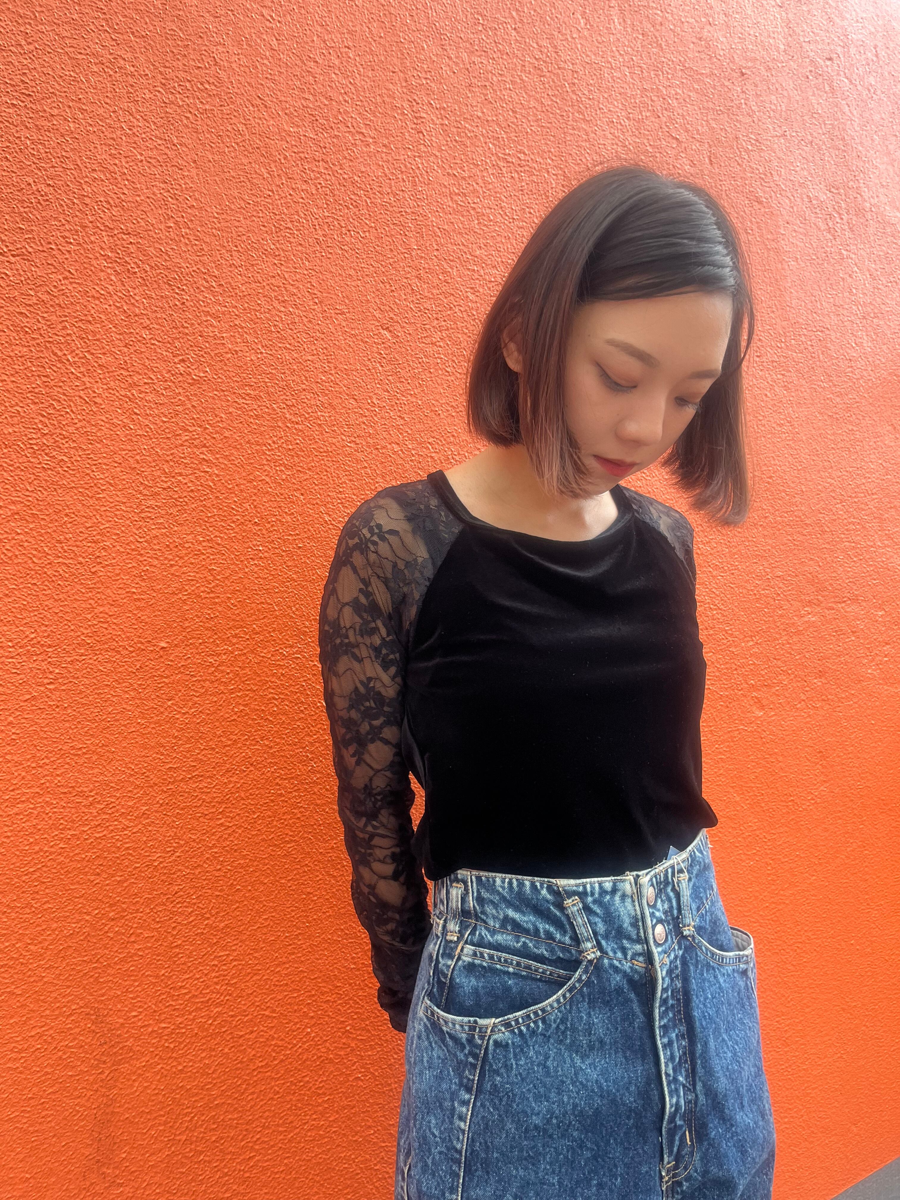 これからの季節気になるベロア素材とレースの組み合わせが、正しく今の気分って感じ♩