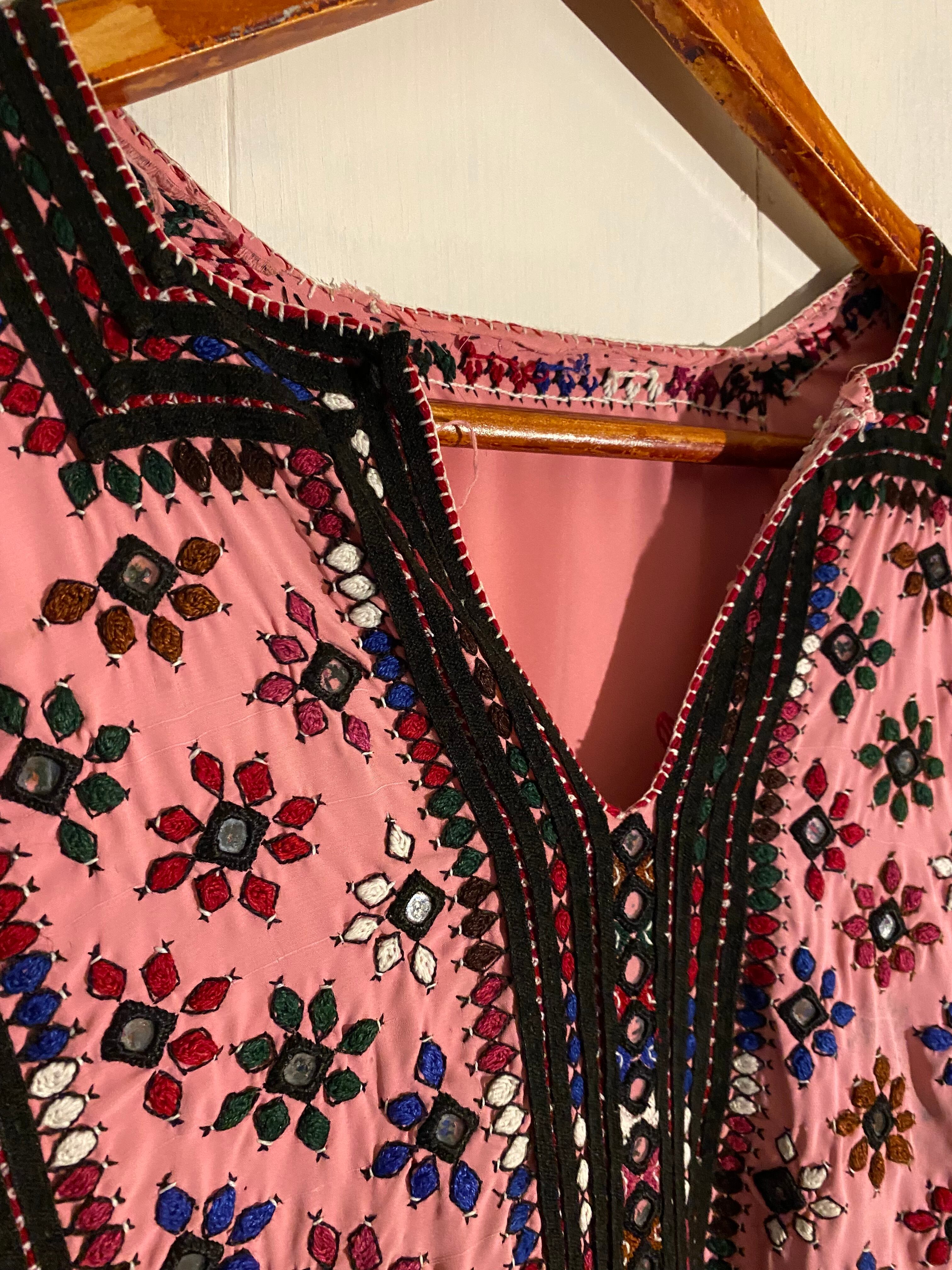 バロチ族の女性によって手刺繍が施された美しいドレス。