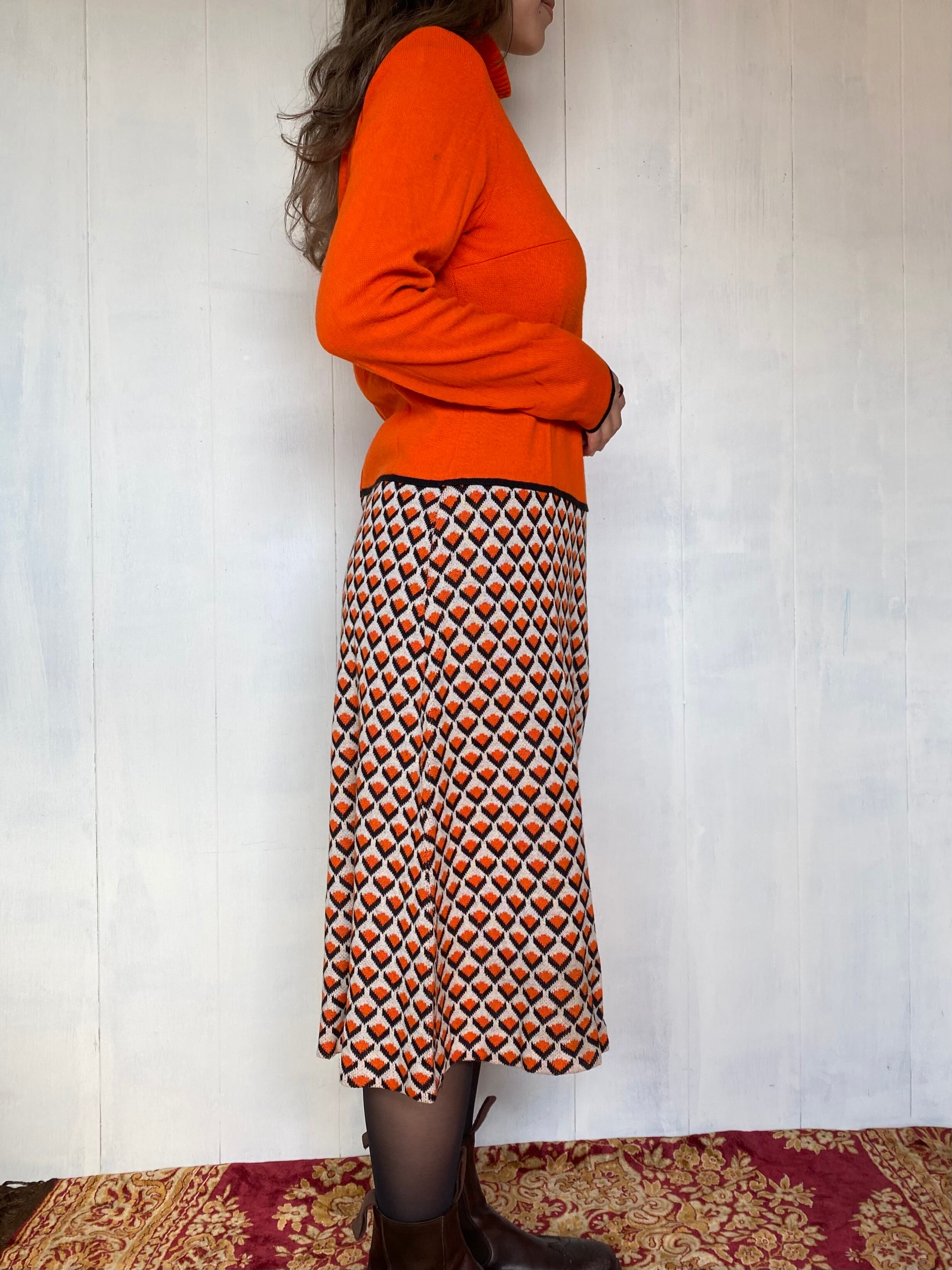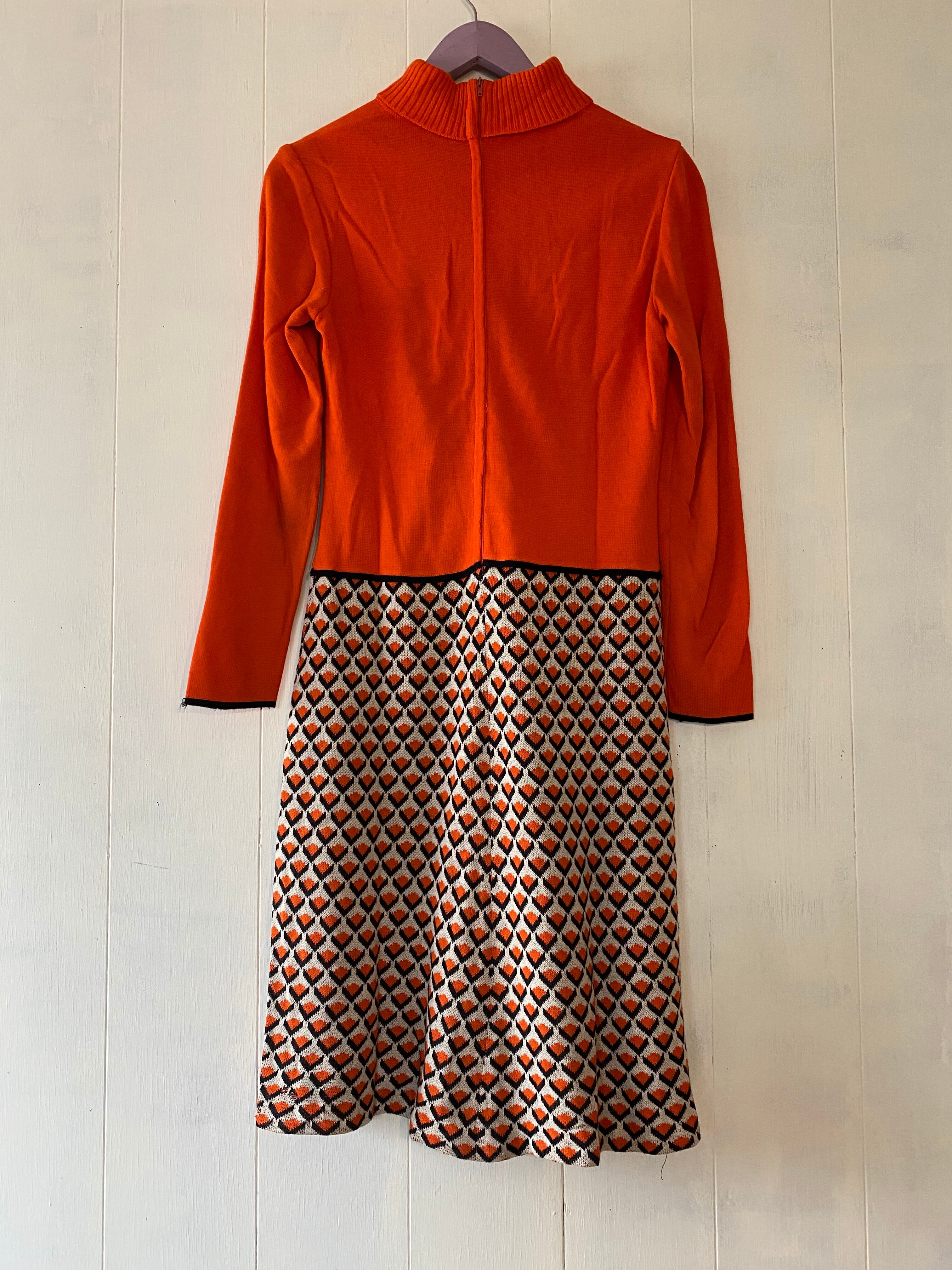 スカート部分はこの年代らしいレトロ幾何学模様。