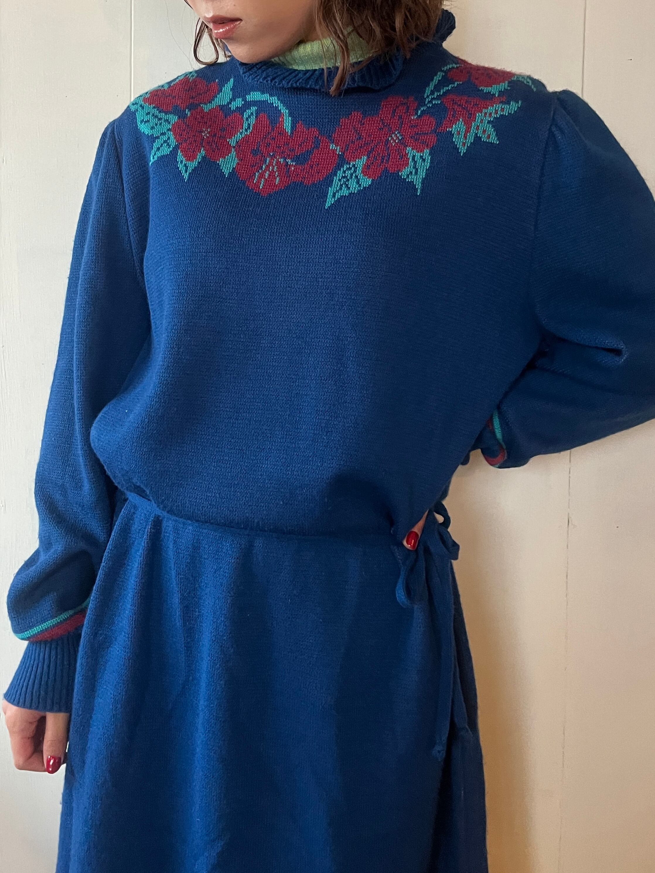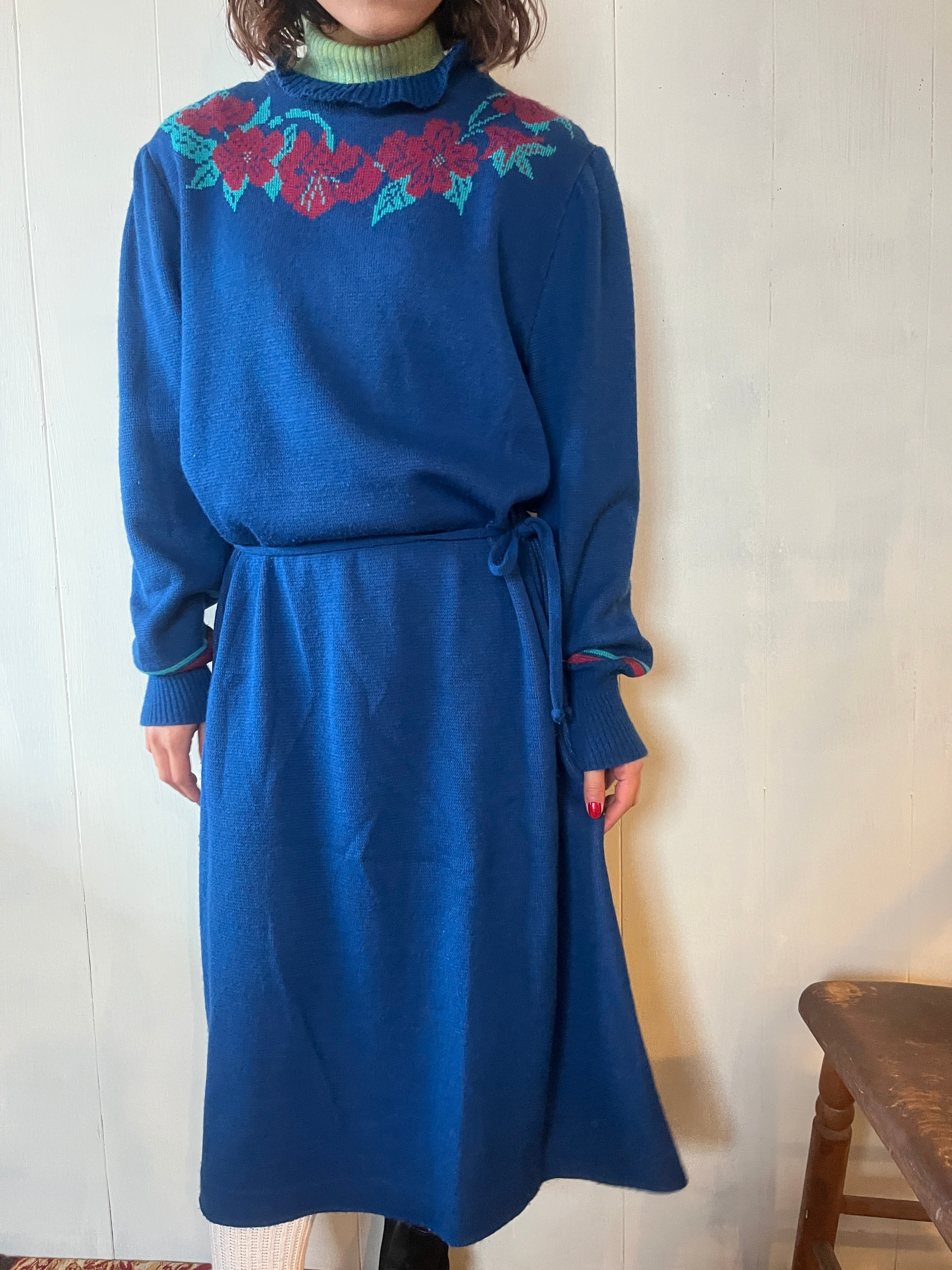 1970's Flower Motif Knit Dress