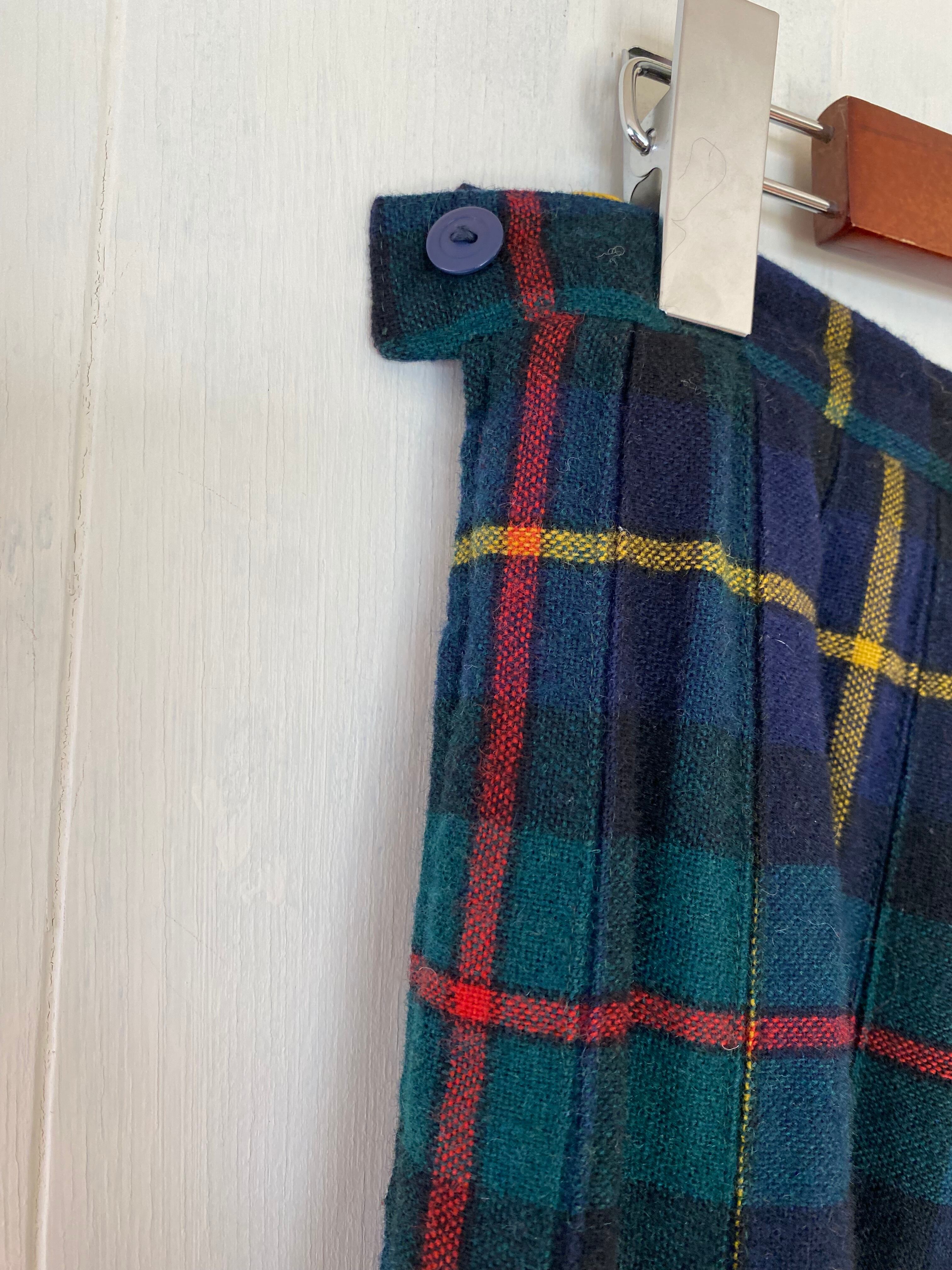 ウールのチェック柄オールドプリーツスカート 。
