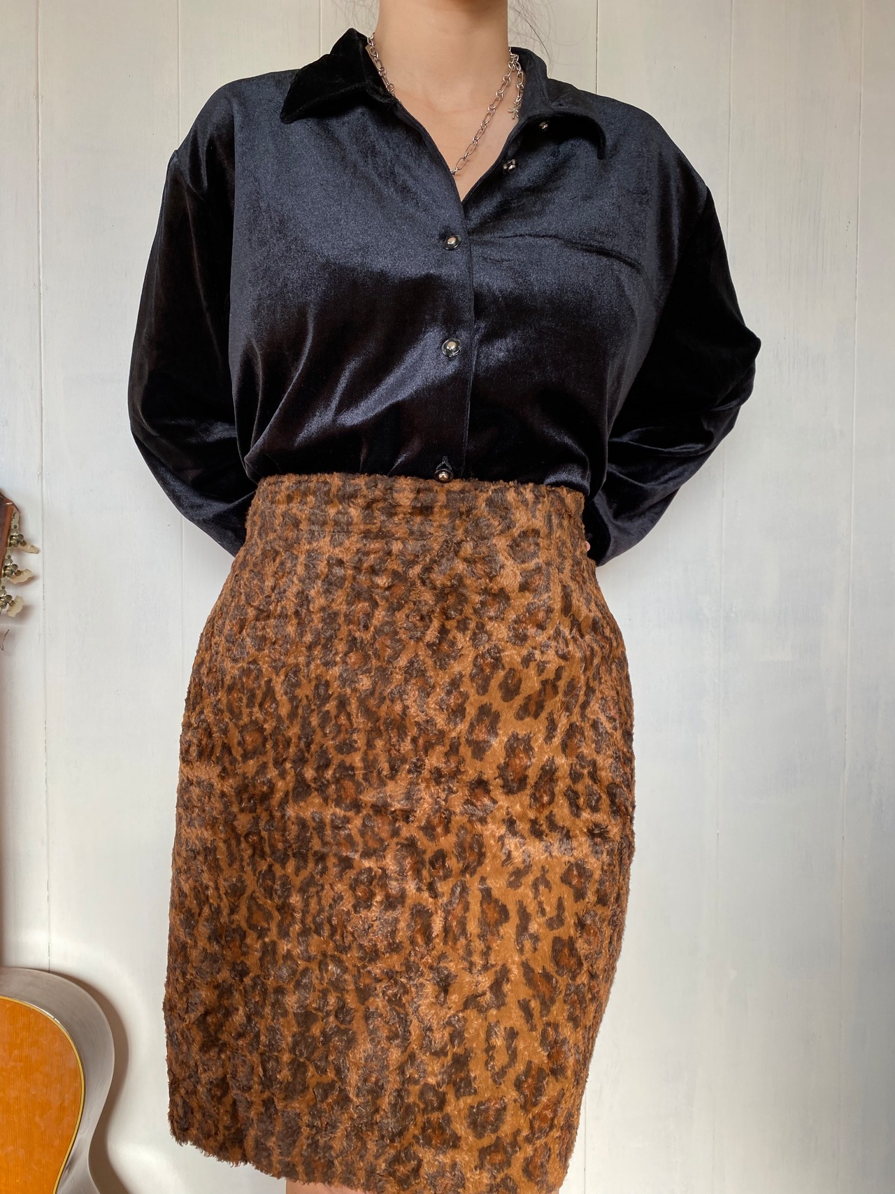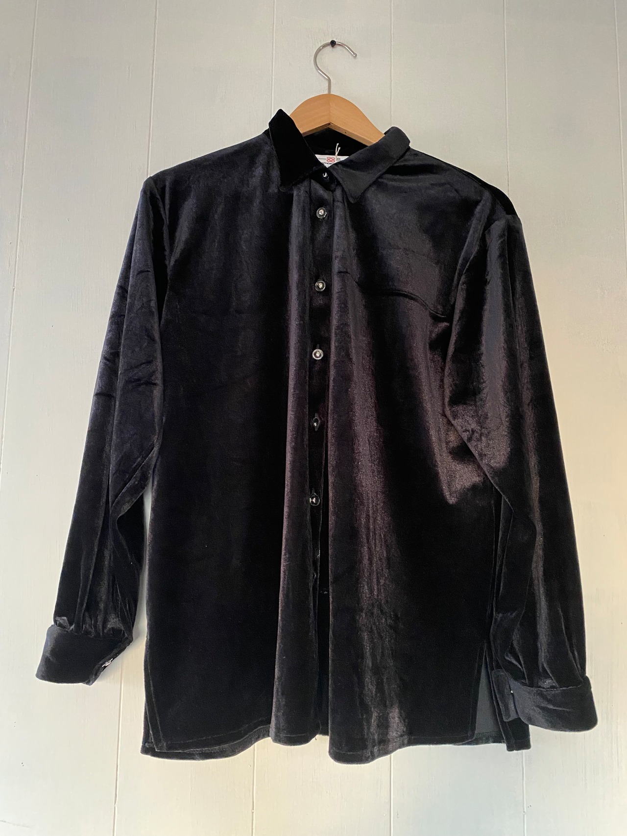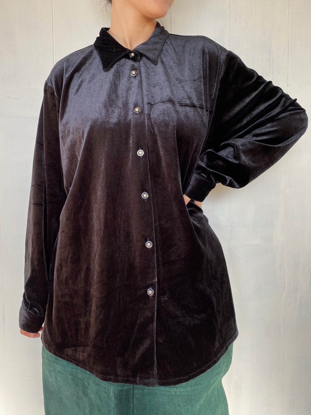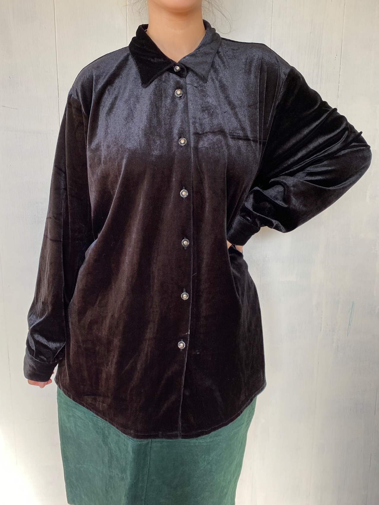 レトロな雰囲気漂う、ブラックベロアシャツ。