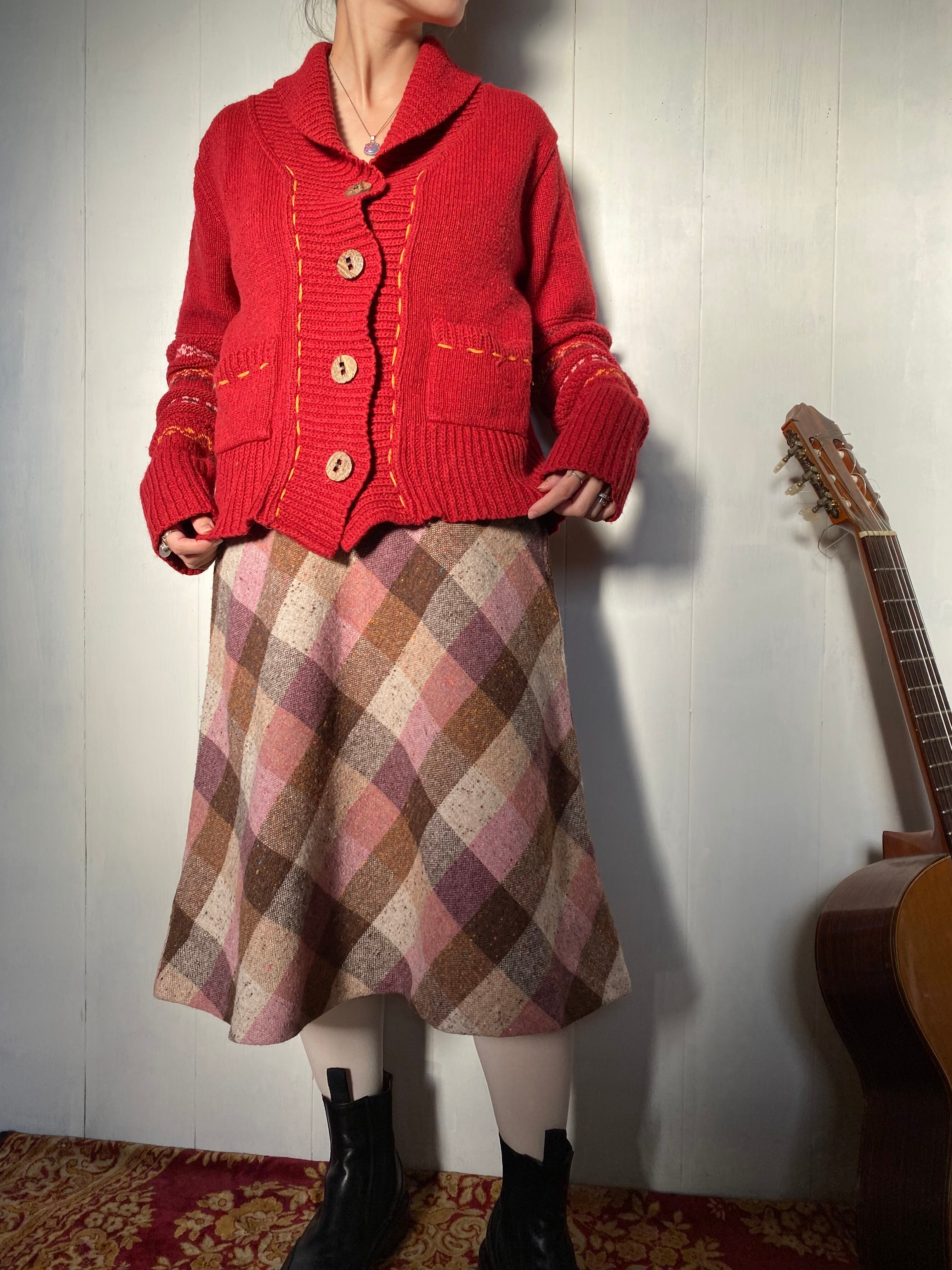 ピンク×ブラウンのカラーリングが可愛いらしいチェックスカート。