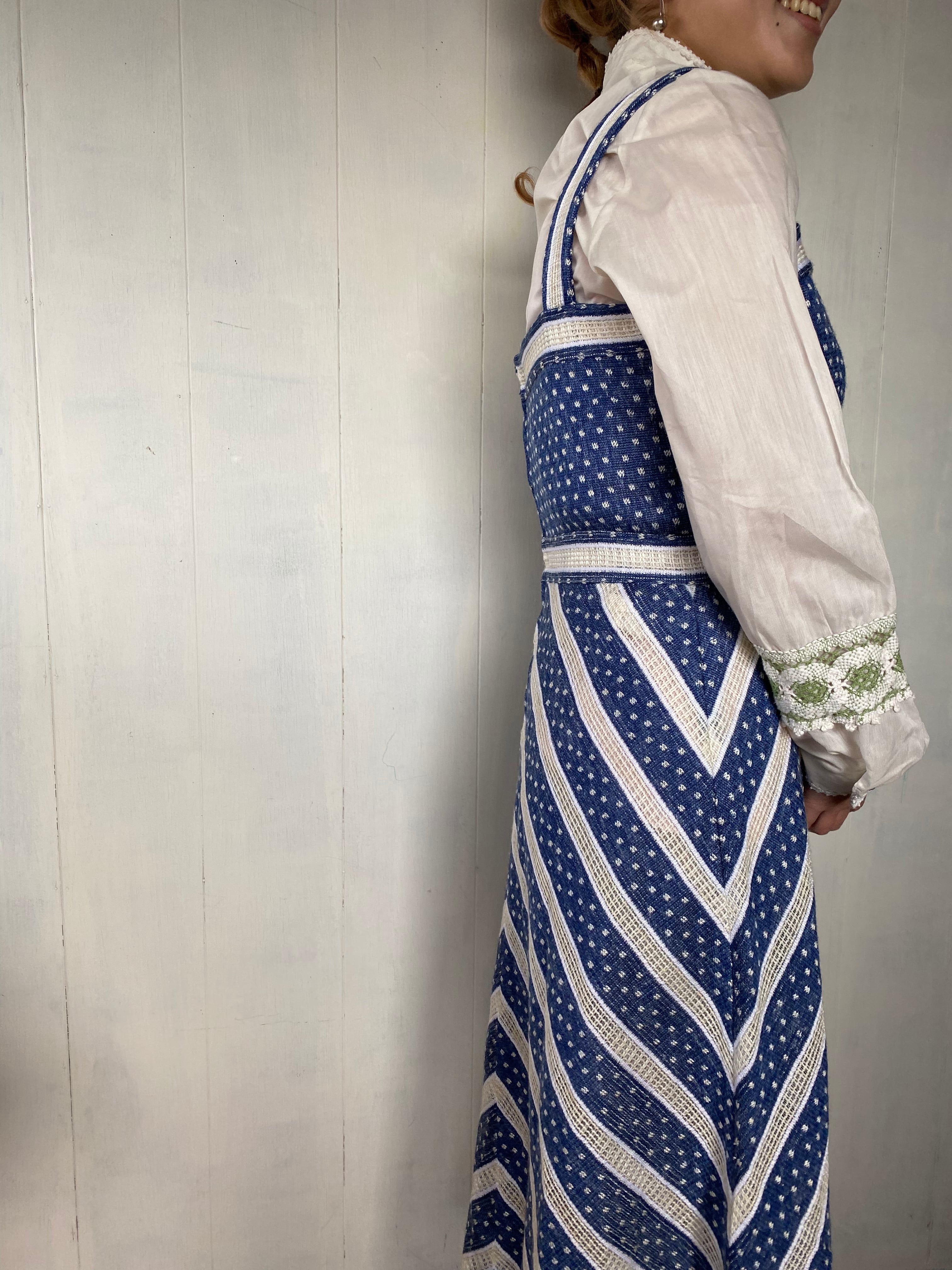 1970's Blue Design Jumper Dress