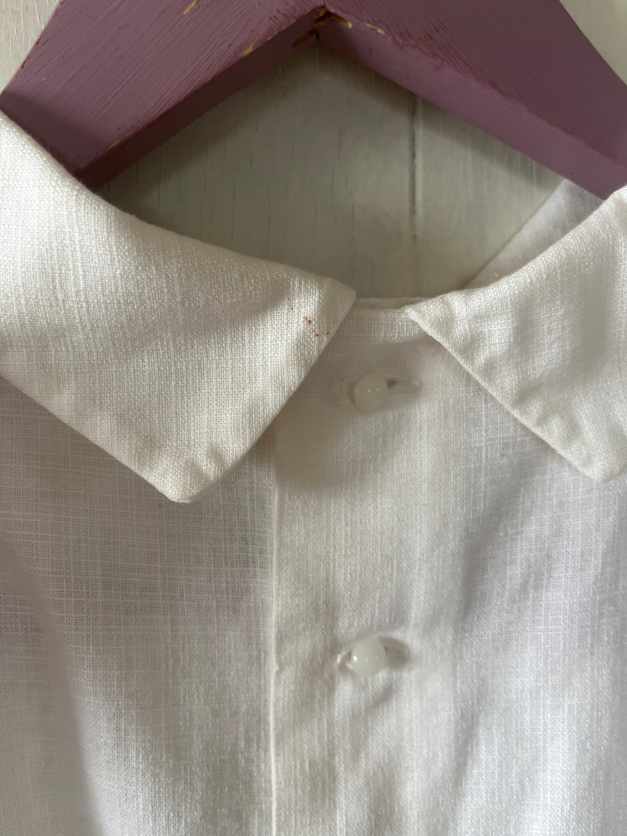 後ろの襟に小さい汚れがございます。