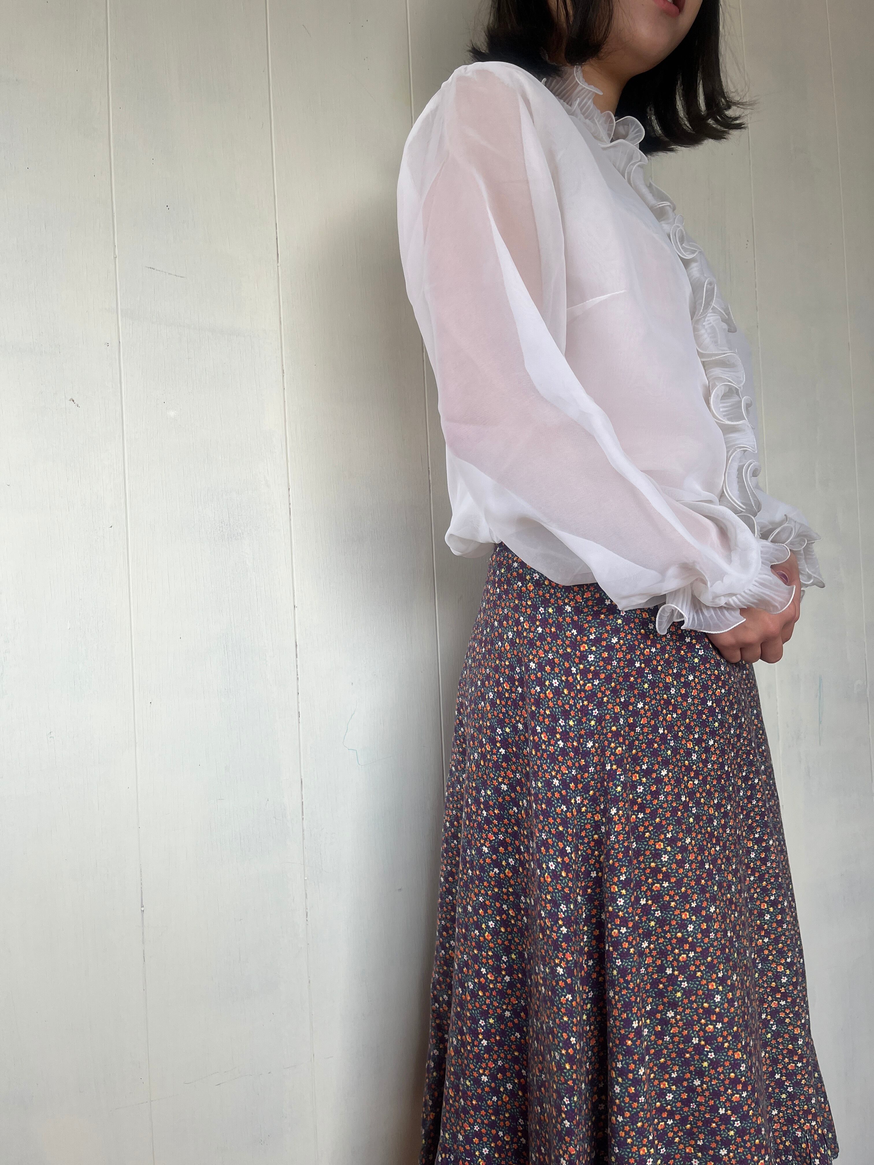 深いブルーをベースにびっしりと散りばめられた小花柄が可愛いらしい。