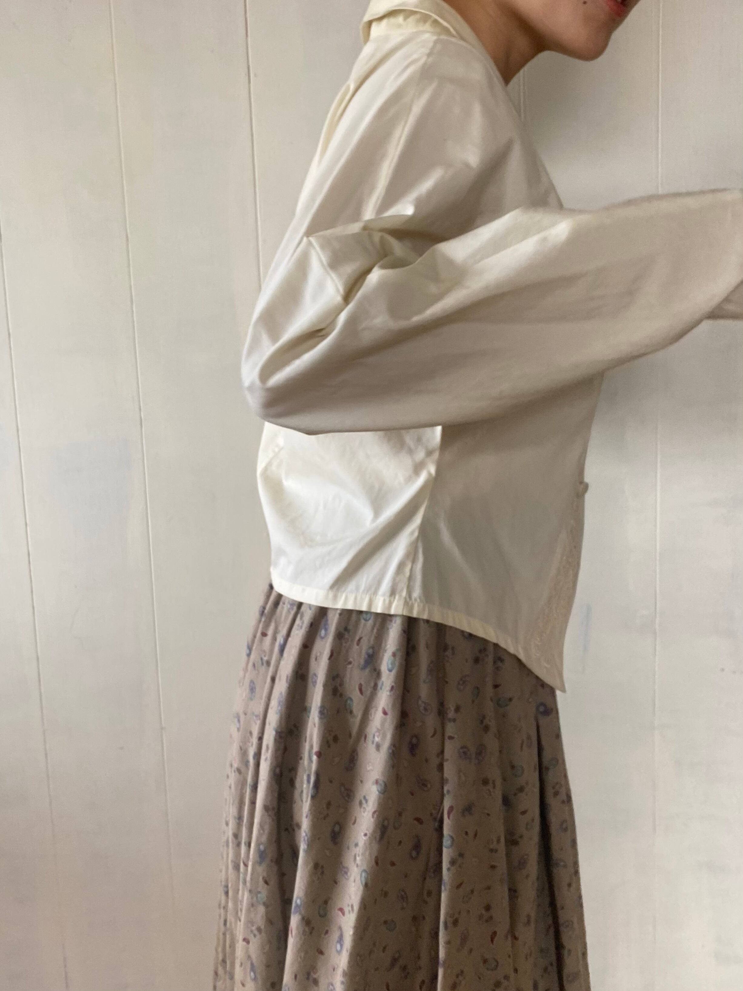 アイボリーのテーラードブラウス。